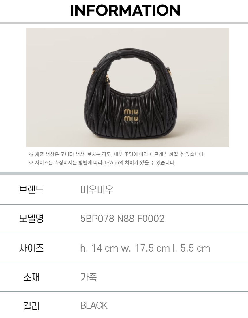 [국내재고보유] 미우미우 완더 마테라쎄 미니백[BLACK] 5BP078 N88 F0002