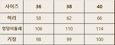 <하의 사이즈표>