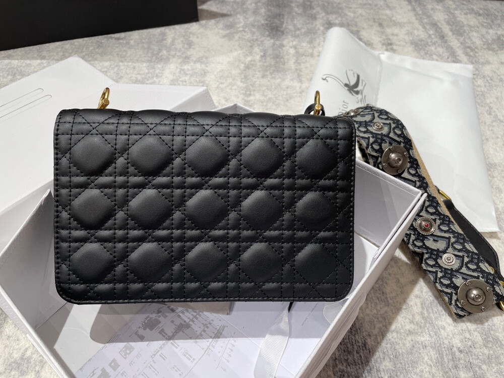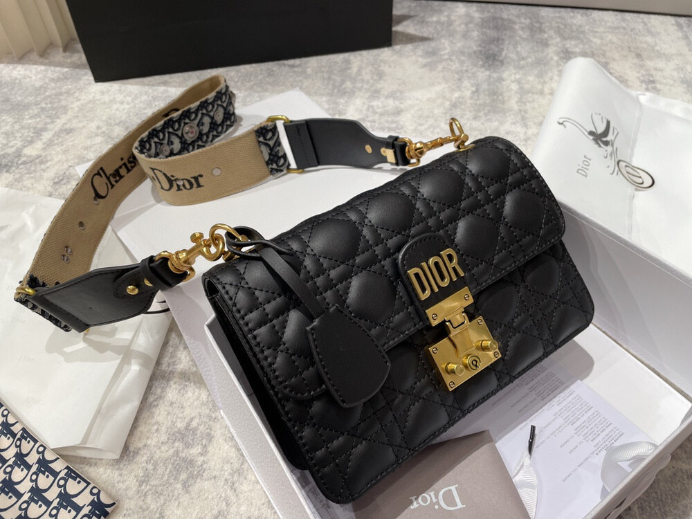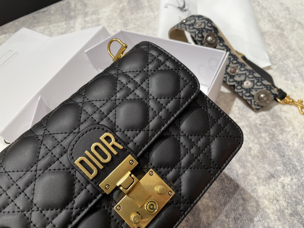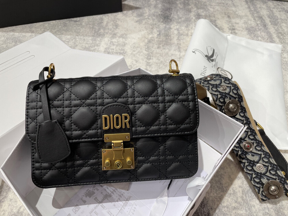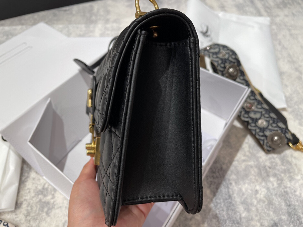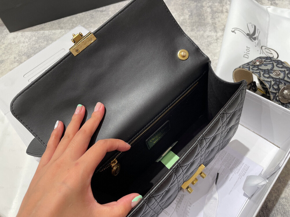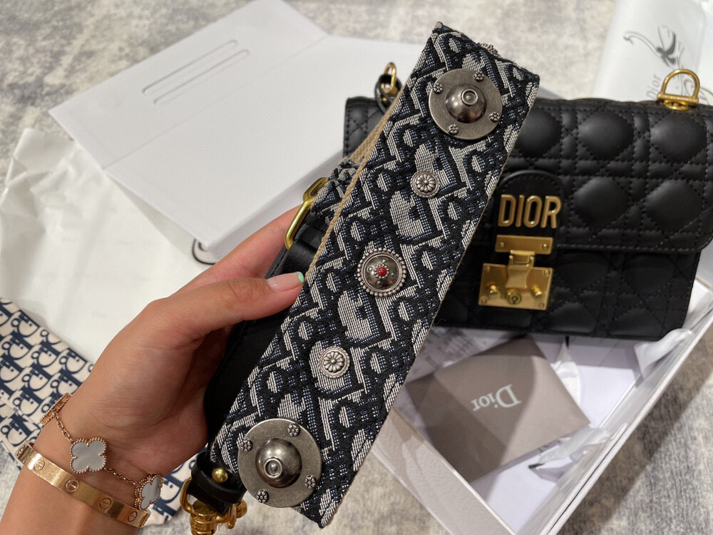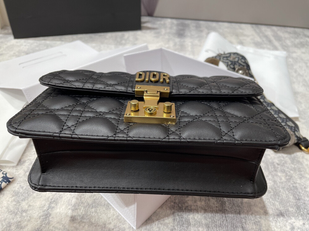 Dior embroidered messenger bag, Roman shoulder strapBlack calfskin material, gray often high-end, classic all-match Perfect details Size 25 16