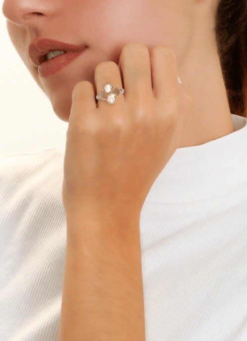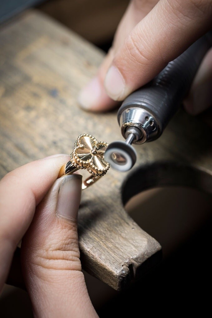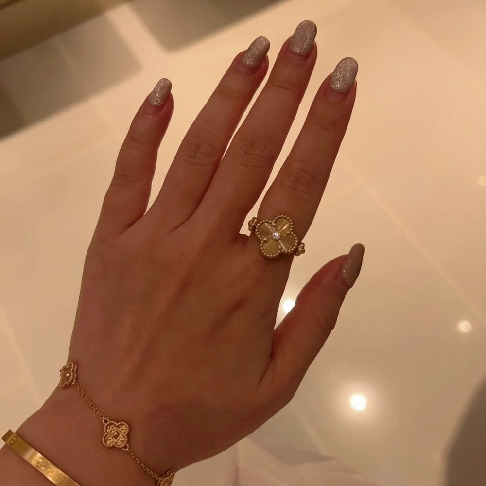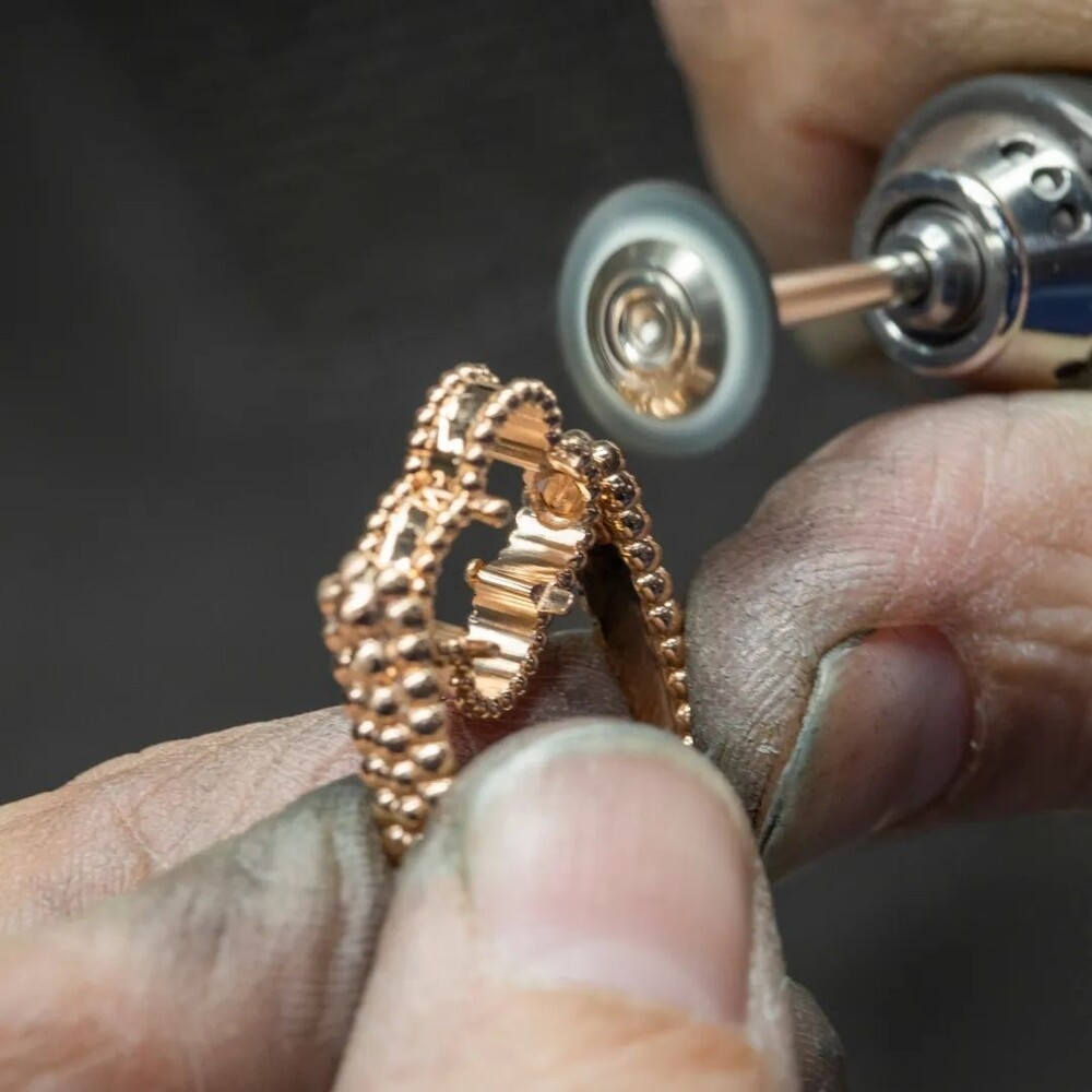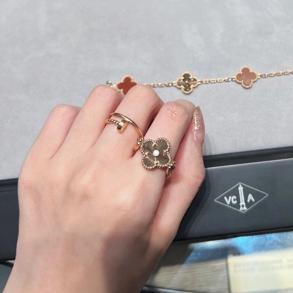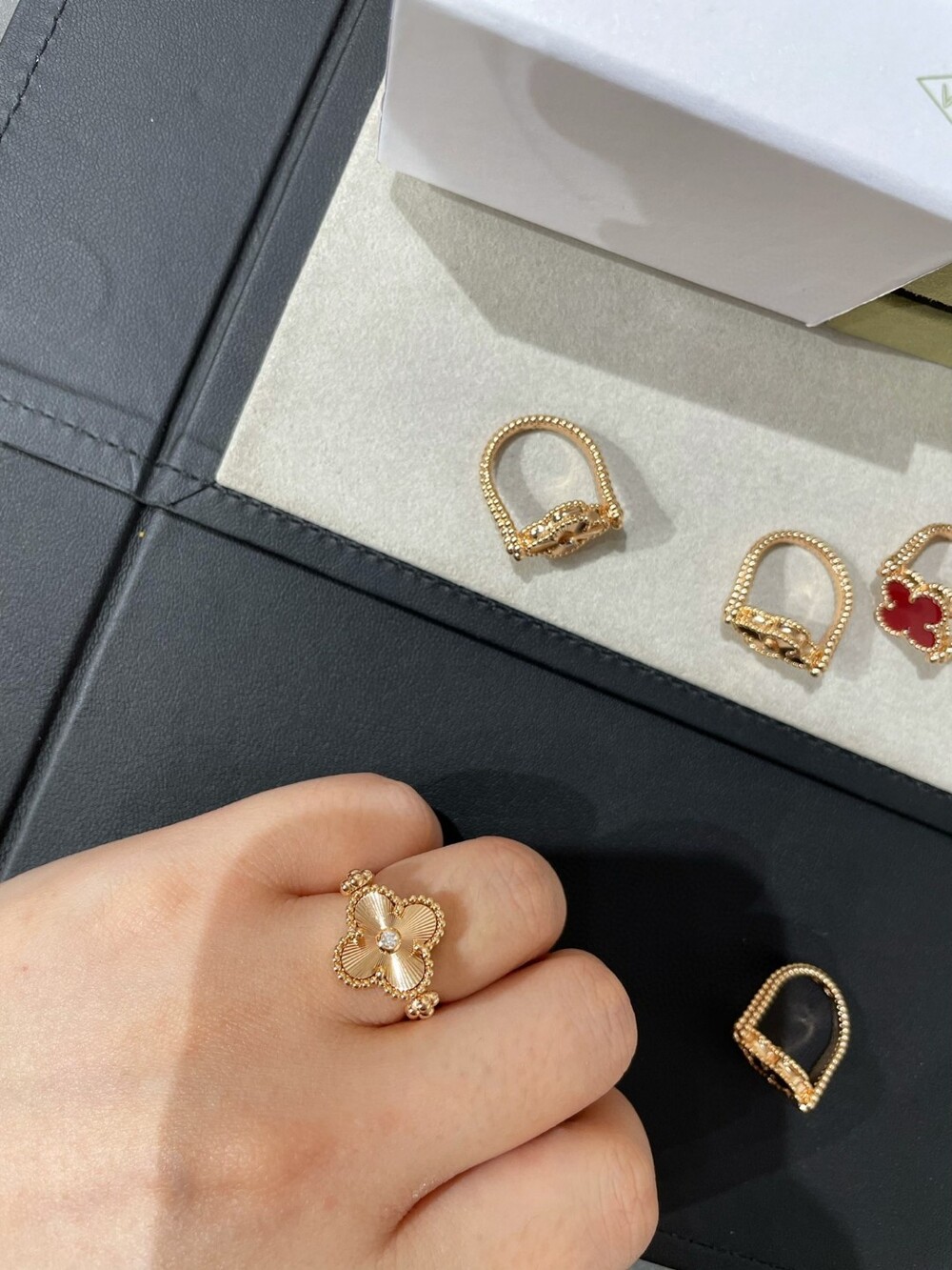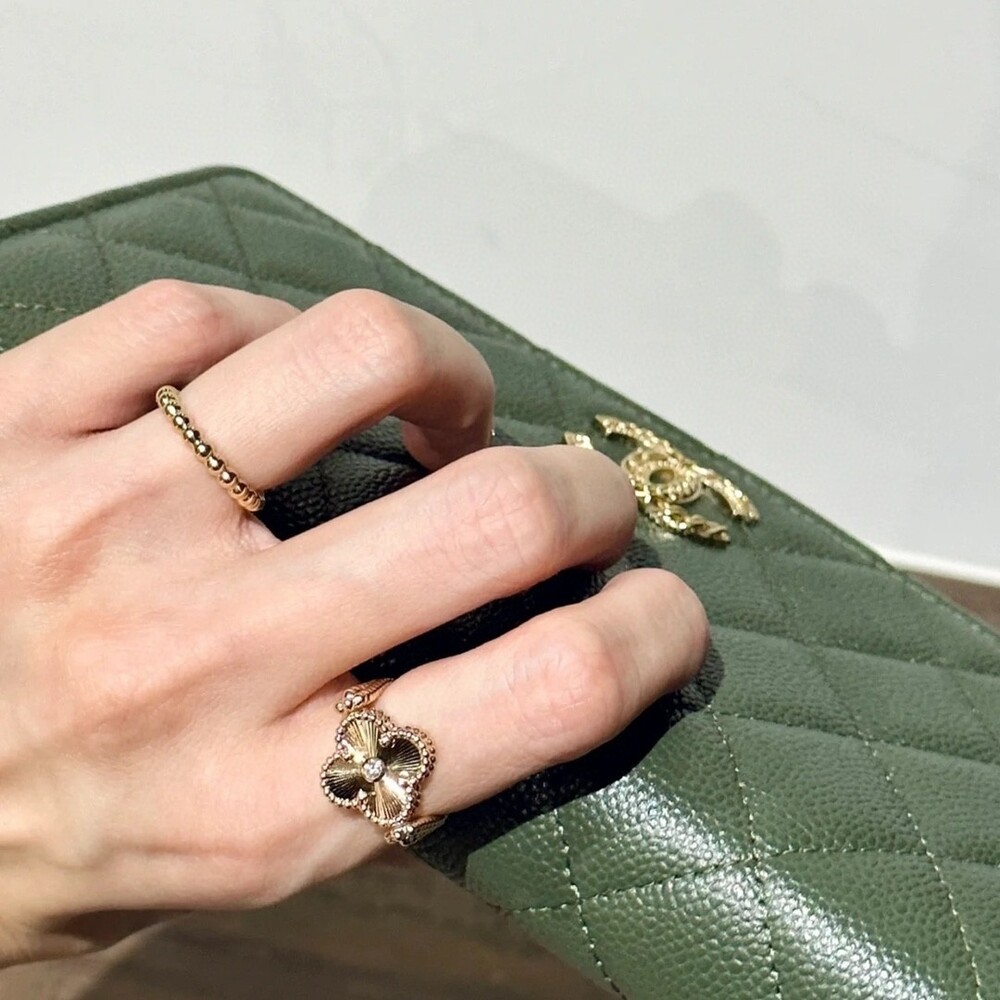 New, Vca flip ring, double-sided wear gui ➕ carvings Carvings are now quite mature, using CNC technology, each piece is radiant, very fine and beautiful Carvings are made of natural five-A bead grade rubble Flower edge beads Because of the shape, this ring is a large size!Please pay attention to no dead corner polishing, gold quality logo