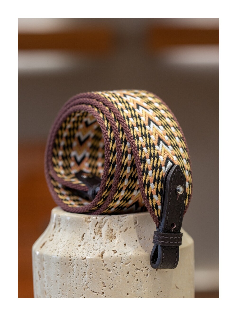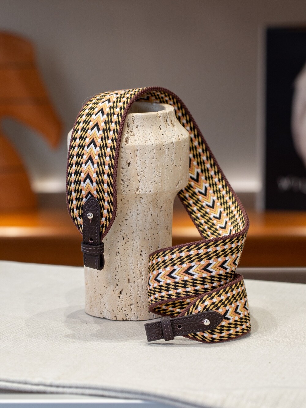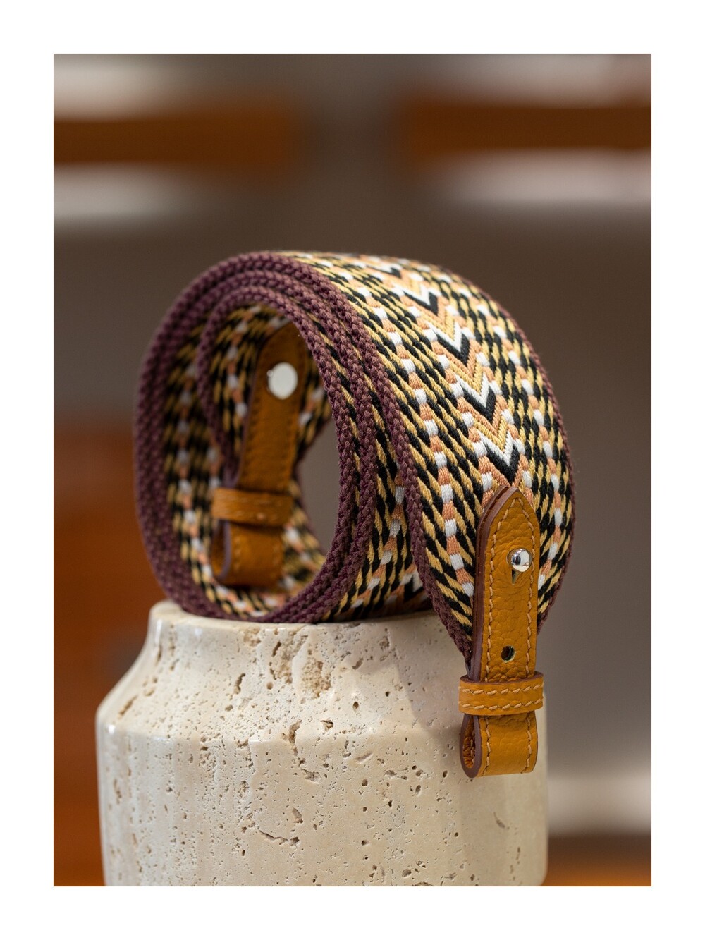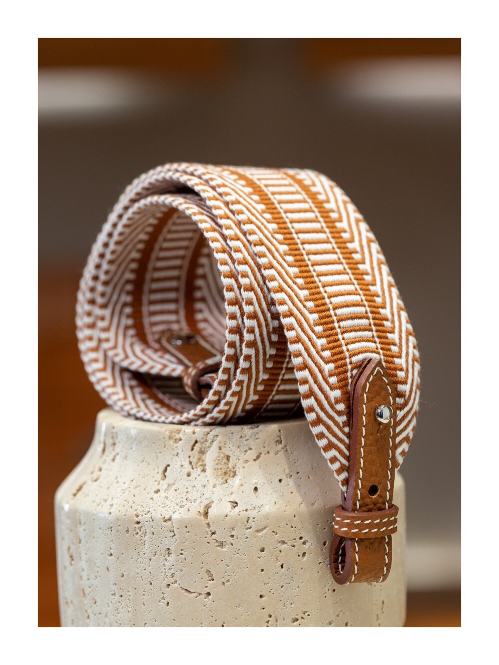 자카드 직조 원단으로 만든 스트랩이에요.🤎