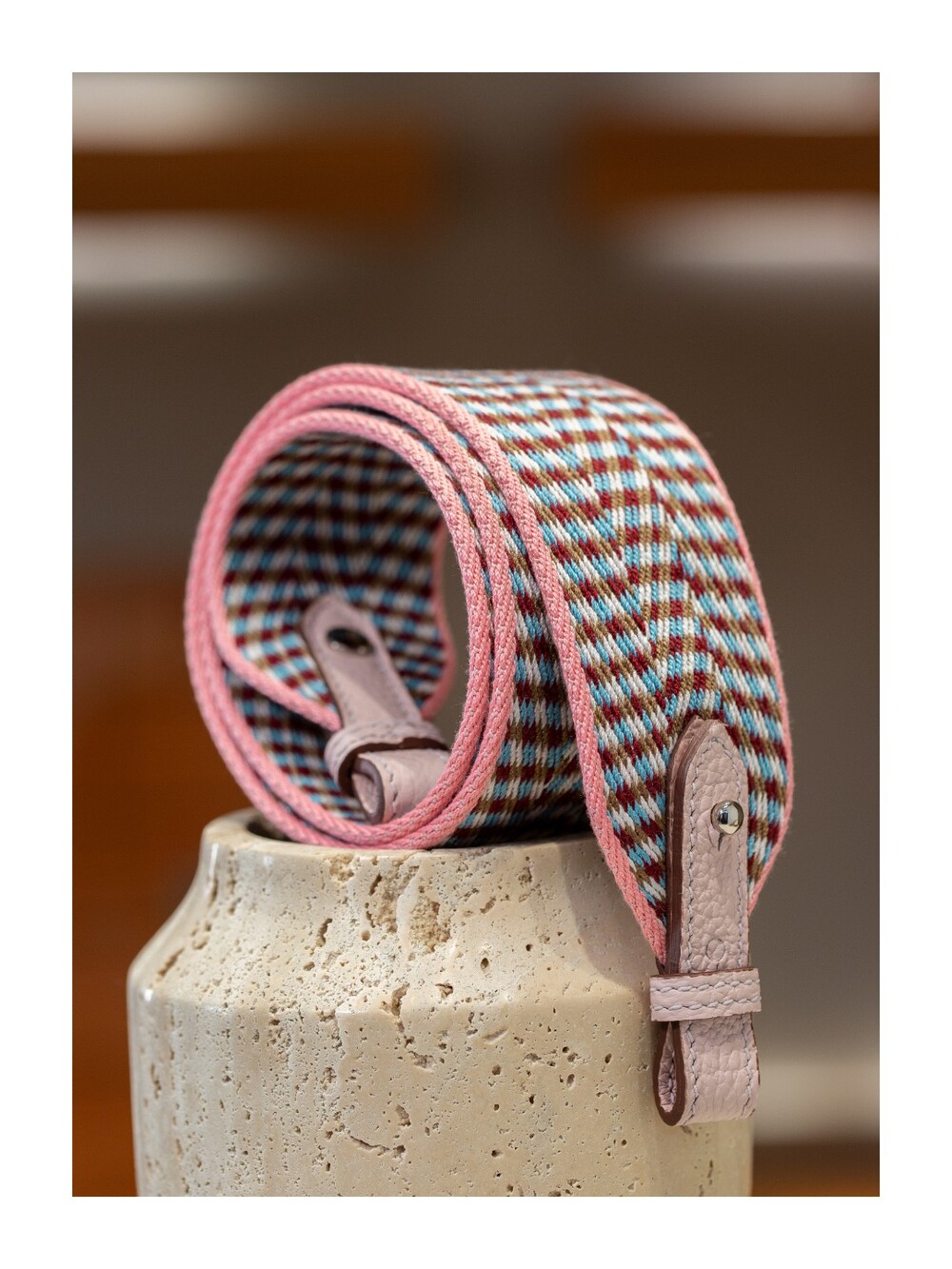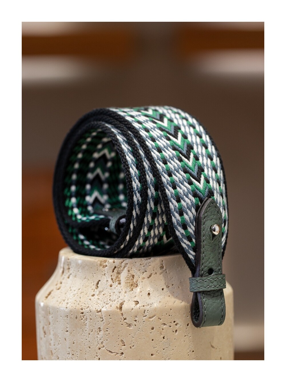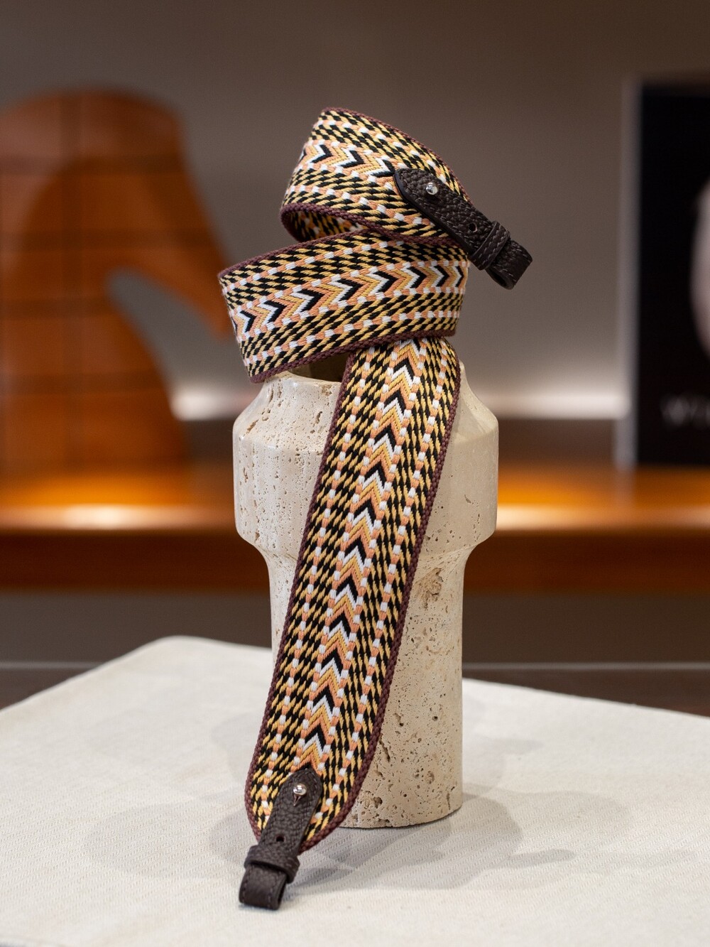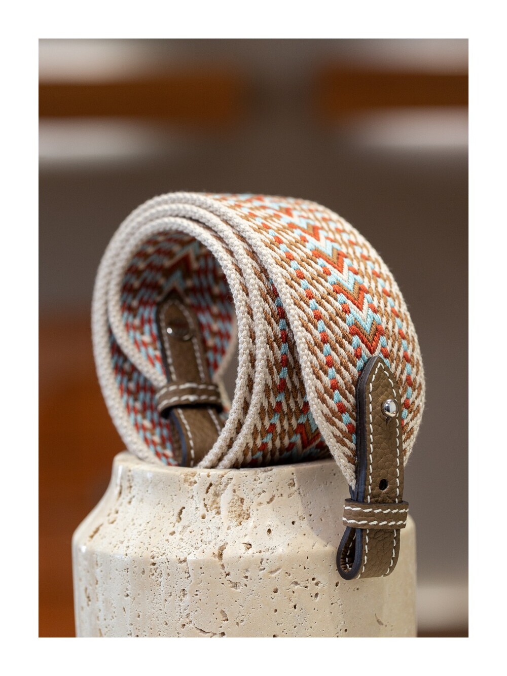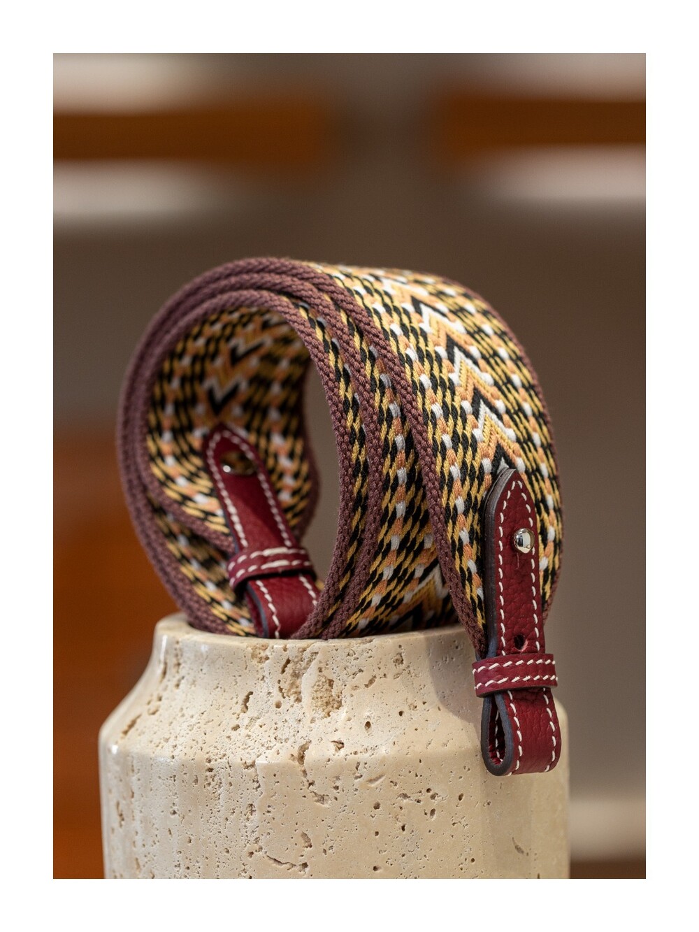 자카드 직조 원단으로 만든 스트랩이에요.🤎