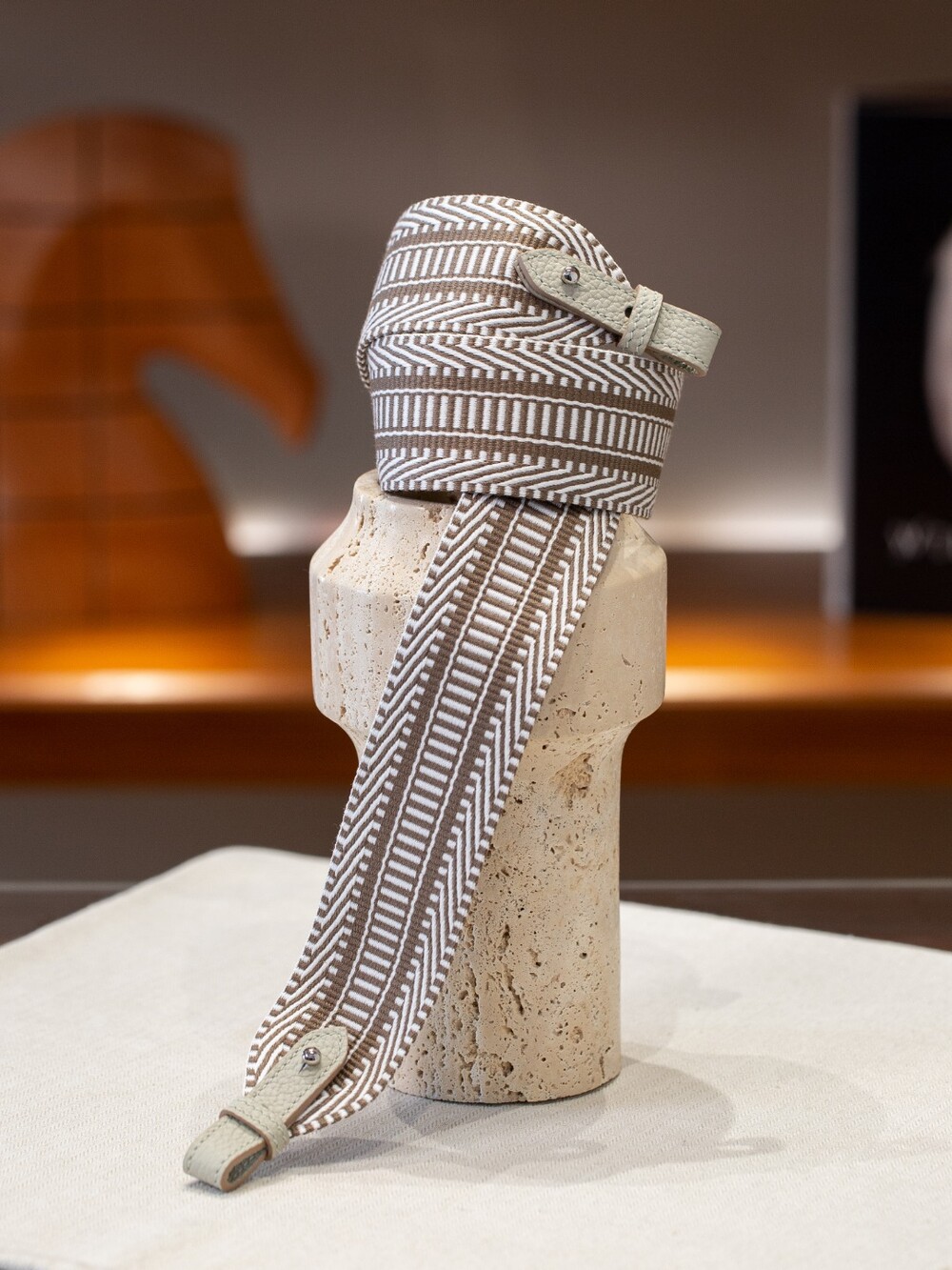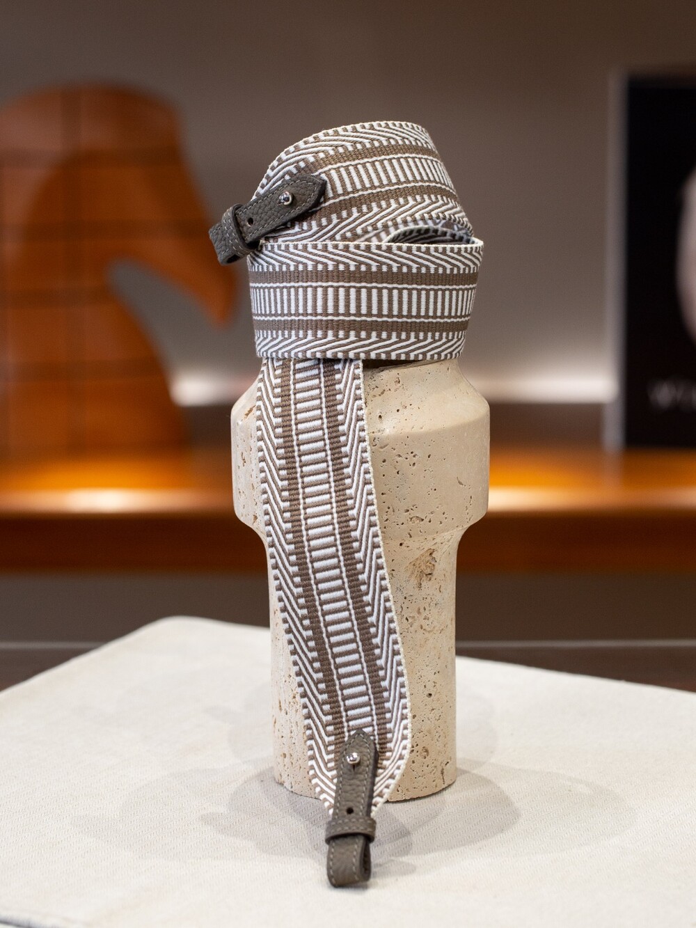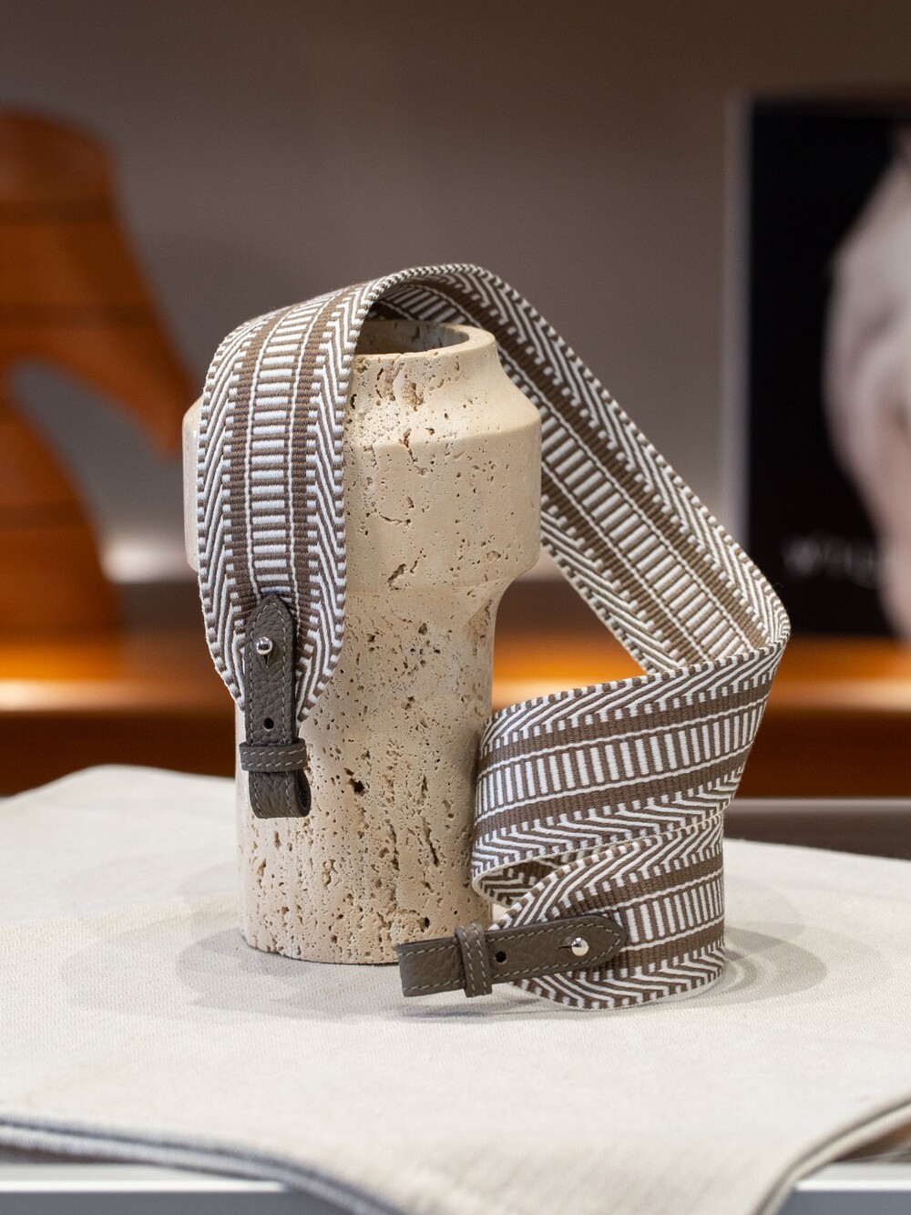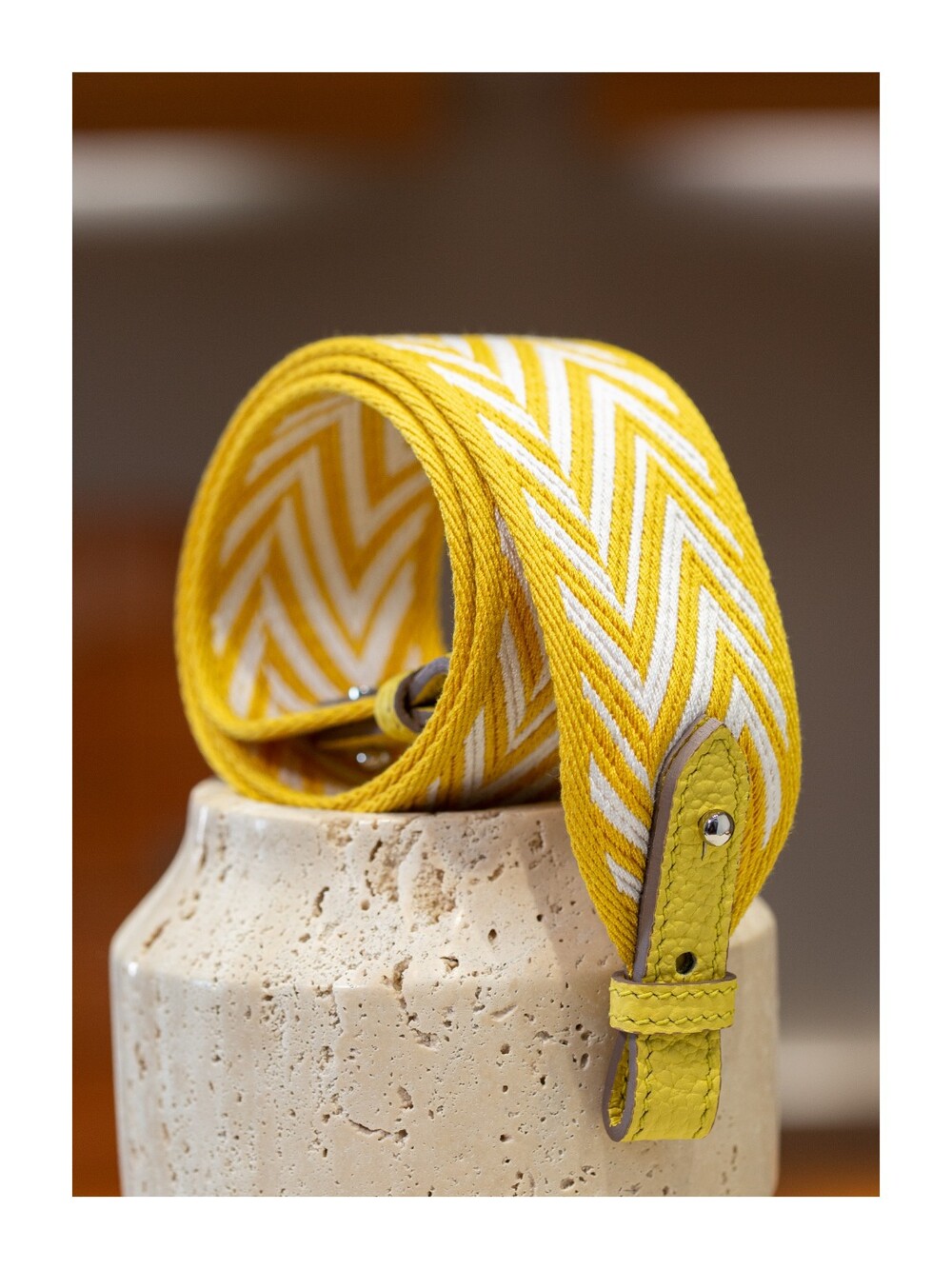 자카드 직조 원단으로 만든 스트랩이에요.🤎