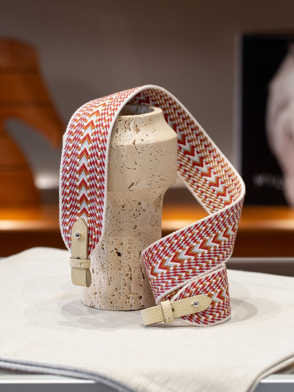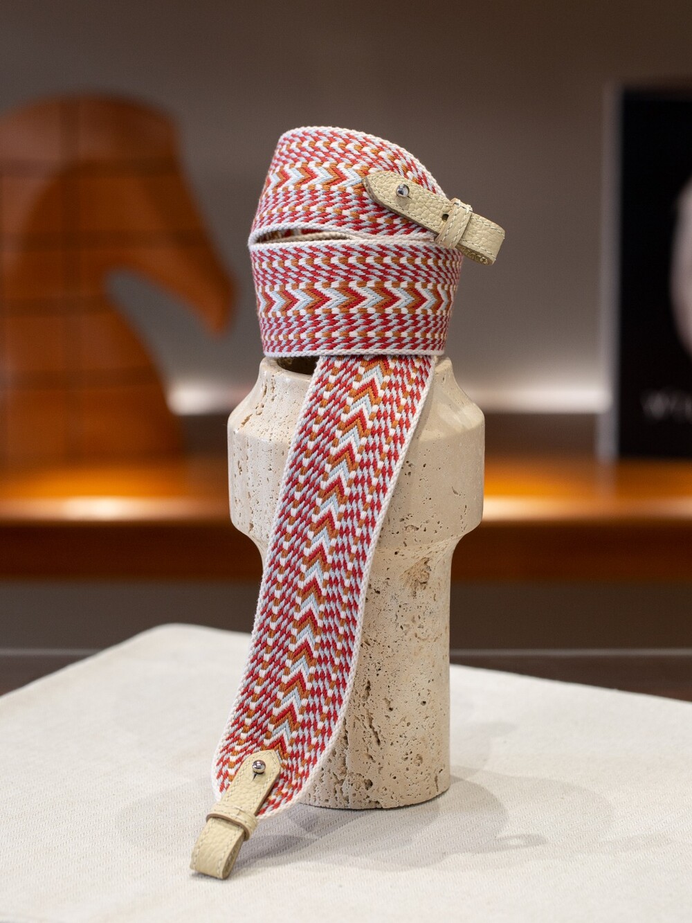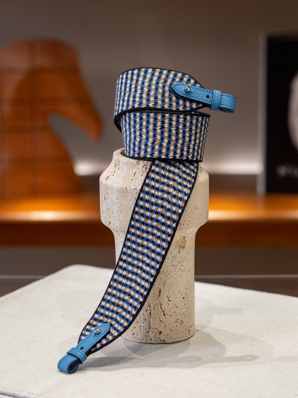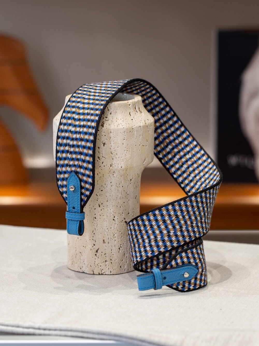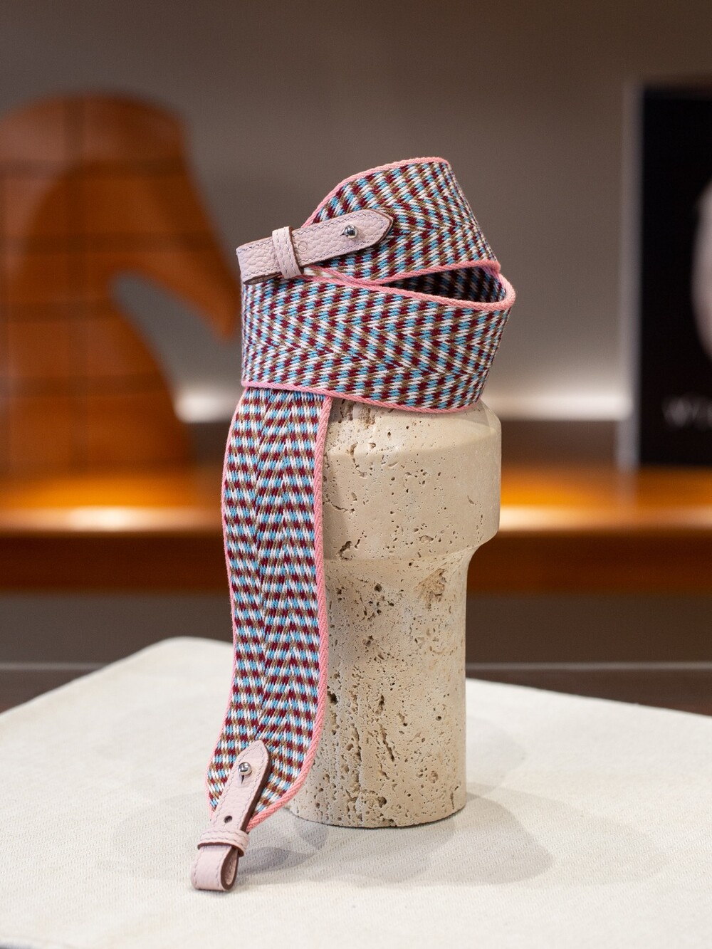 자카드 직조 원단으로 만든 스트랩이에요.🤎