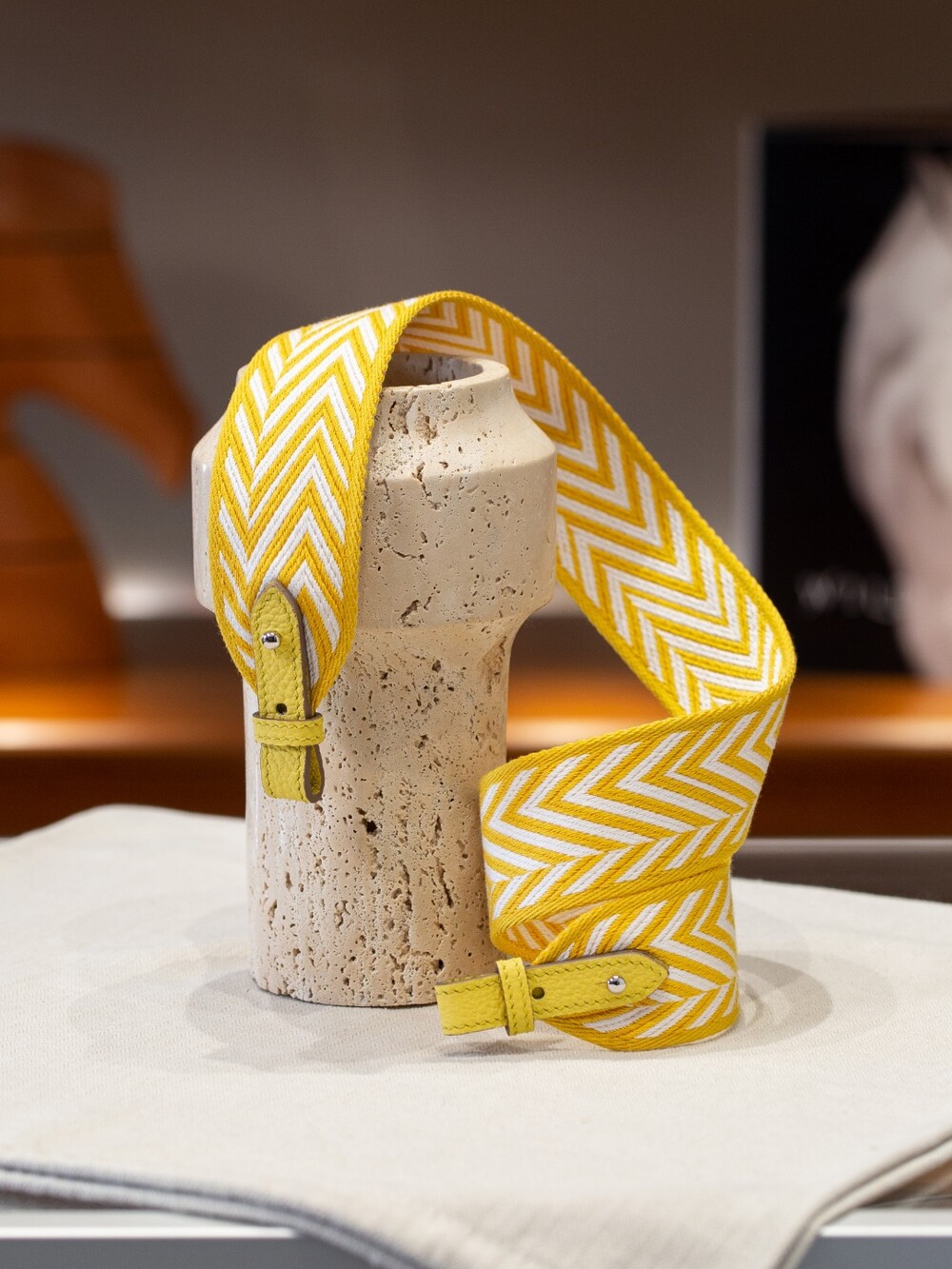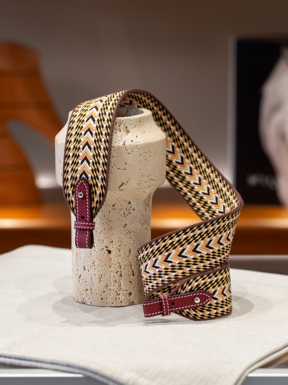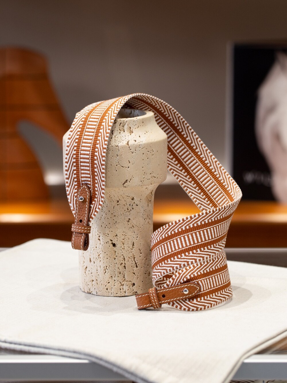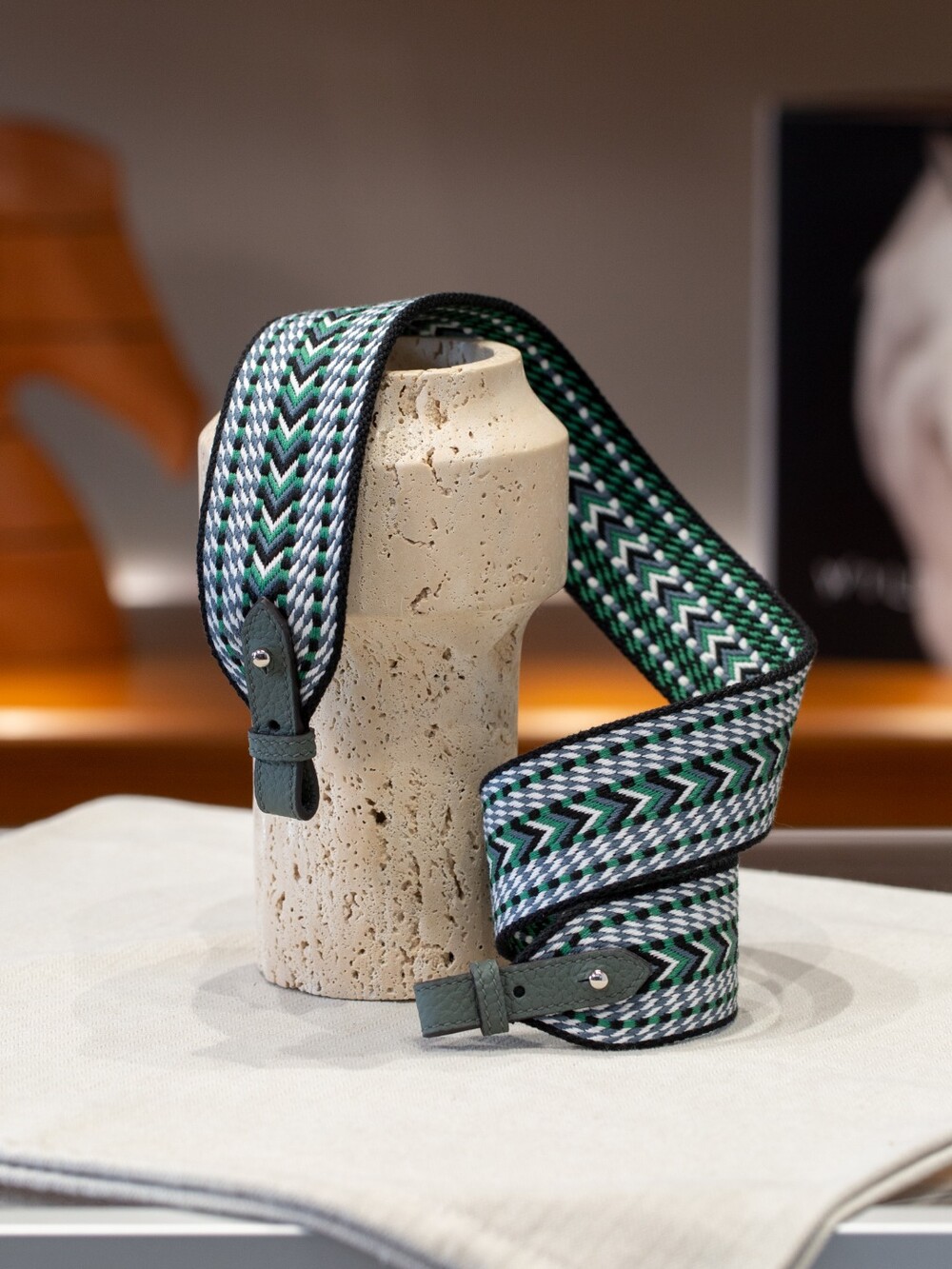 자카드 직조 원단으로 만든 스트랩이에요.🤎