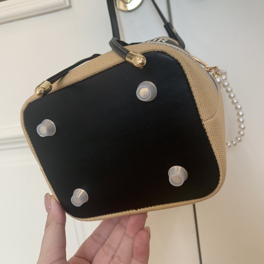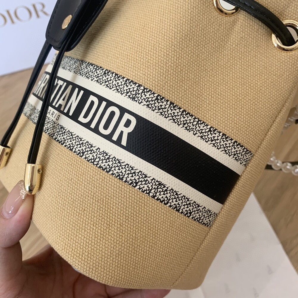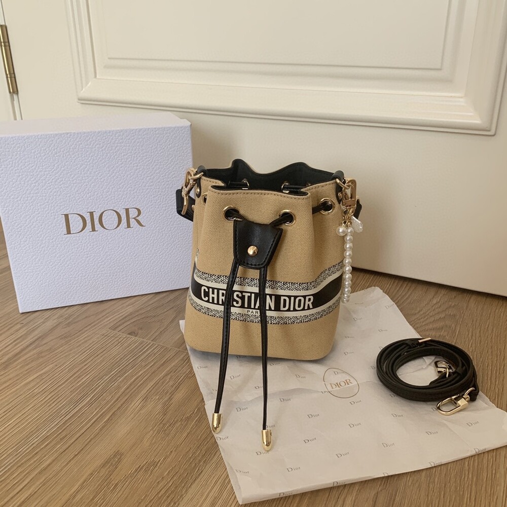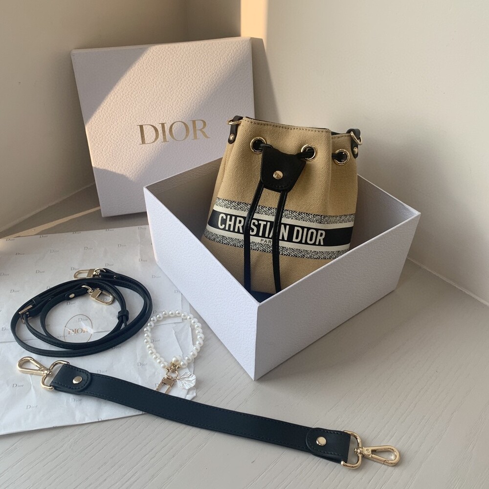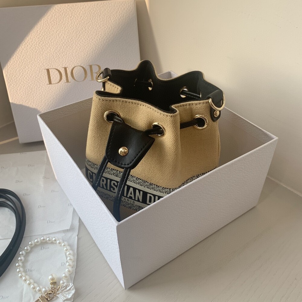 DIOR beauty bucket bag package gift box Cute and full of holiday atmosphere design, beyond the imagination of a good price, this small bag is attracting attention as soon as it is launched. Canvas style with milk tea color canvas stitching cowhide base is more stiff, the whole bag is unique and cute, the recognition is super high.