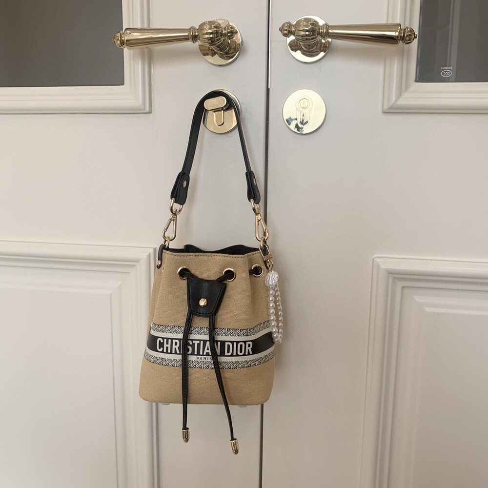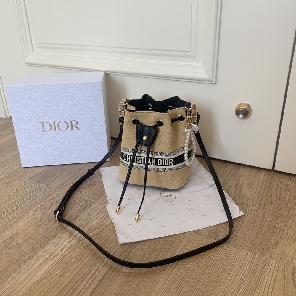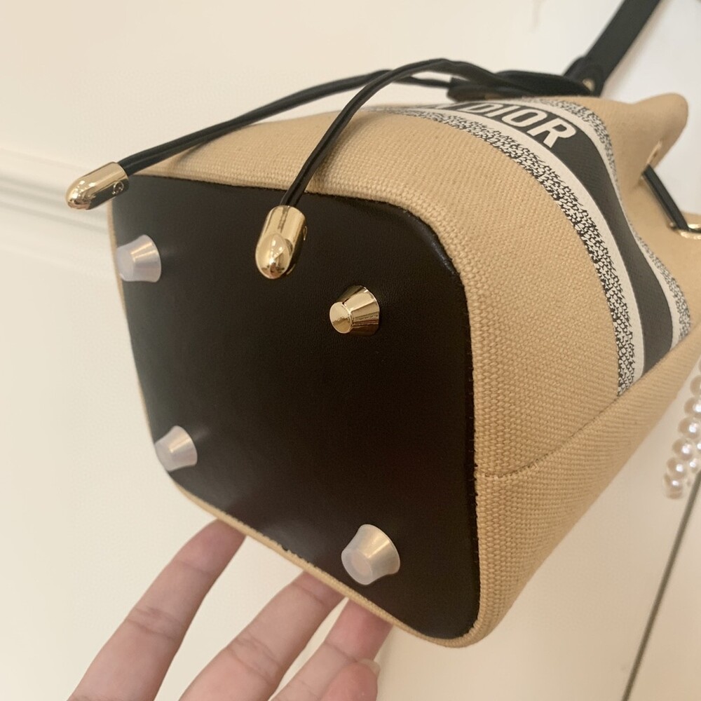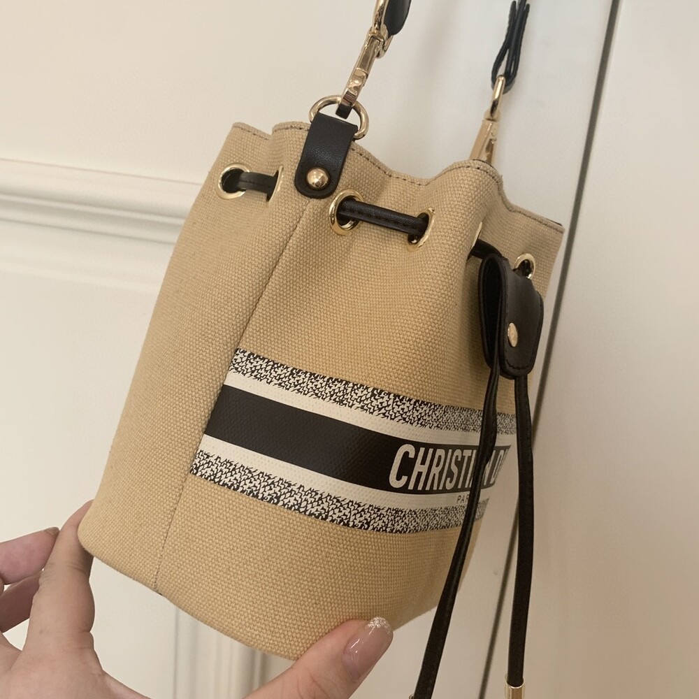 DIOR beauty bucket bag package gift box Cute and full of holiday atmosphere design, beyond the imagination of a good price, this small bag is attracting attention as soon as it is launched. Canvas style with milk tea color canvas stitching cowhide base is more stiff, the whole bag is unique and cute, the recognition is super high.