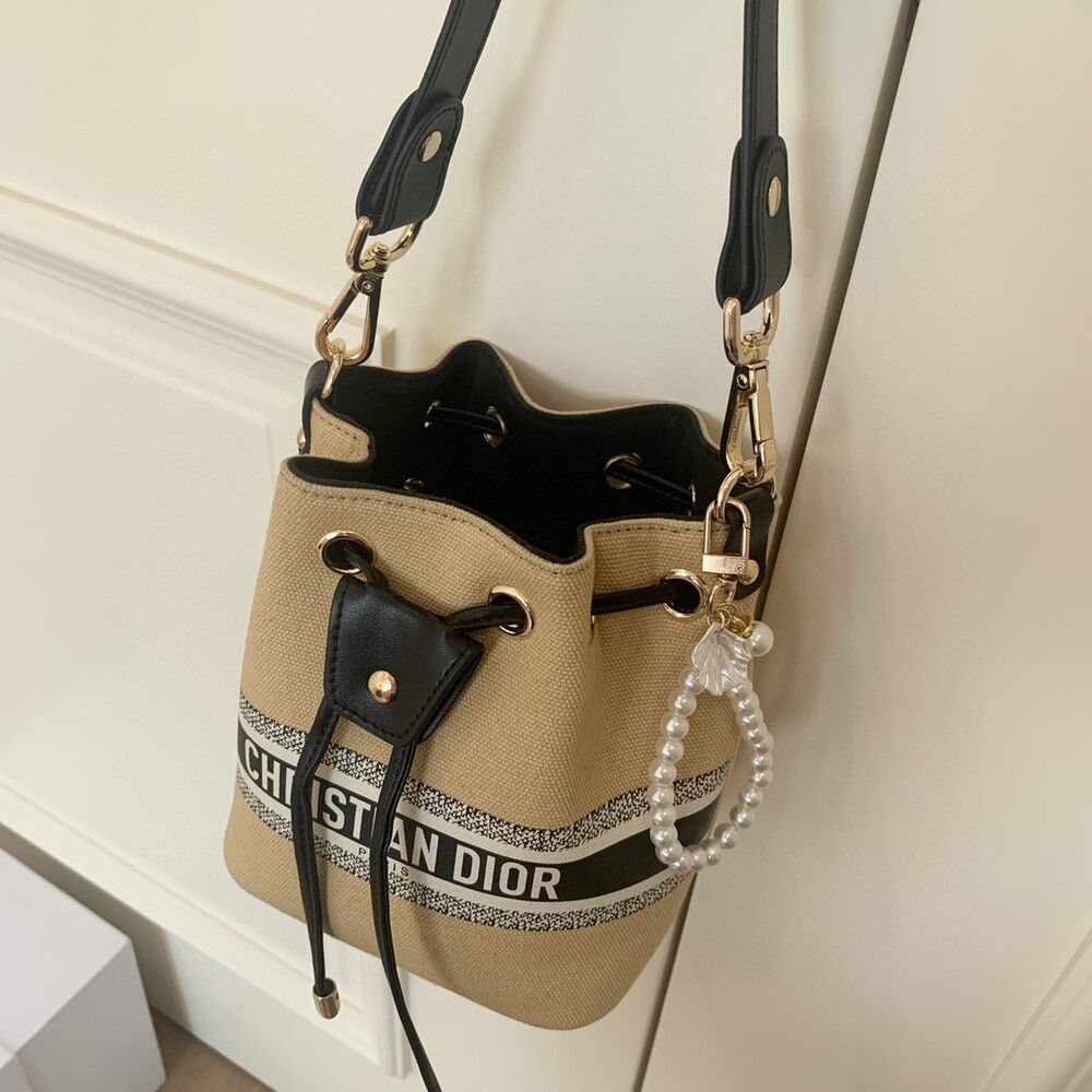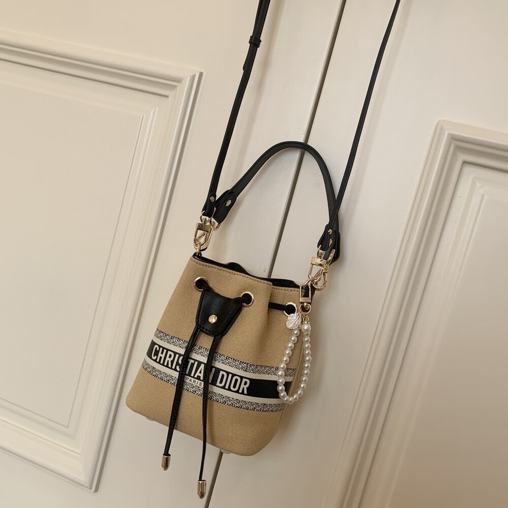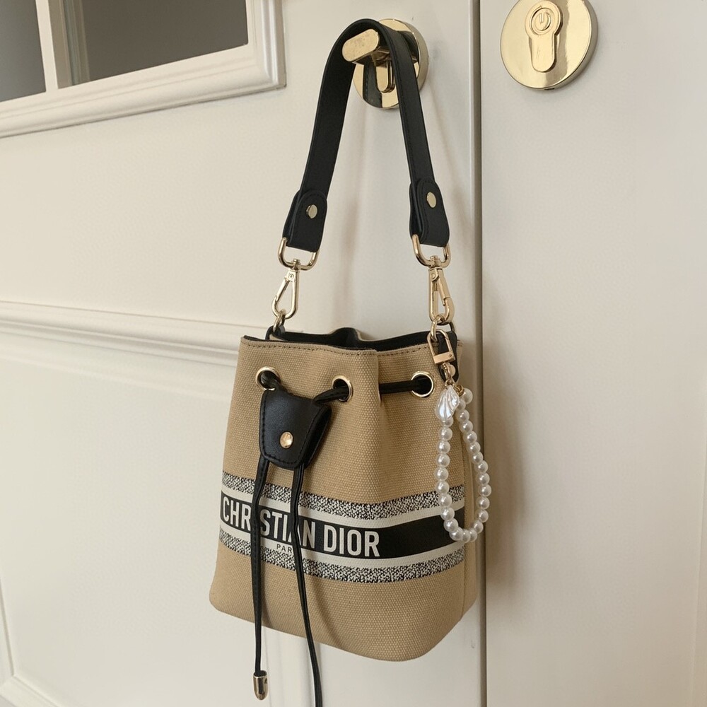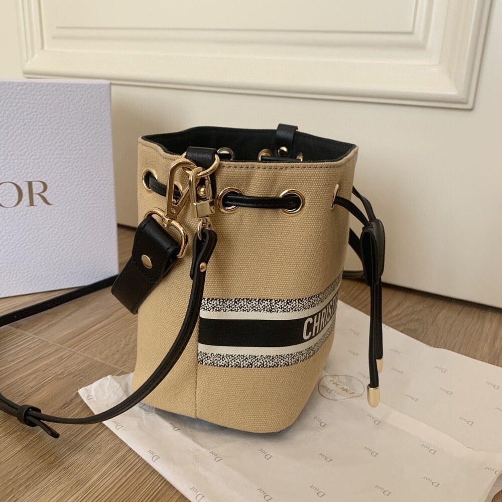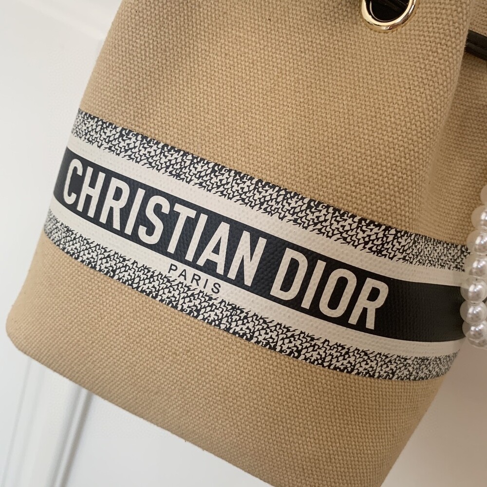 DIOR beauty bucket bag package gift box Cute and full of holiday atmosphere design, beyond the imagination of a good price, this small bag is attracting attention as soon as it is launched. Canvas style with milk tea color canvas stitching cowhide base is more stiff, the whole bag is unique and cute, the recognition is super high.