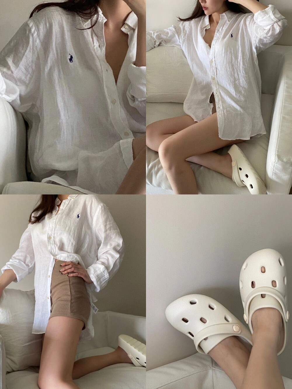 전체적으로 셔츠만 튀는 느낌이라이런 시스루느낌의