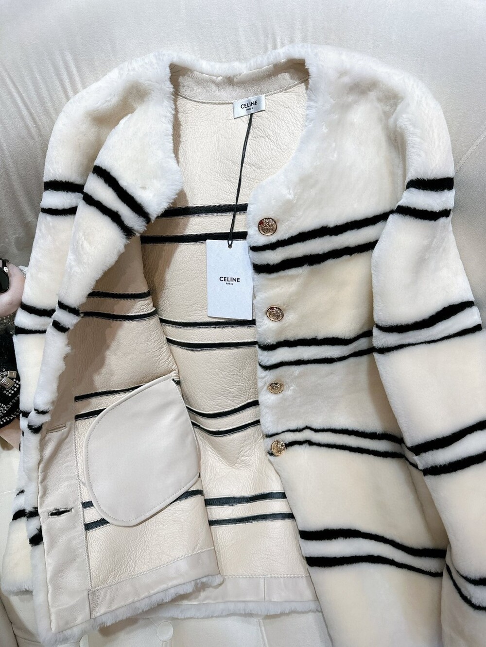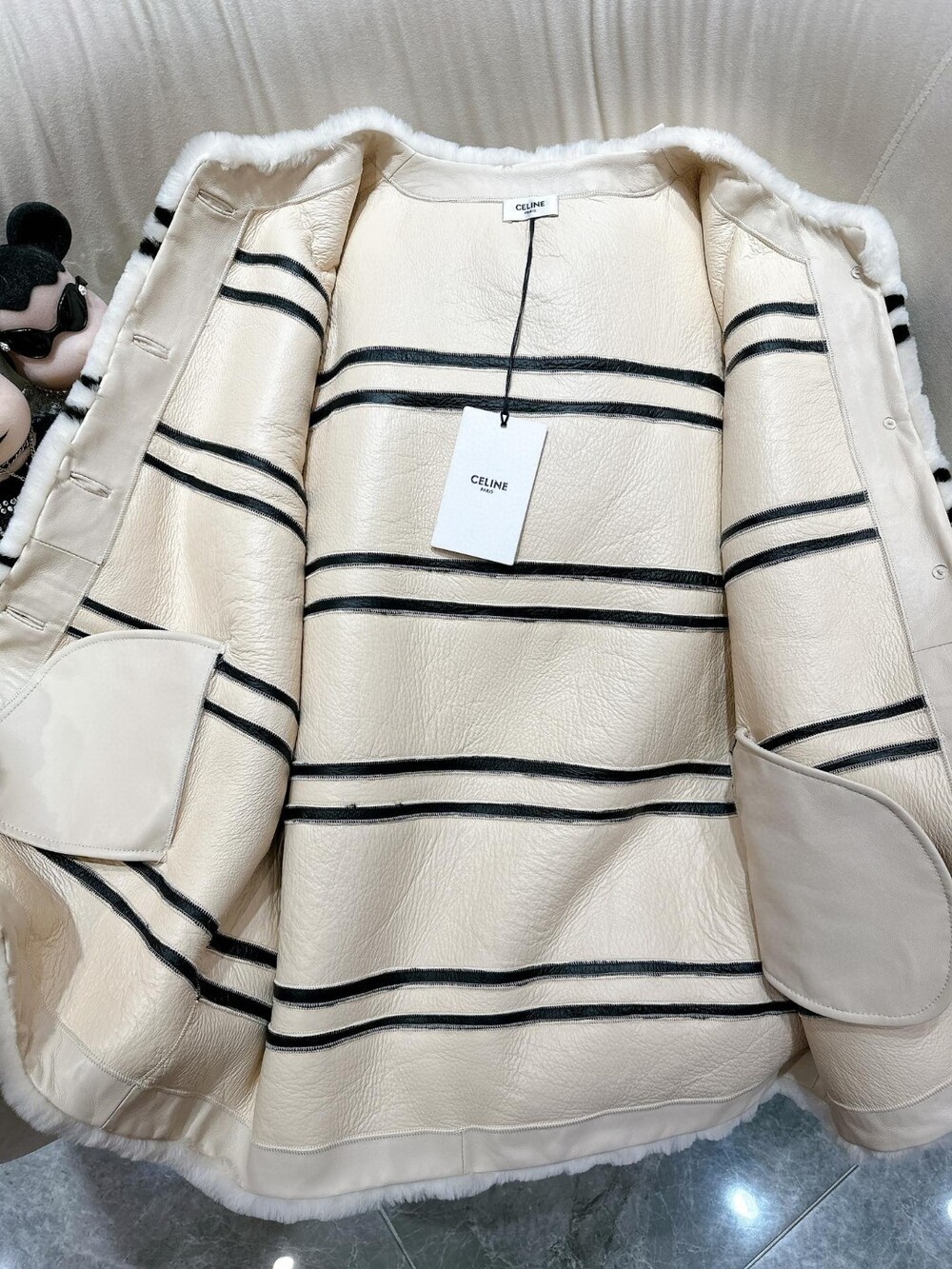 양가죽과 퍼가 일체되어 있는 고급 수입 자켓입니다