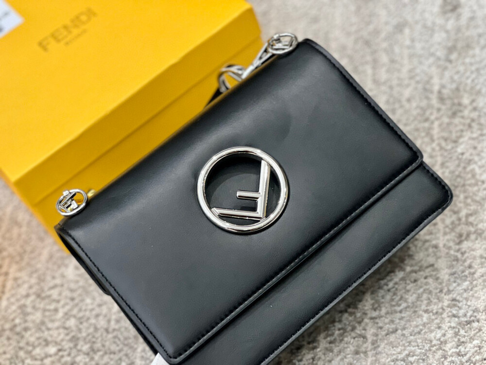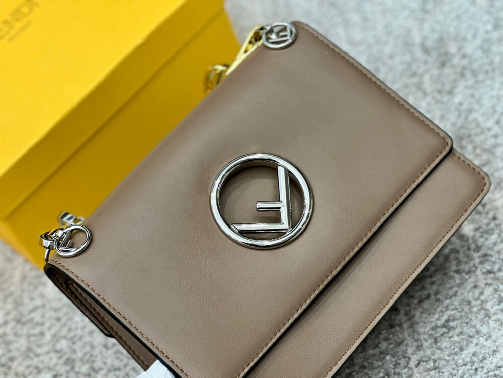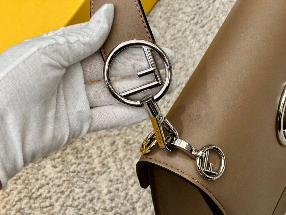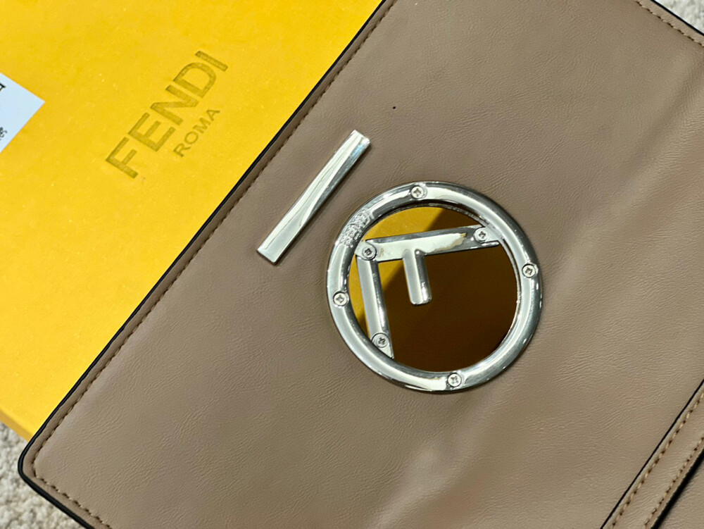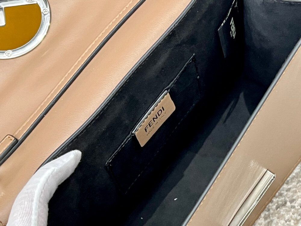 Fendi's simple metal logo 'F' stands out. Silver and gold tones are used to reduce monotony and enhance sophistication