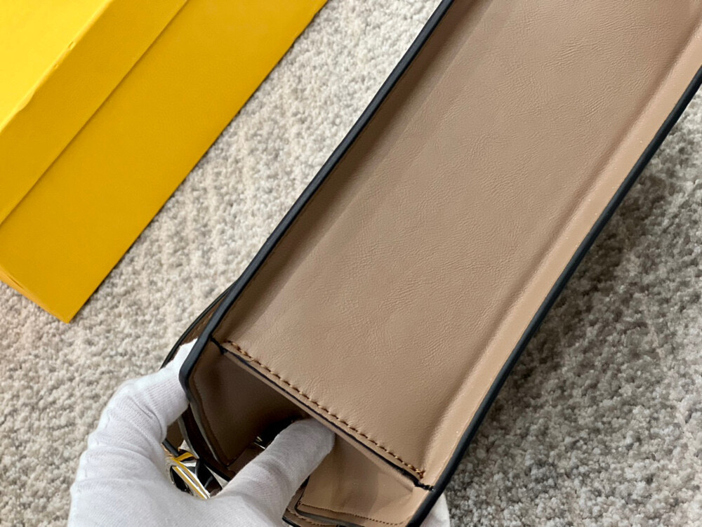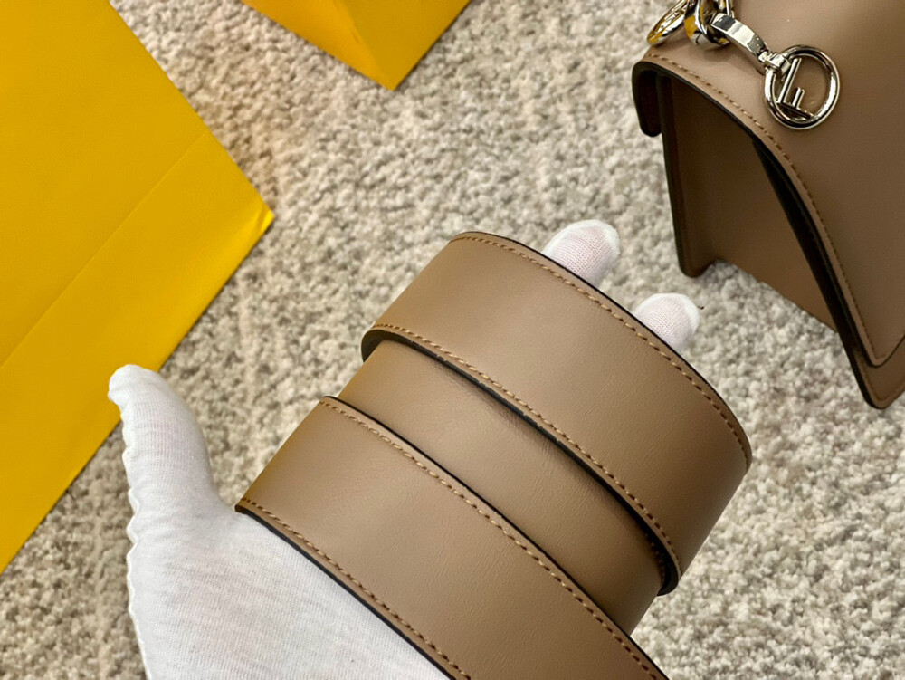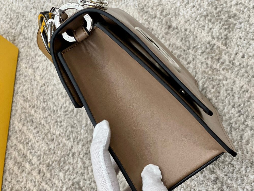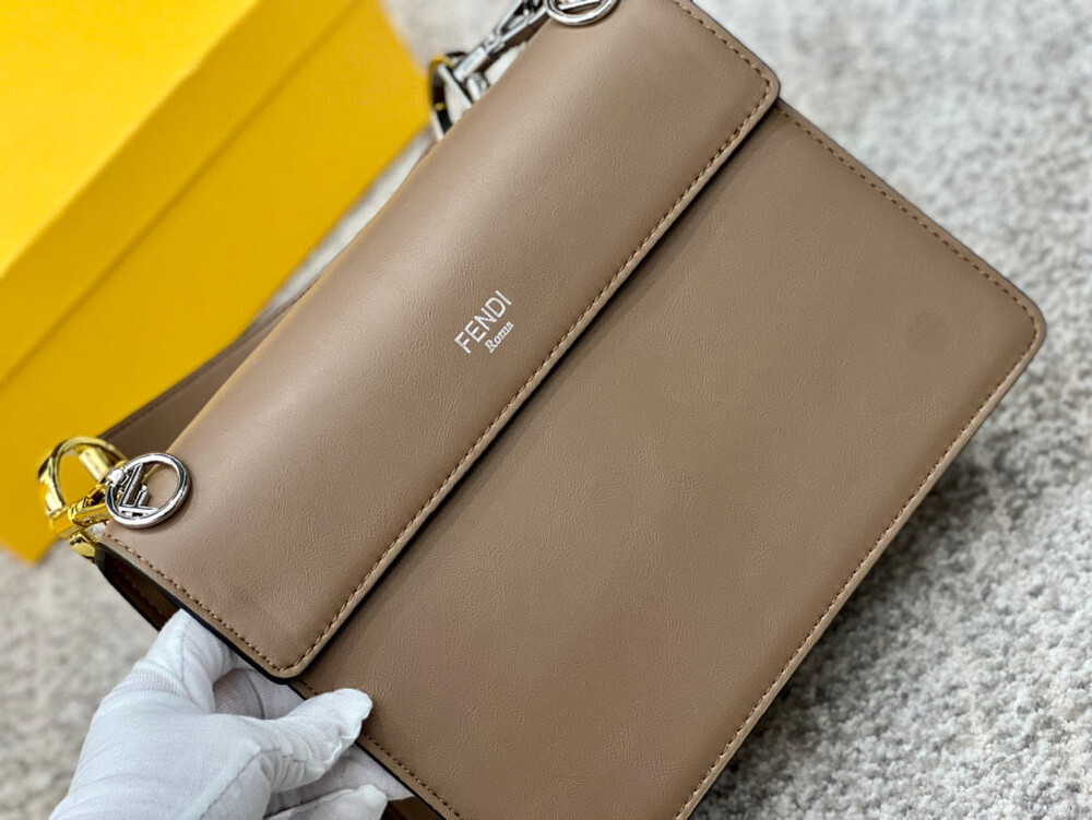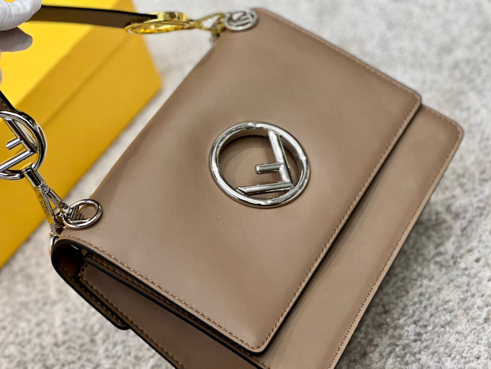 Fendi's simple metal logo 'F' stands out. Silver and gold tones are used to reduce monotony and enhance sophistication