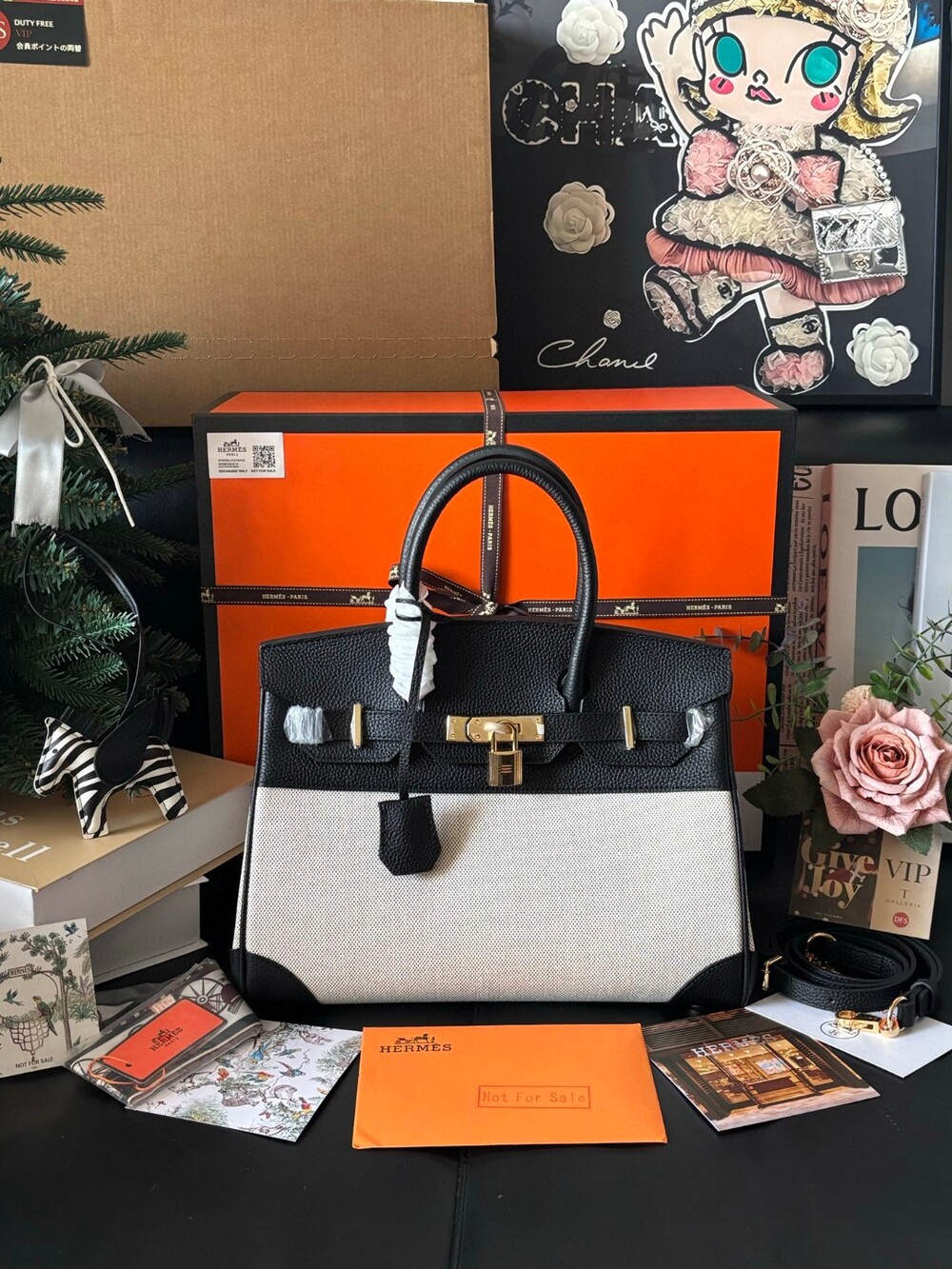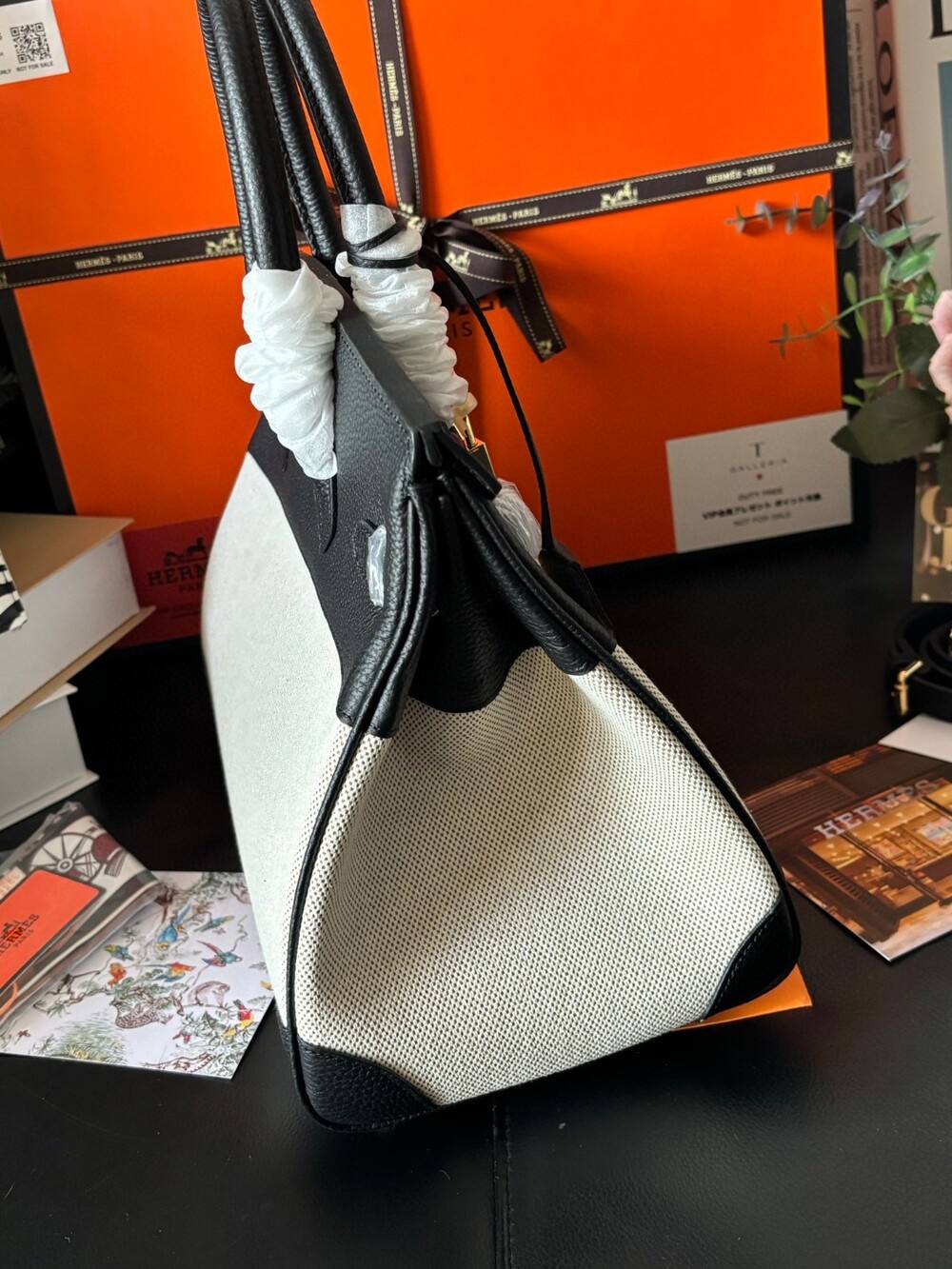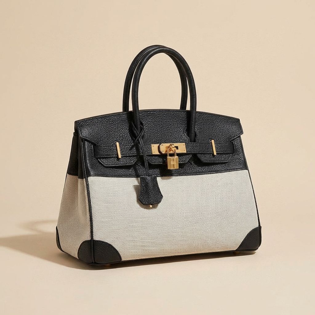 A stunning Hermès Birkin 30 canvas edition, combining timeless luxury with a fresh, modern aesthetic.