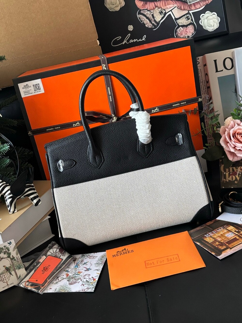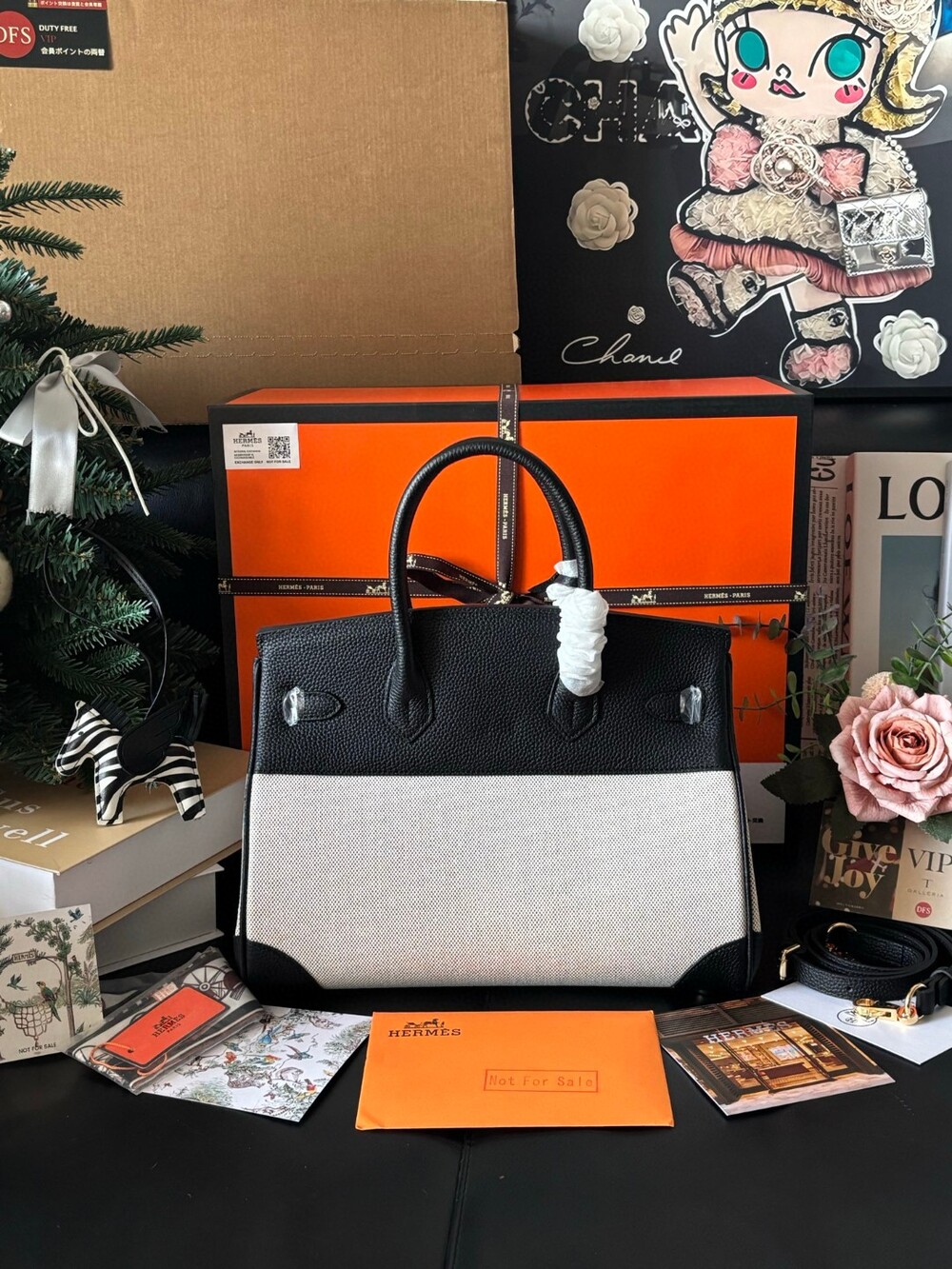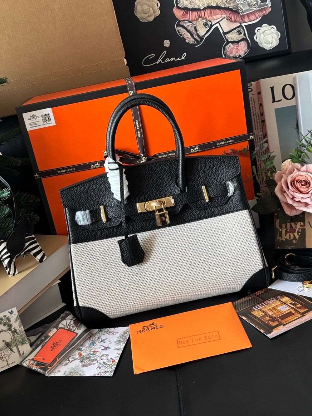 A stunning Hermès Birkin 30 canvas edition, combining timeless luxury with a fresh, modern aesthetic.