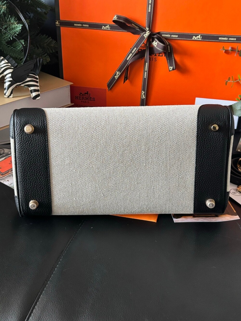 우아함과 실용성을 동시에 갖춘 Hermès 30 캔버스 버전입니다.