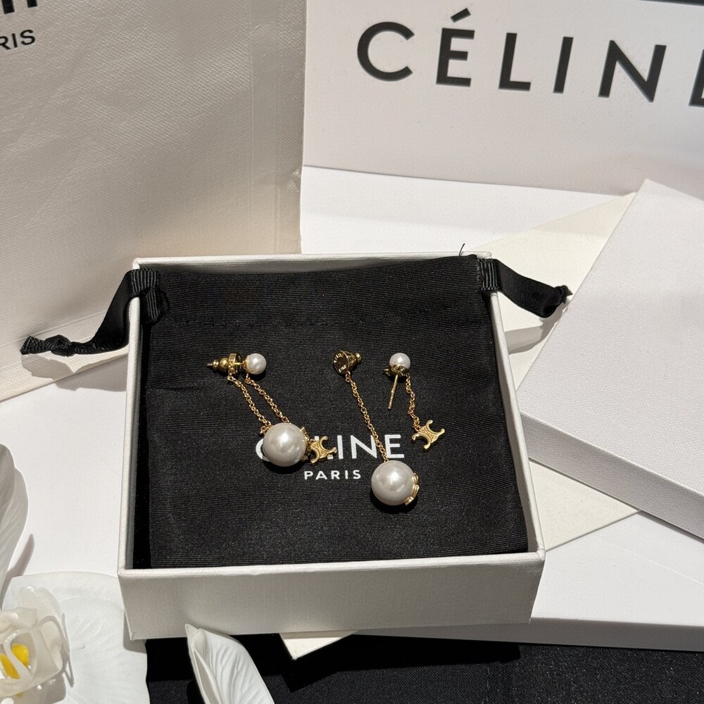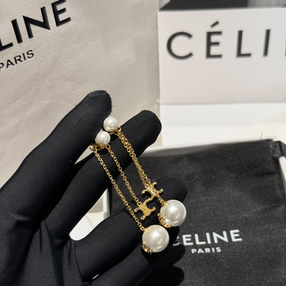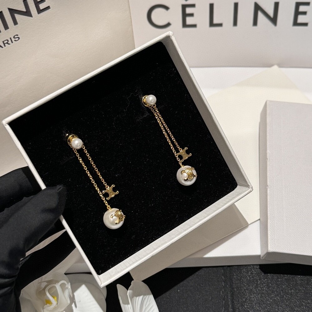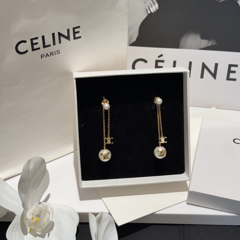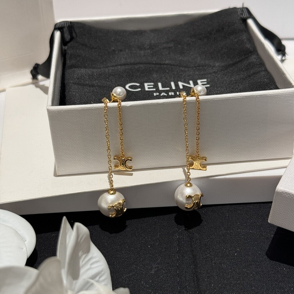Accessories that you can only get Celine vip. Pearl drop-earring with natural mineral clams and triope logos. It's a great item to accentuate with a luxurious mood