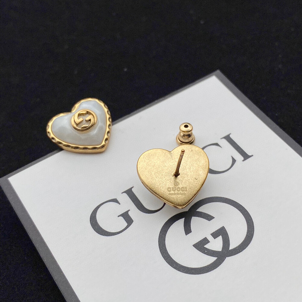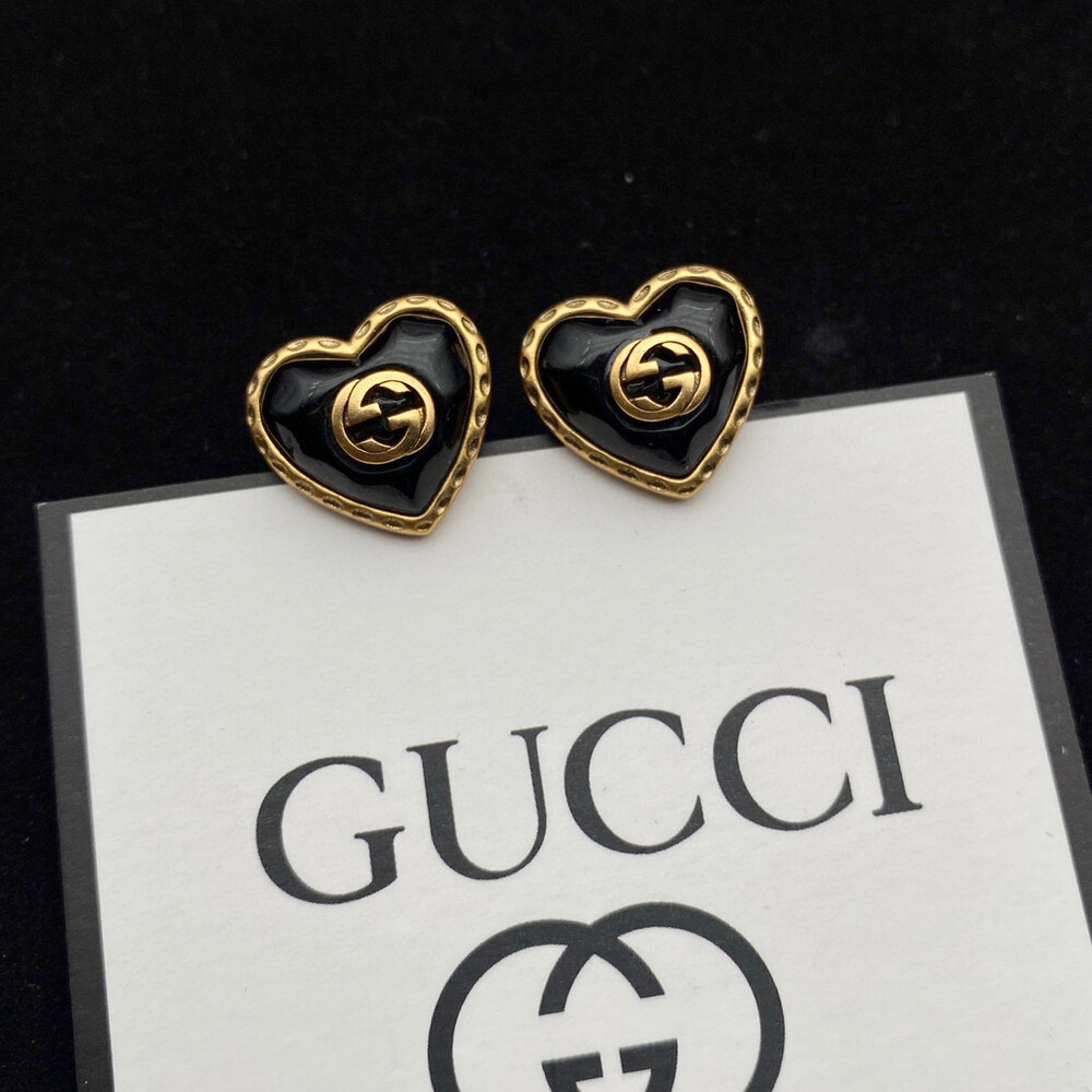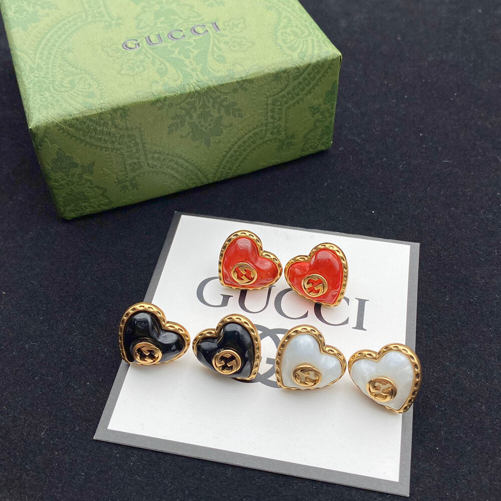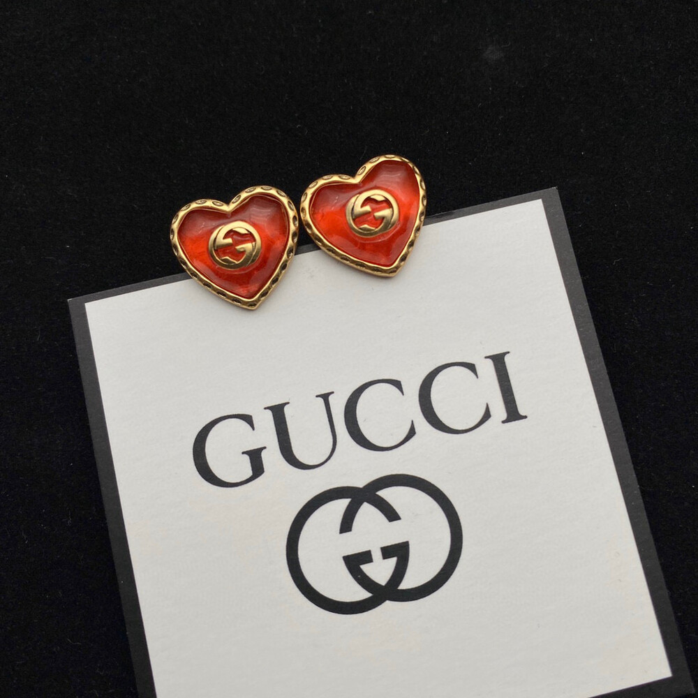 overseas high value - benefits/ Earrings with a ribbon-effect metal detail frame wrapped around heart-shaped red crystals. Since establishing itself as a brand symbol along with the rich history of Gucci, the Interlocking G symbol has been a constant inspiration for designs that deviate from the traditional framework of fashion.