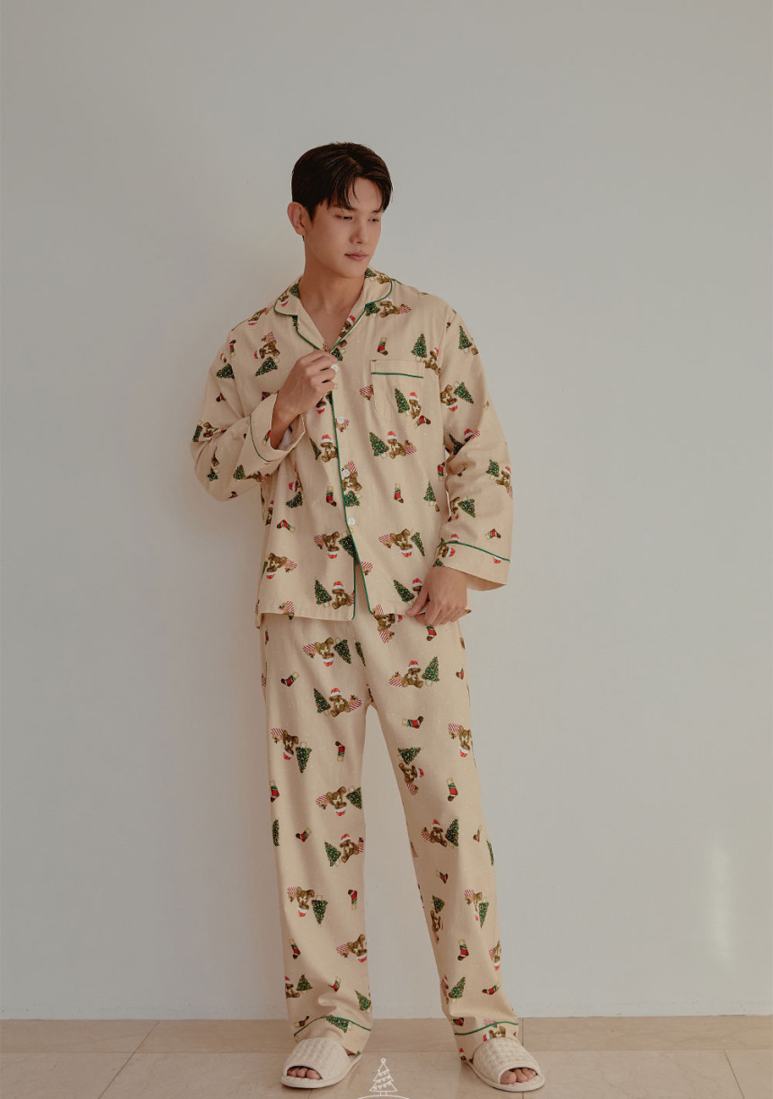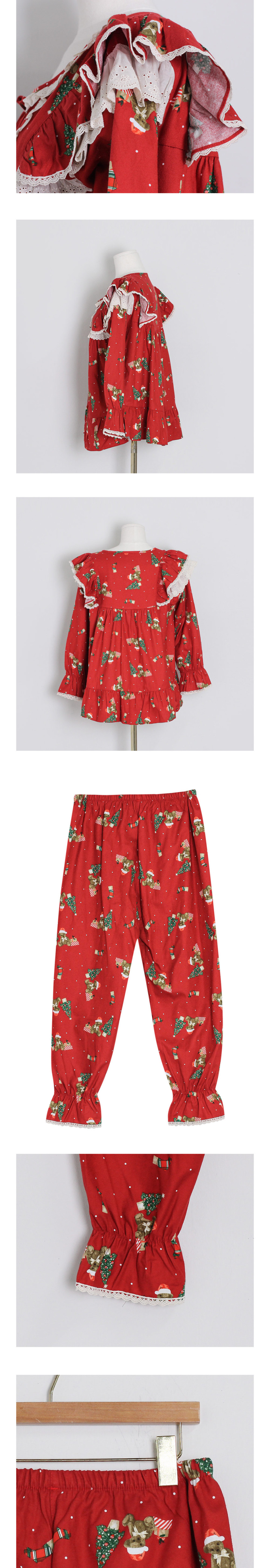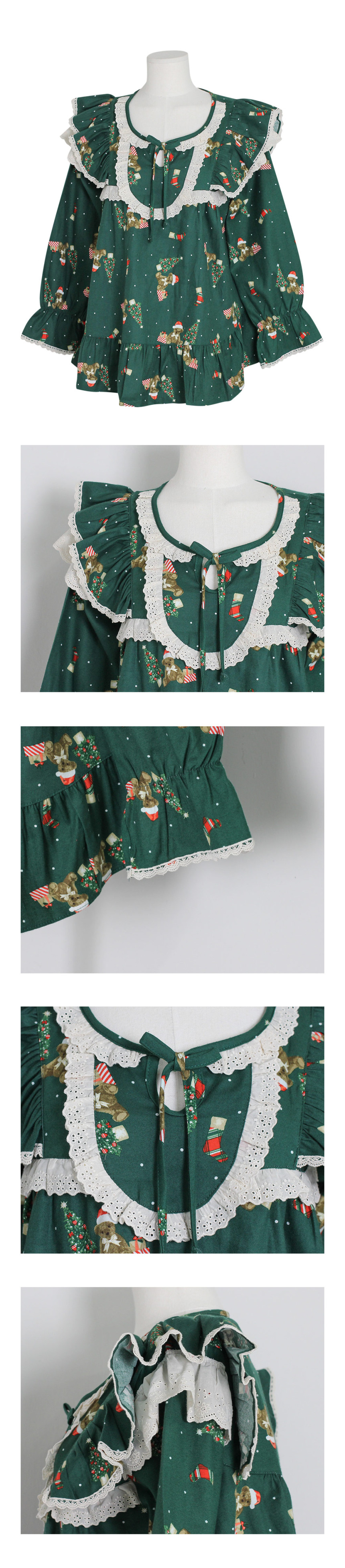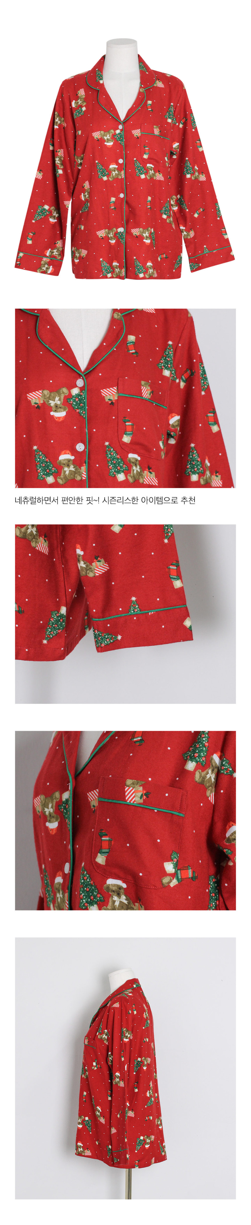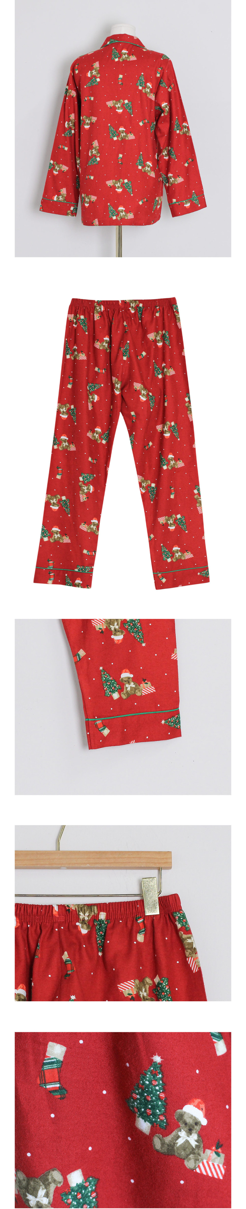 여성 남성 커플산타베어 긴소매 원피스 투피스 레이스 카라 수면 잠옷