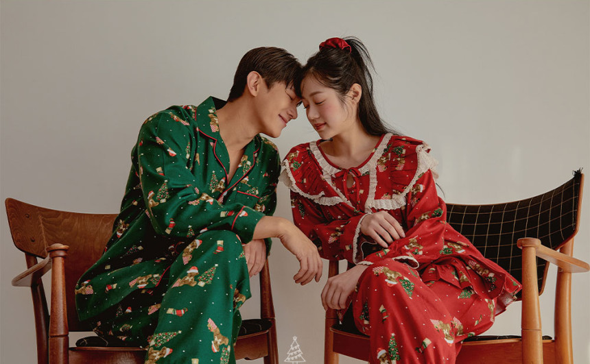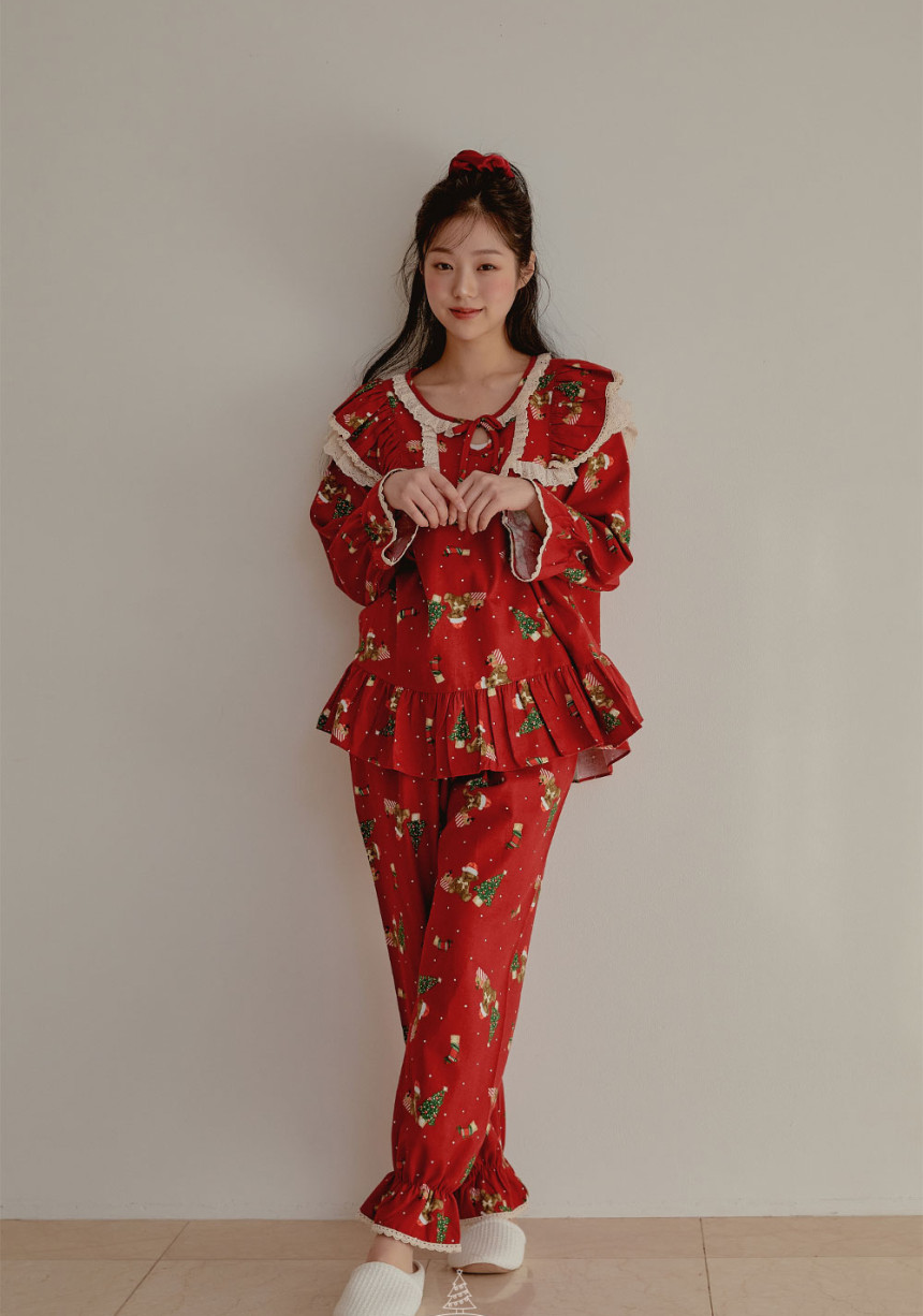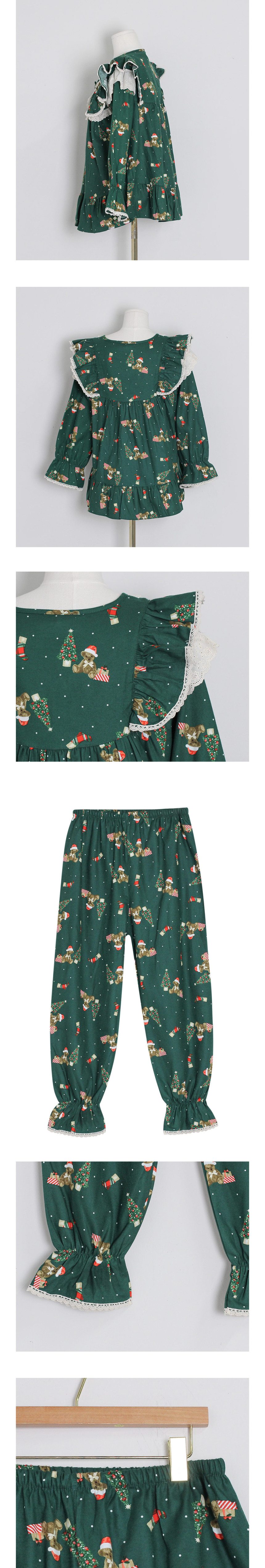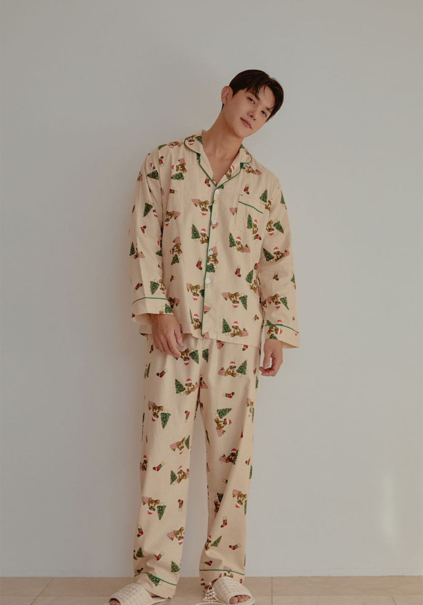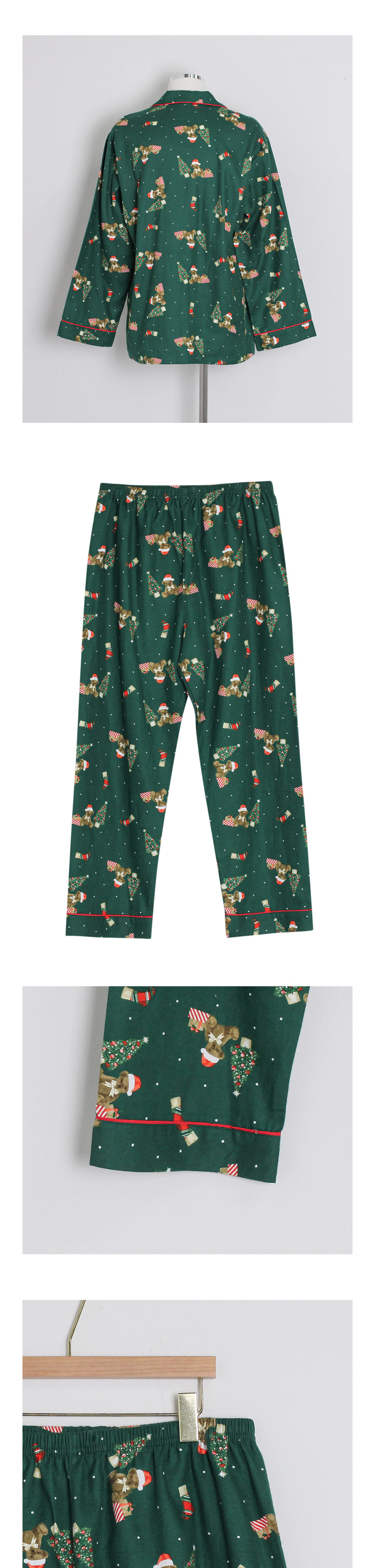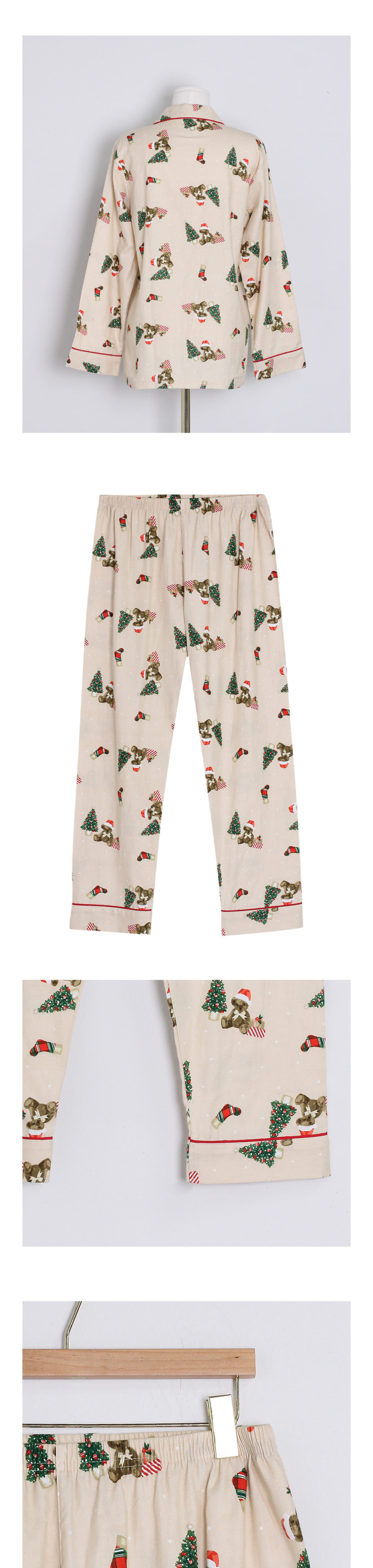 여성 남성 커플산타베어 긴소매 원피스 투피스 레이스 카라 수면 잠옷
