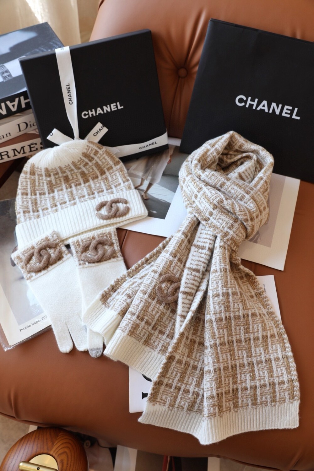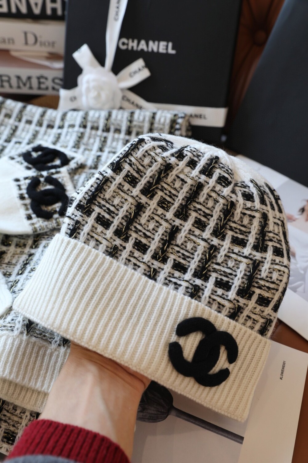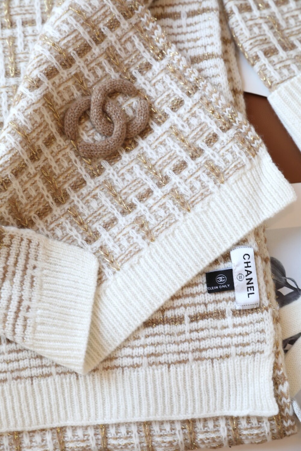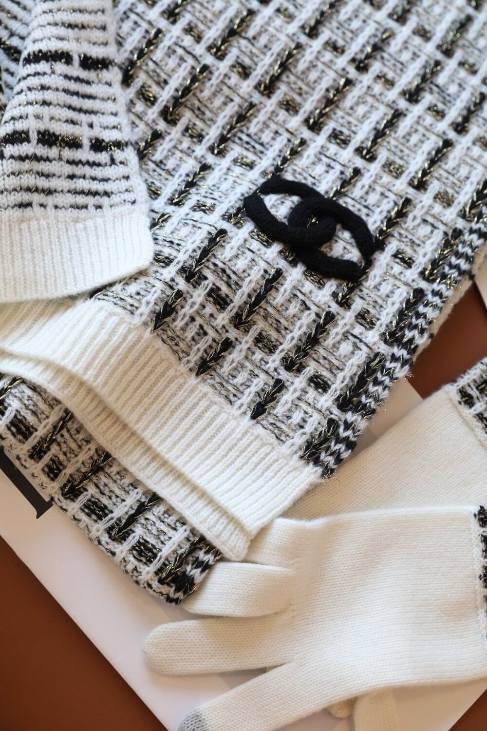 An ultra-luxurious Chanel-inspired cashmere knit set designed for the fall and winter season.