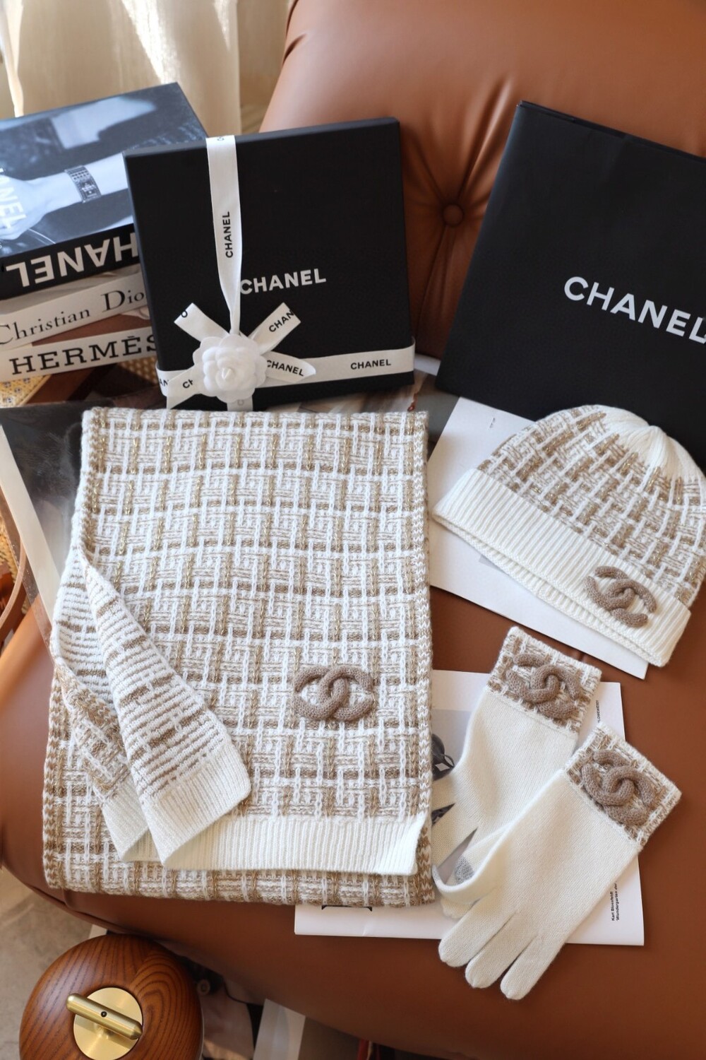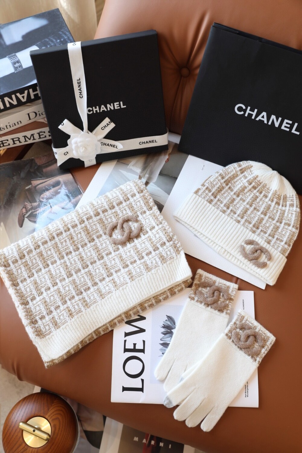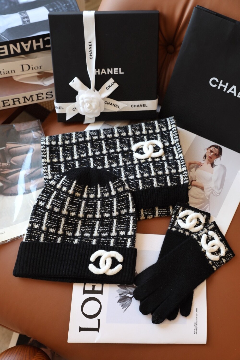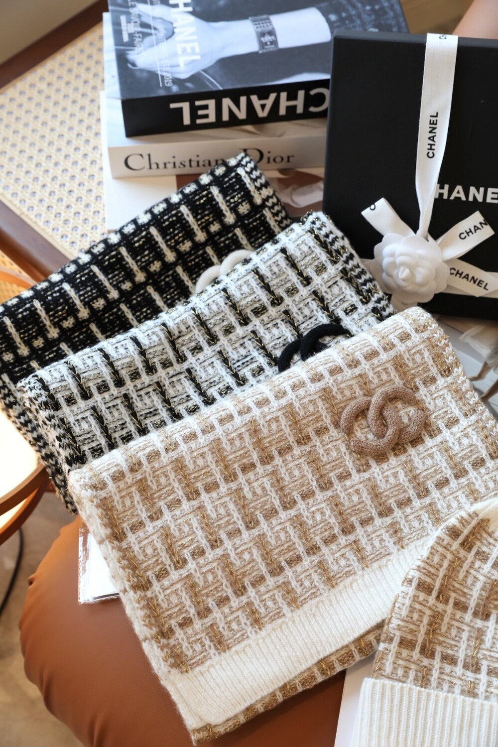 An ultra-luxurious Chanel-inspired cashmere knit set designed for the fall and winter season.