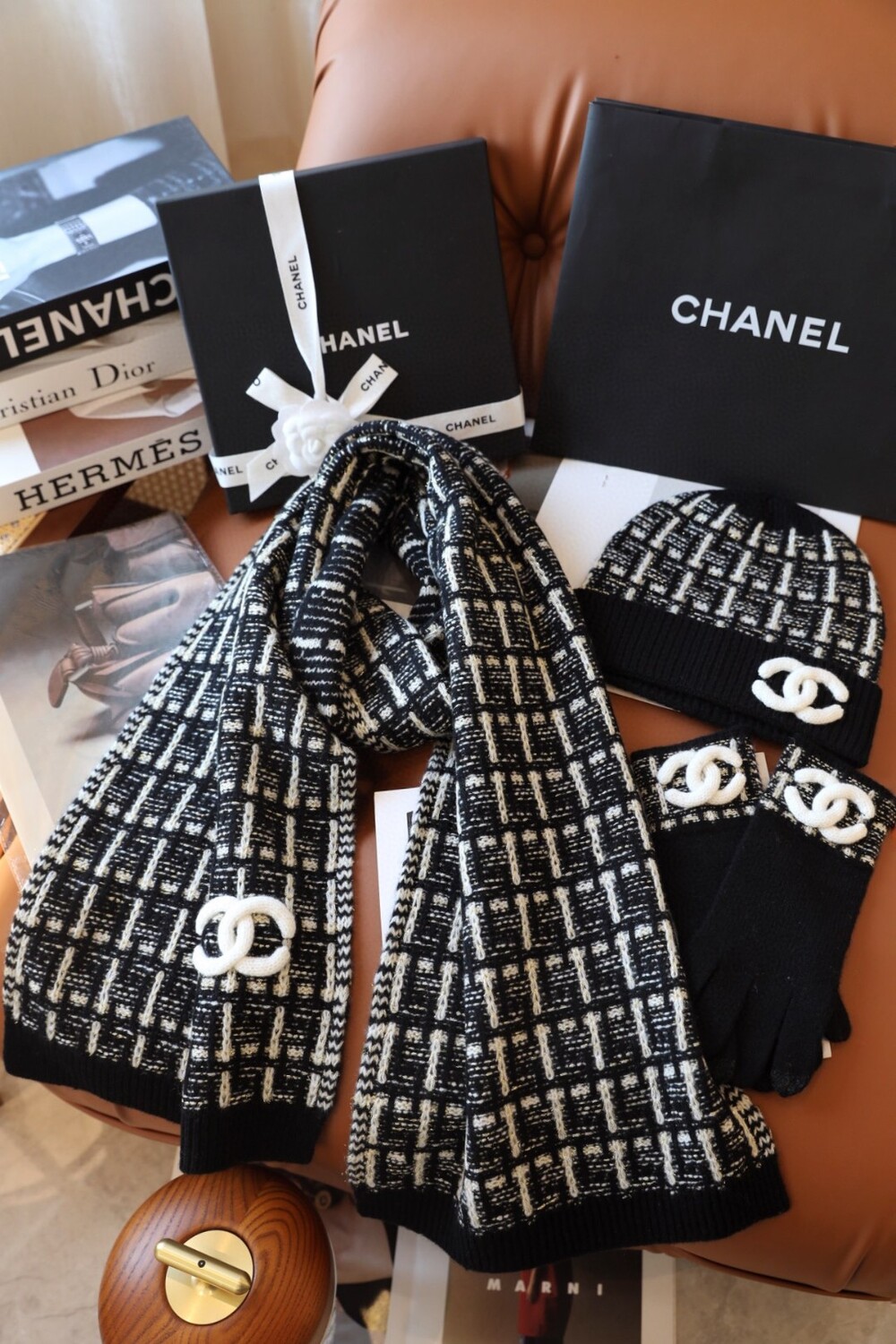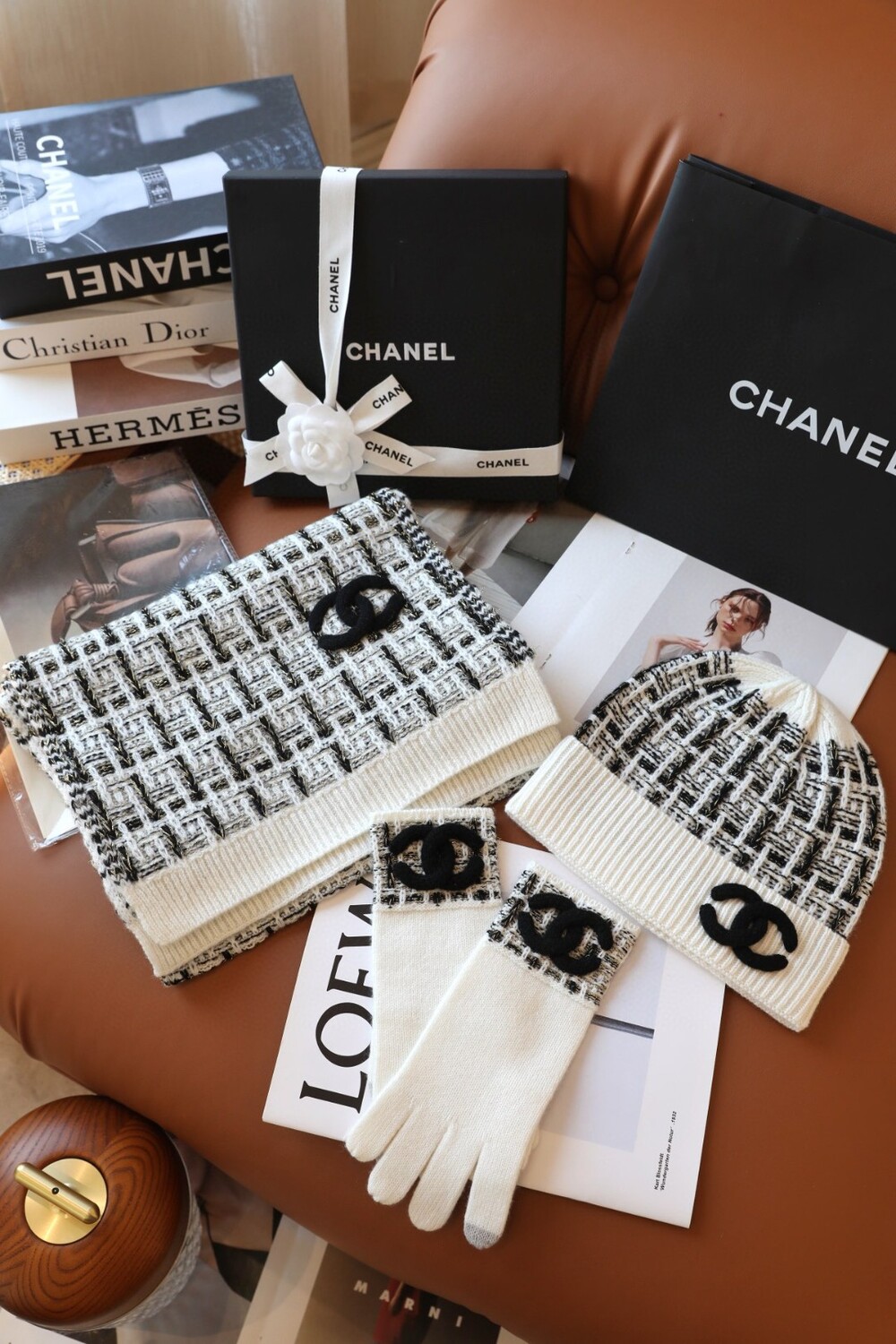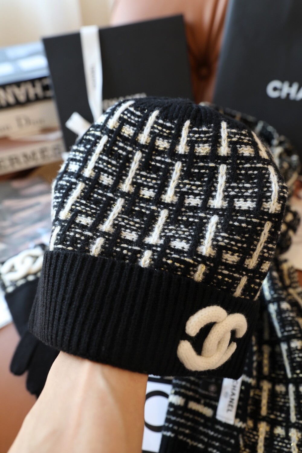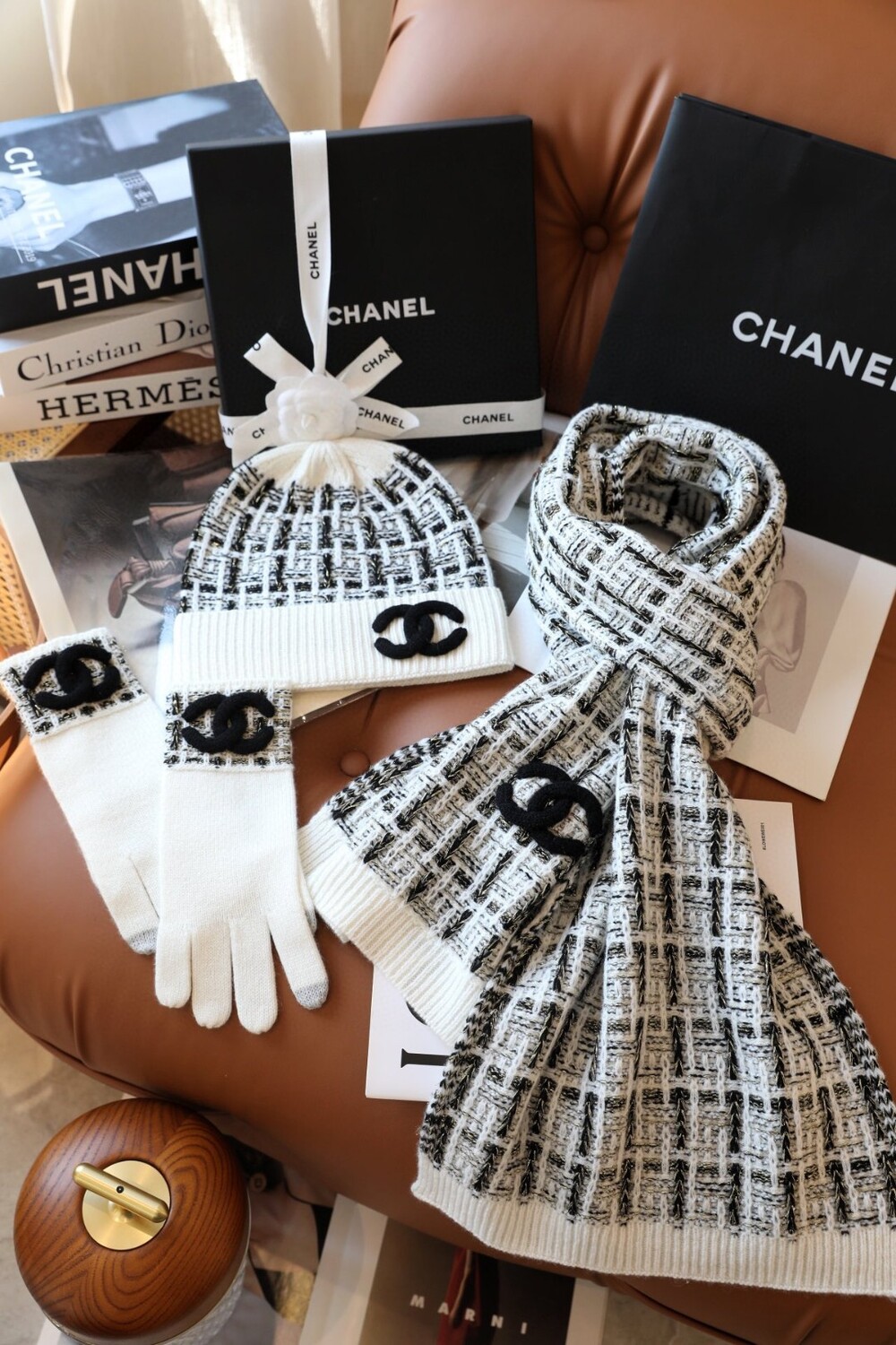 An ultra-luxurious Chanel-inspired cashmere knit set designed for the fall and winter season.