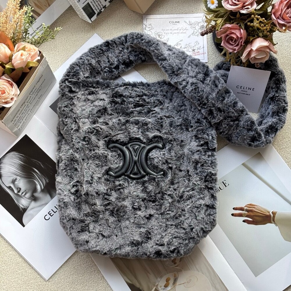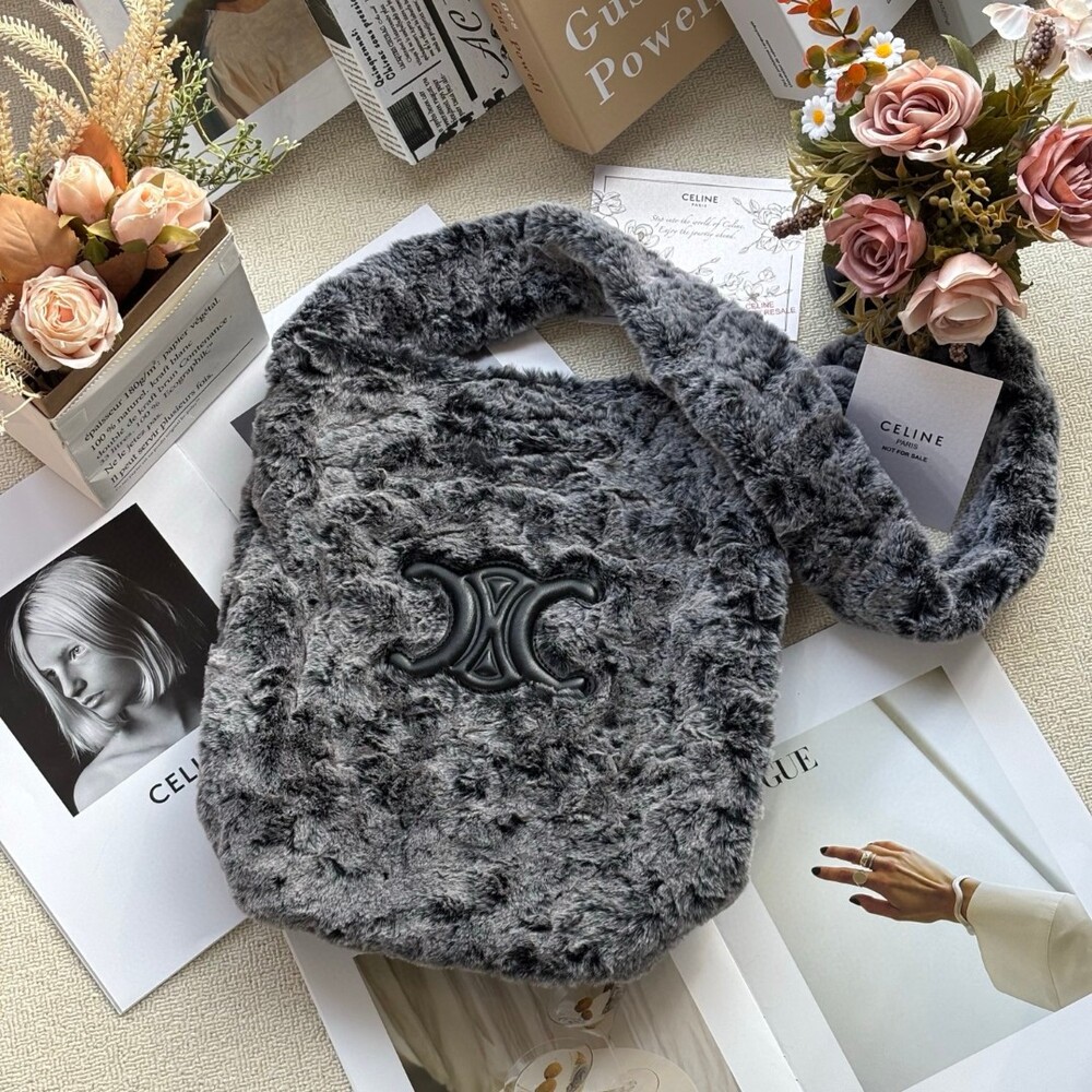 Stay cozy and chic this season with the Celine Triomphe faux fur tote (ViP Edition).Designed with a soft, fluffy texture and the signature Triomphe emblem, it’s perfect for adding a luxurious winter vibe to any outfit. Lightweight yet warm to the touch, it feels like carrying a little piece of comfort everywhere you go. Complete with exclusive VIP packaging and an interior label marked “Not for Sale,” this bag is a statement of understated elegance.Size: 30 × 35 cm