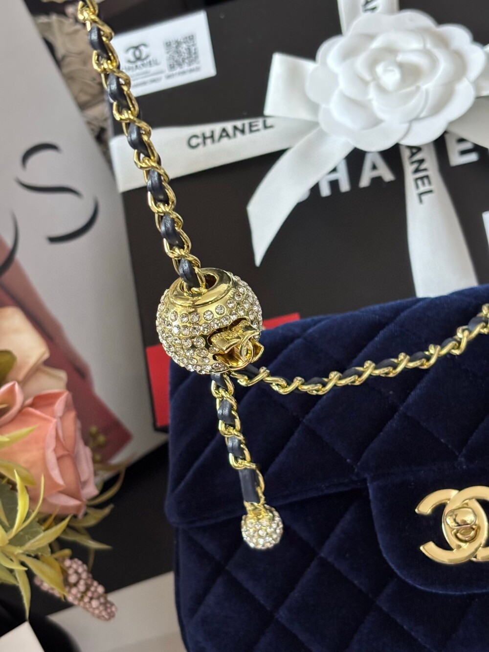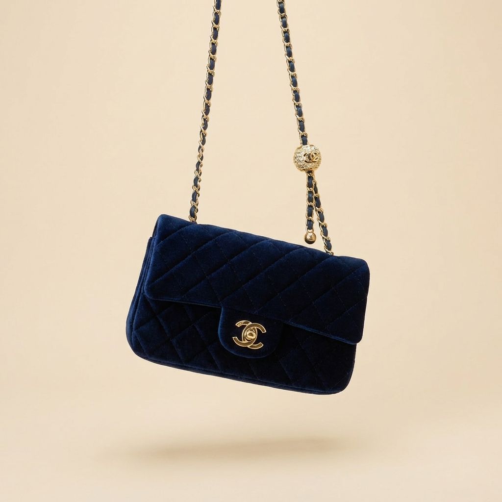 Chanel Velvet Mini Flap Bag with Gold Ball ChainA compact,