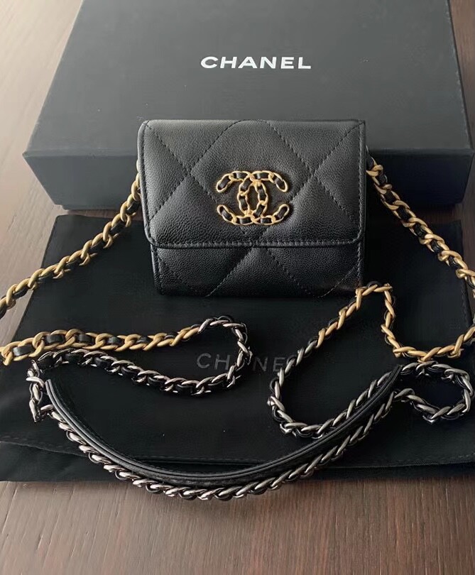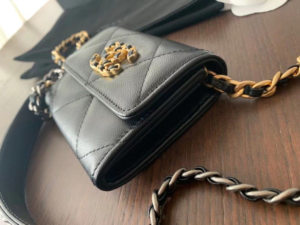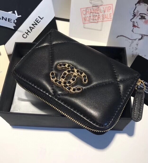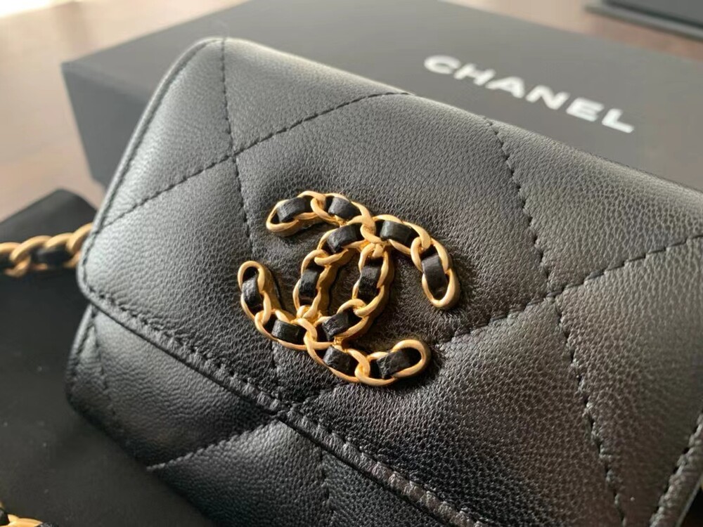 CHANEL·Overseas Senior VIP Member Privileges19 series / coin purse goatskin vintage distressed hardware . gold buckle-Large checkered black leather woven chain with big logo and black inner lining-With a full set of premium VIP points, anti-counterfeiting stickers, identity cardsSmall and small space, so that the bag is no longer messy. Size: 8.5cmx12cmx2.5cm