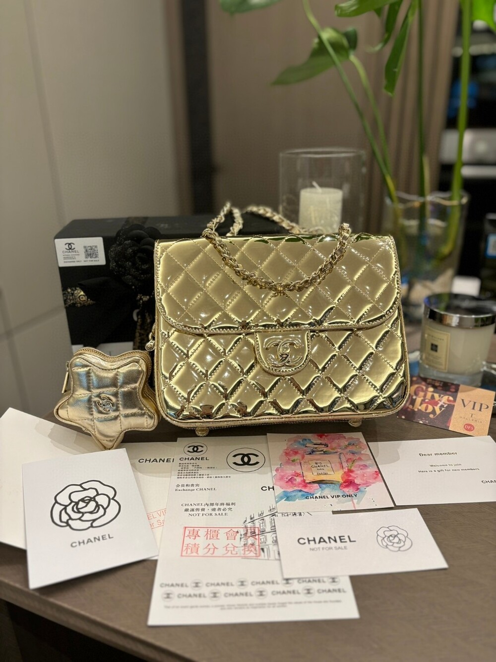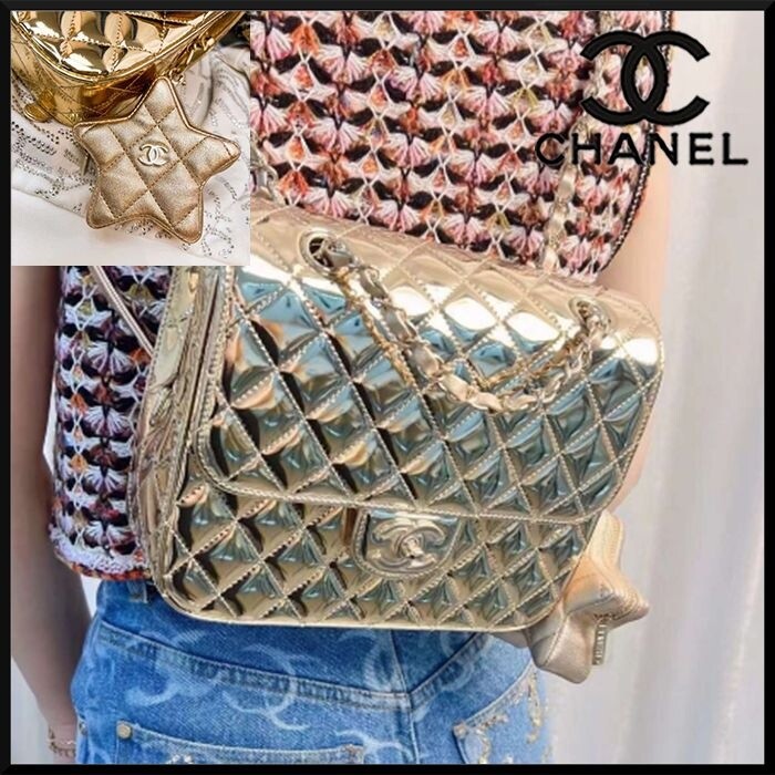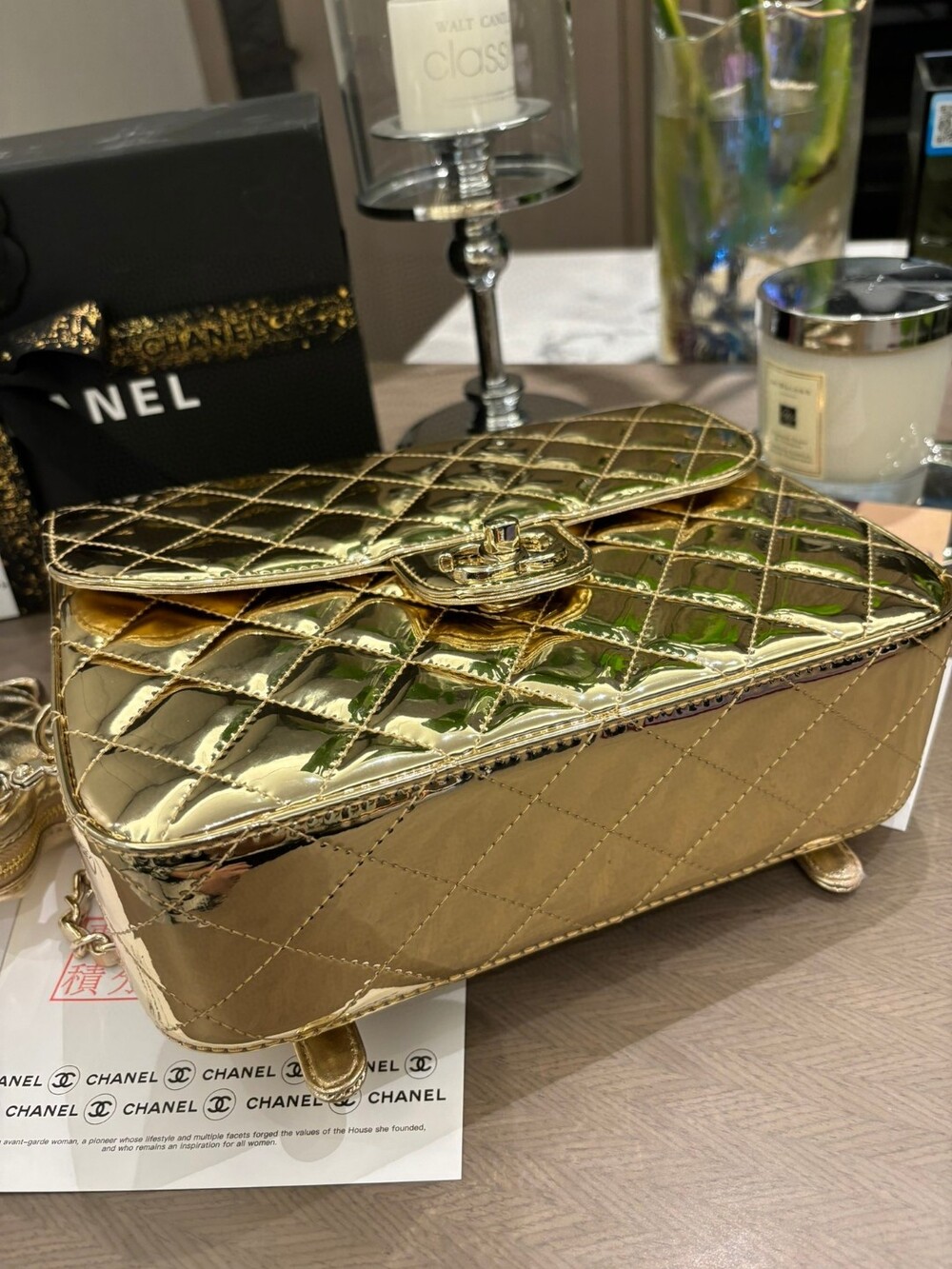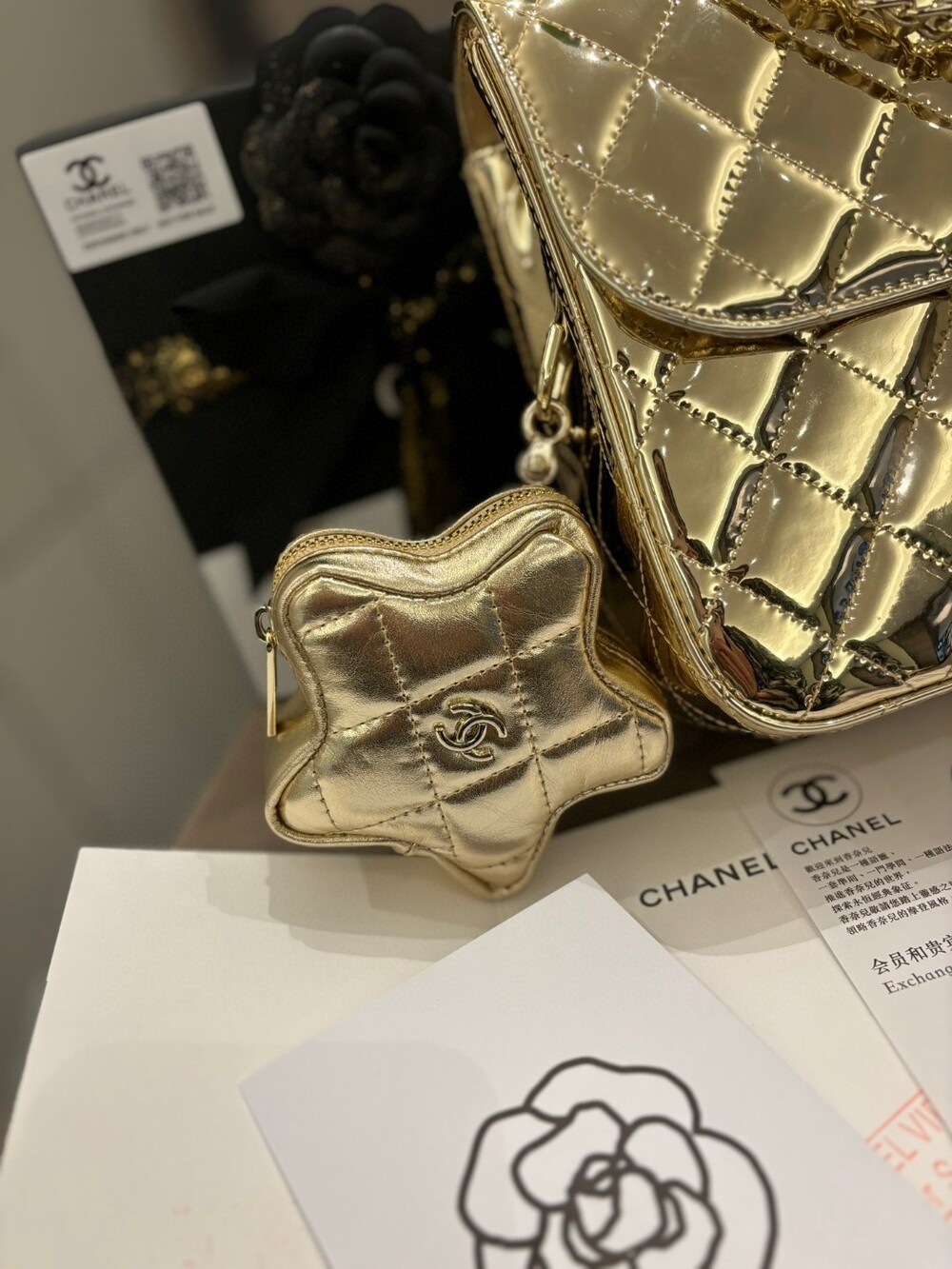 Backpack size:25*19cmChanel Home 24C Enamel BackpackThis gold bag is really beautifullKim is just fine not to show off very good very good dress and small stars