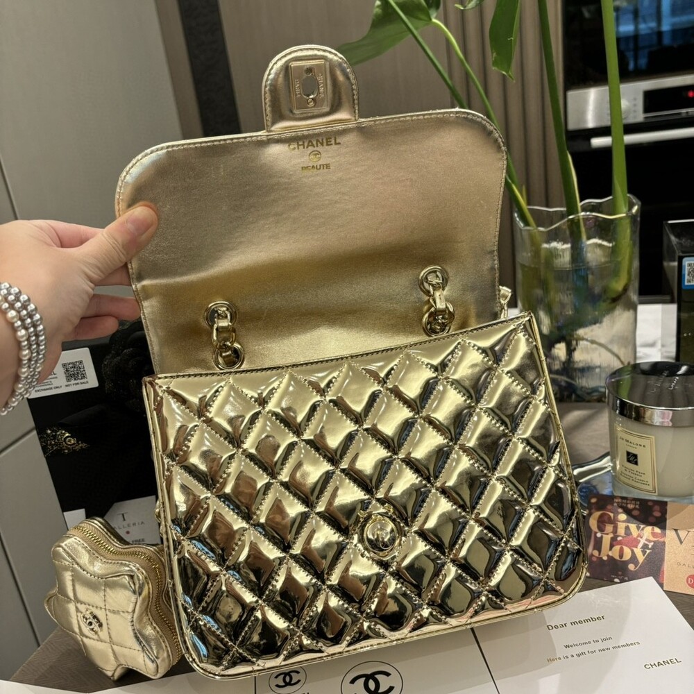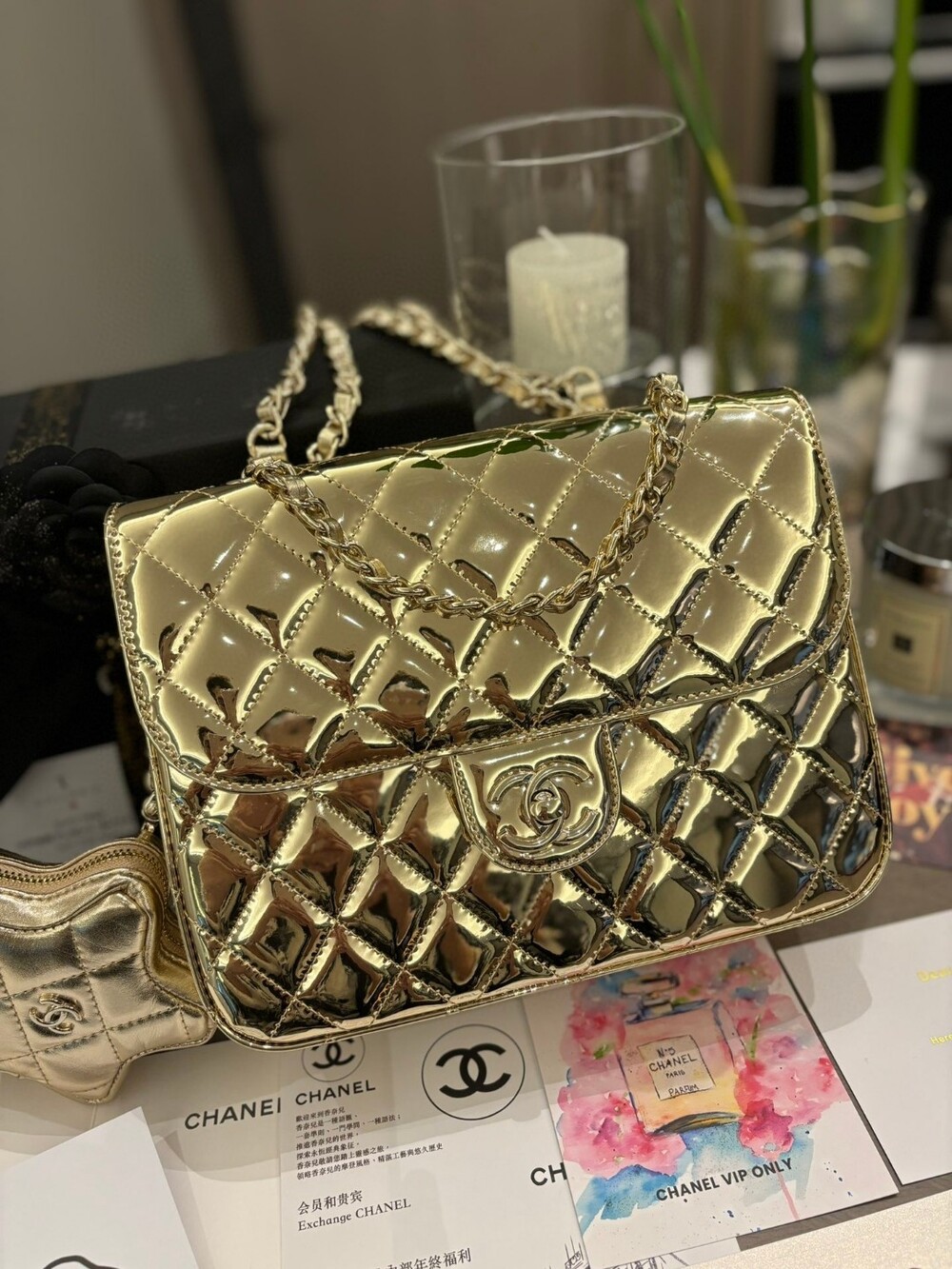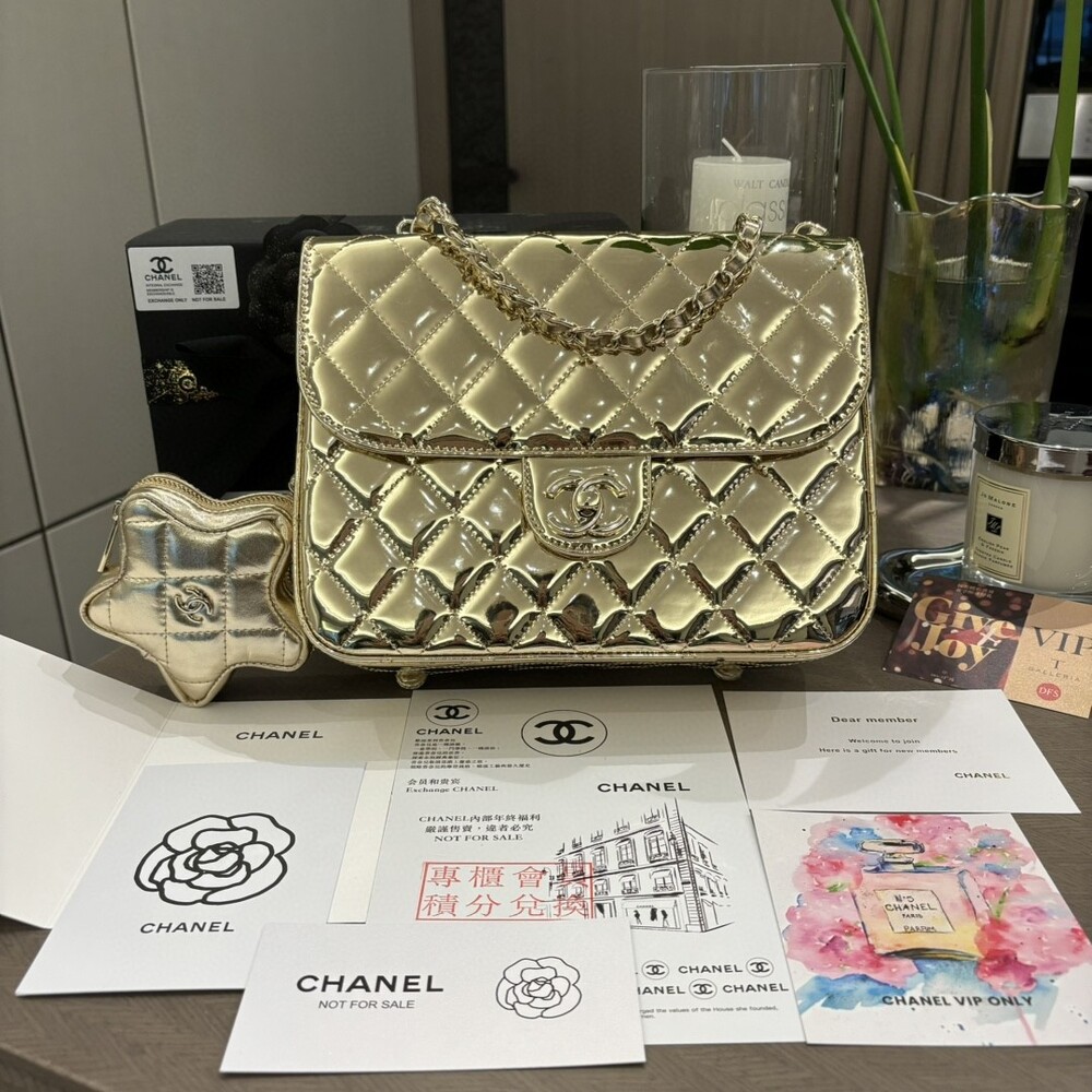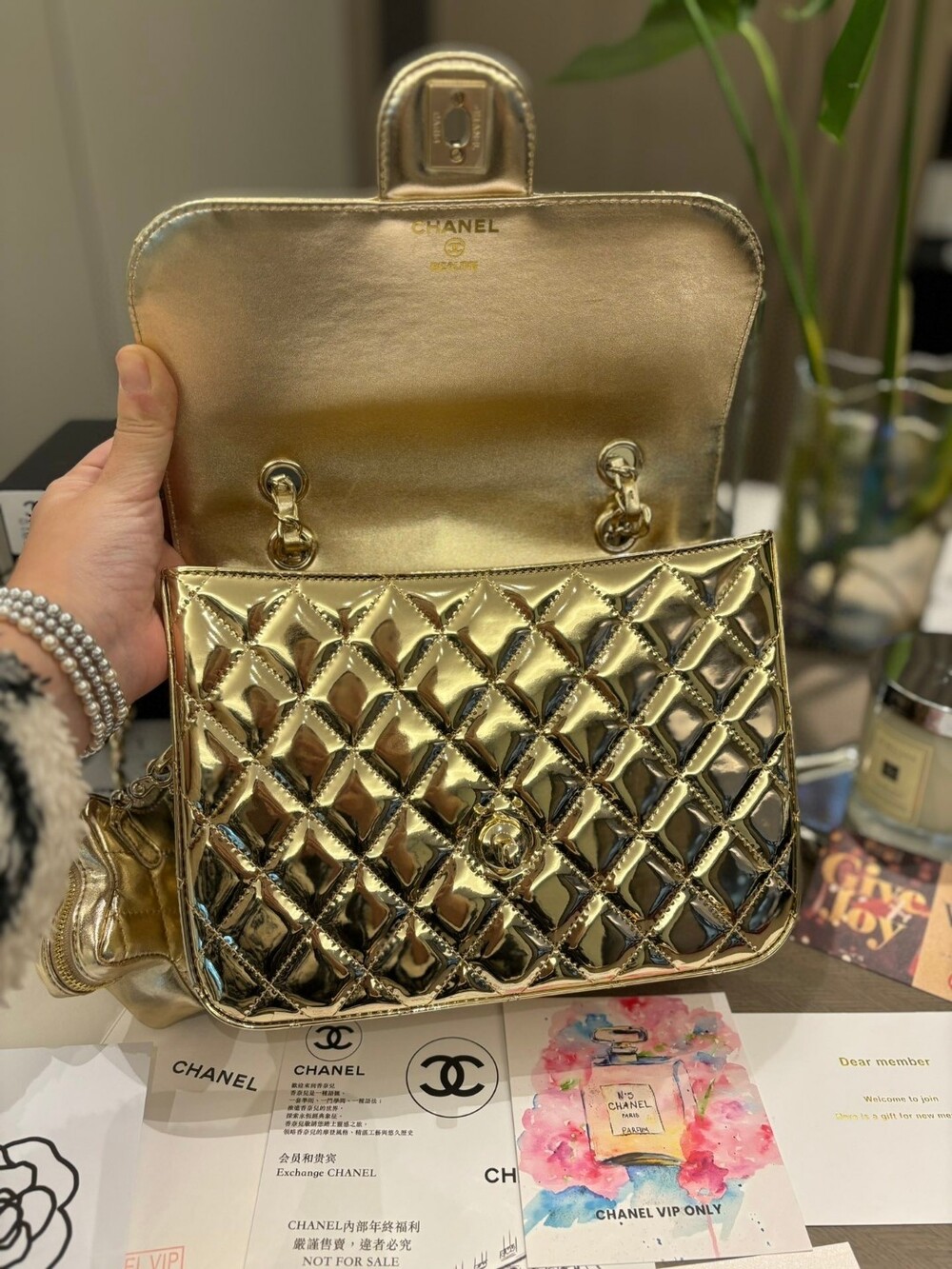Backpack size:25*19cmChanel Home 24C Enamel BackpackThis gold bag is really beautifullKim is just fine not to show off very good very good dress and small stars