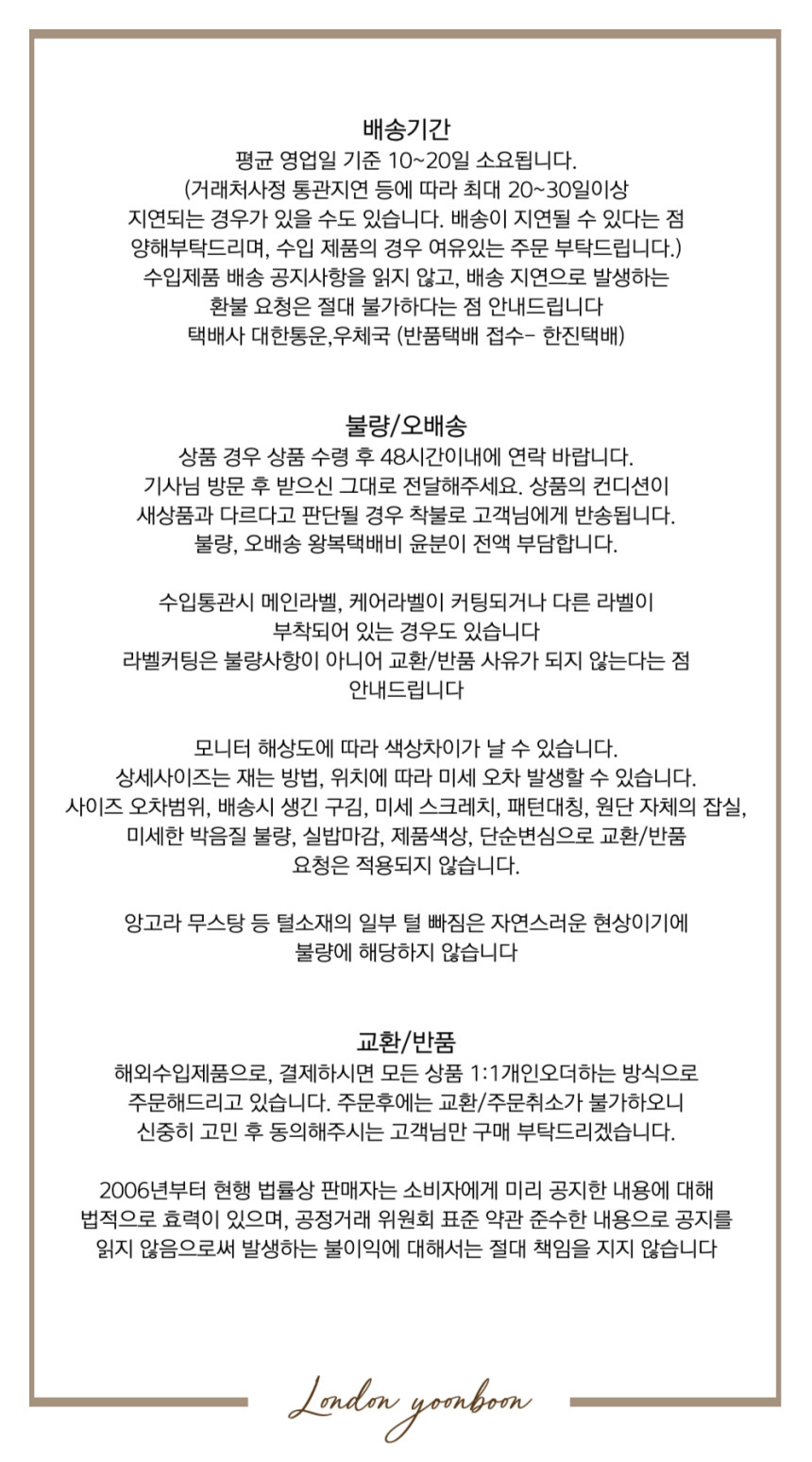 수입의류로 배송기간 평균 영업일 9일 ~ 15일입니다