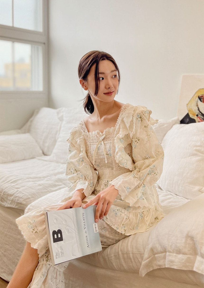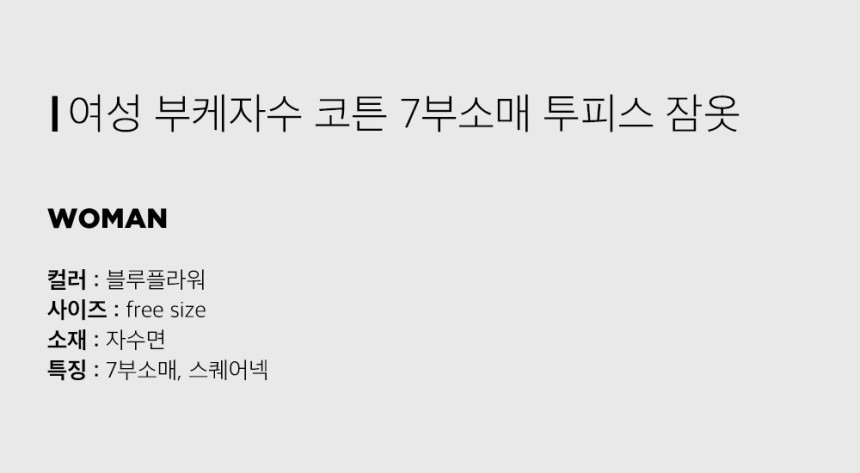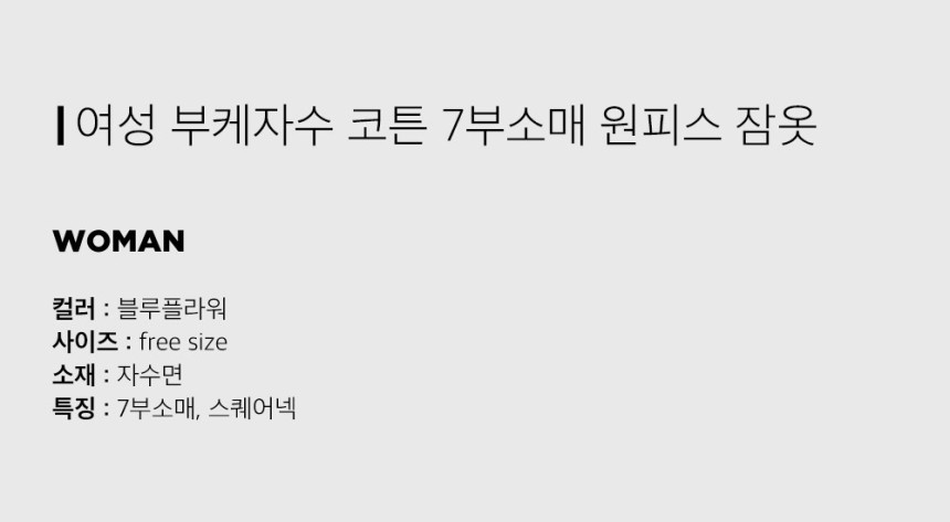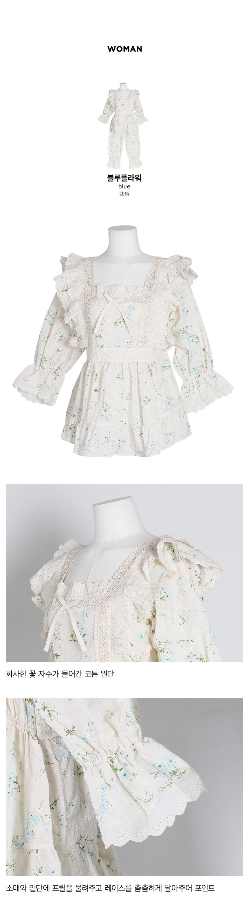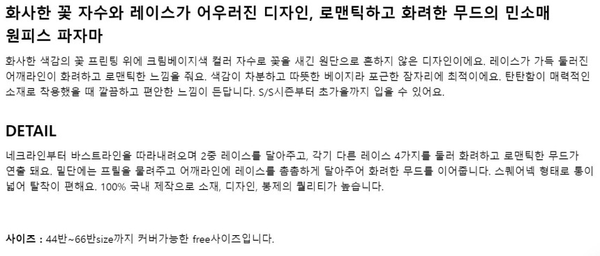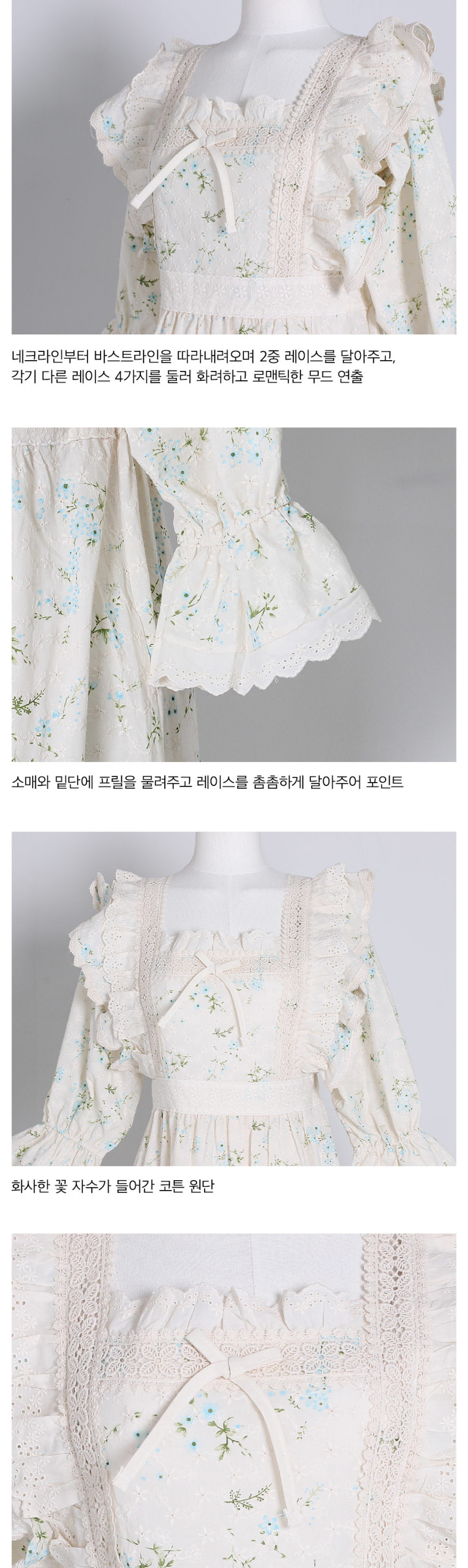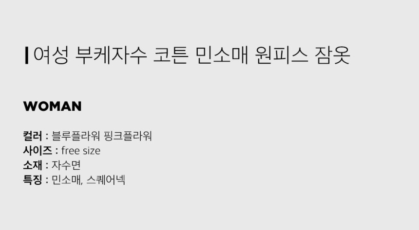여성 부케자수 긴소매 민소매 원피스 투피스 잠옷