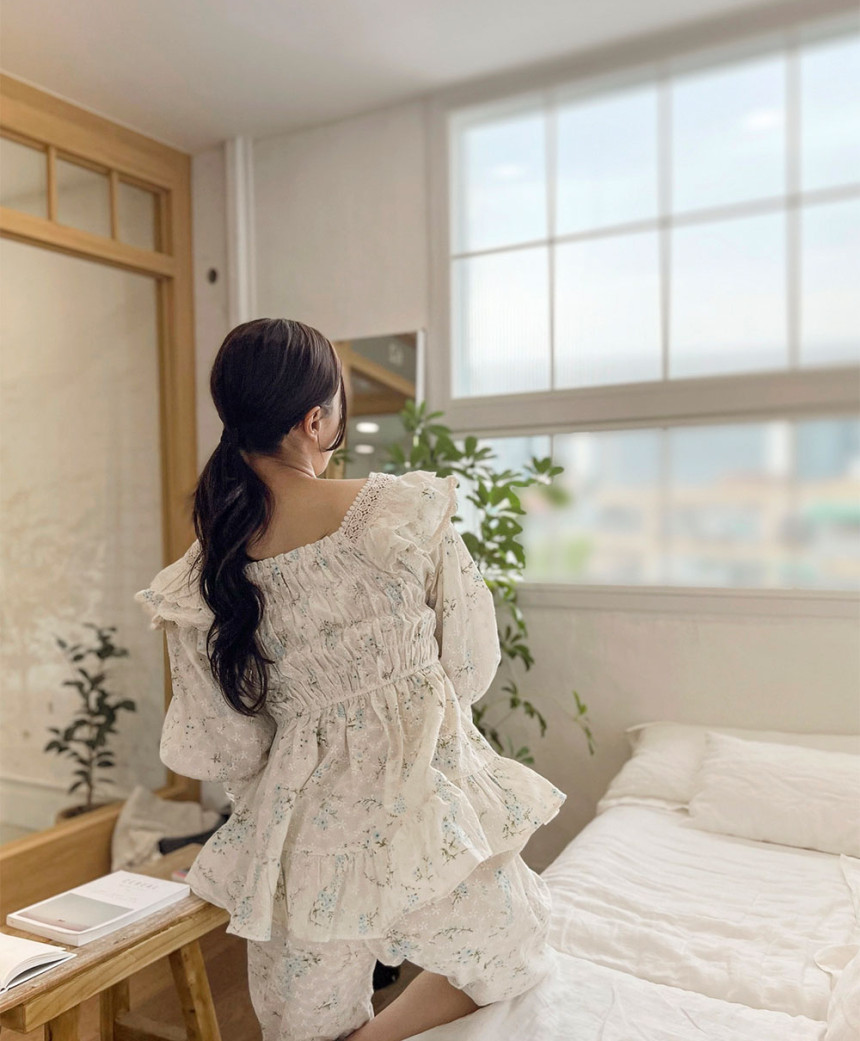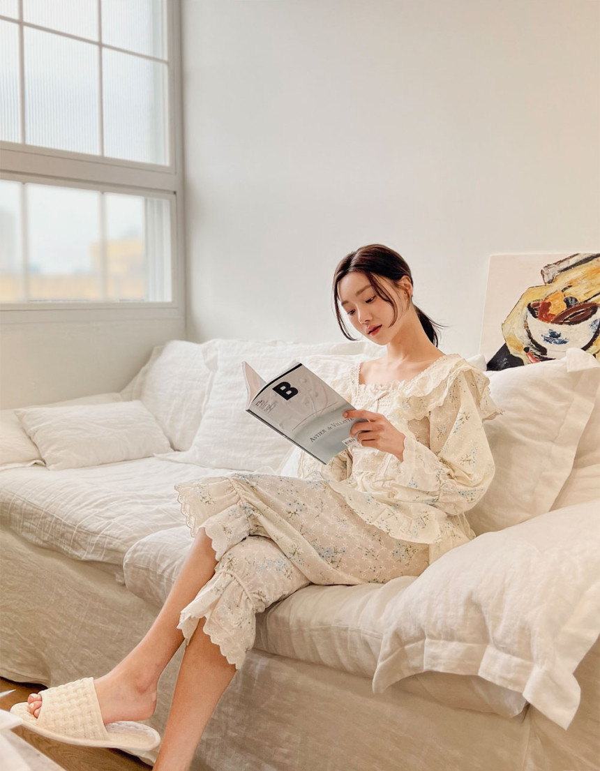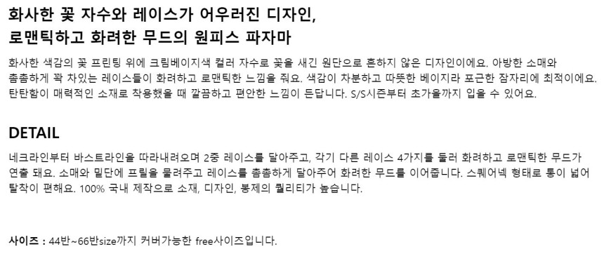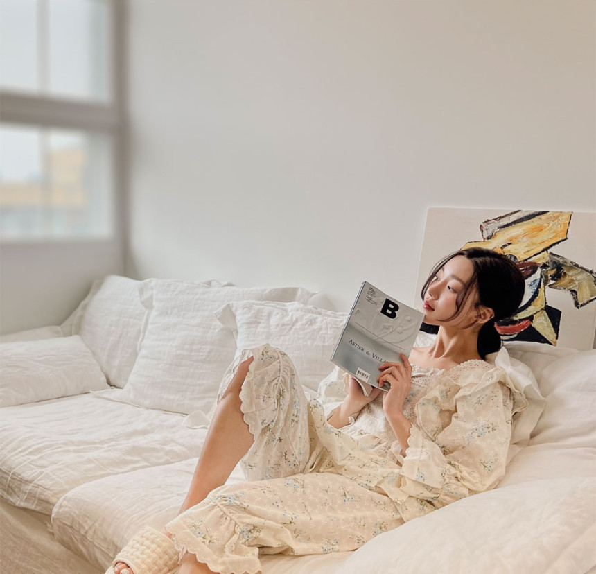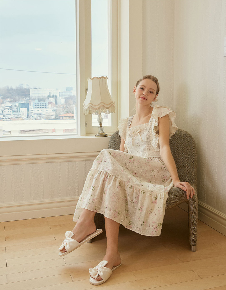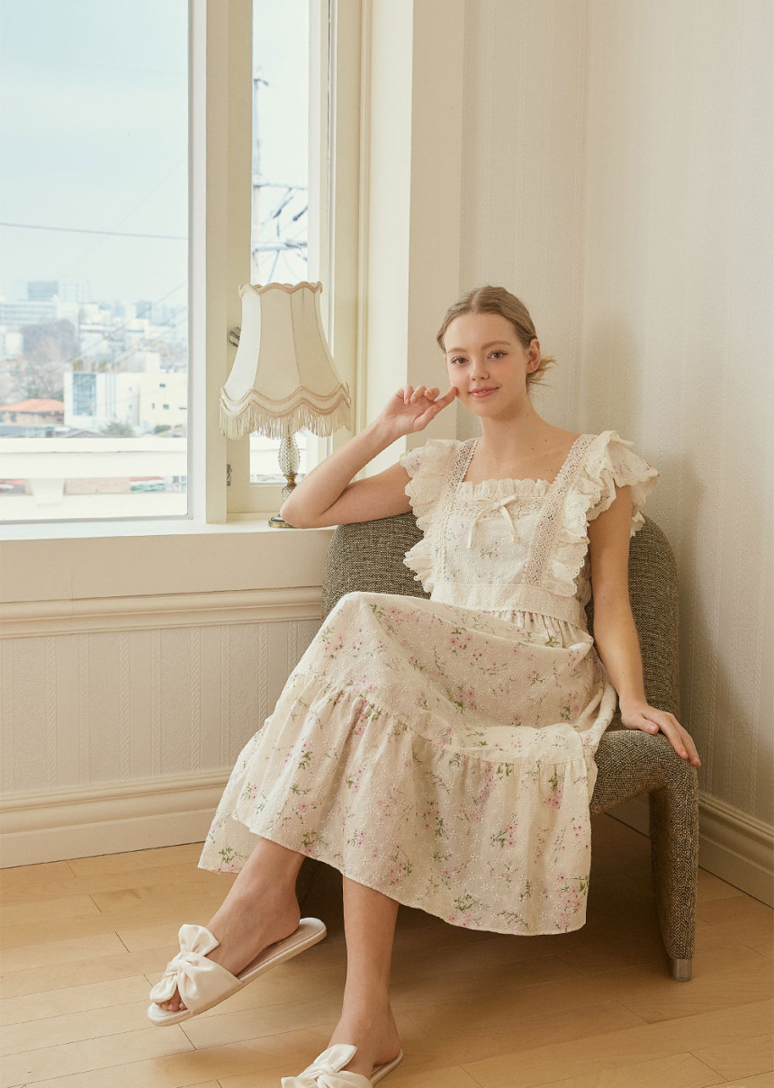 여성 부케자수 긴소매 민소매 원피스 투피스 잠옷
