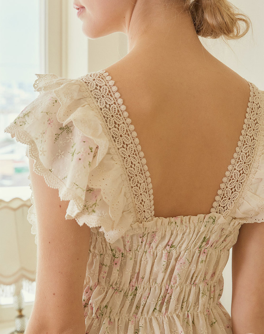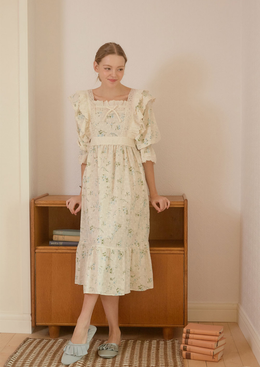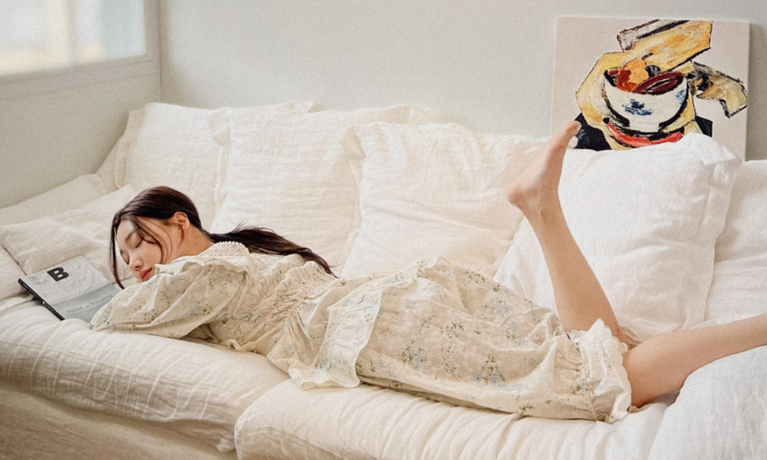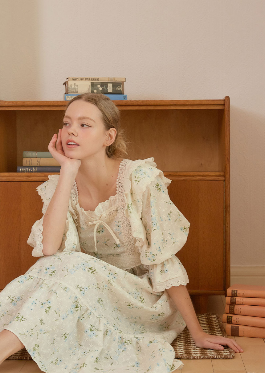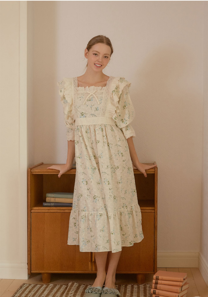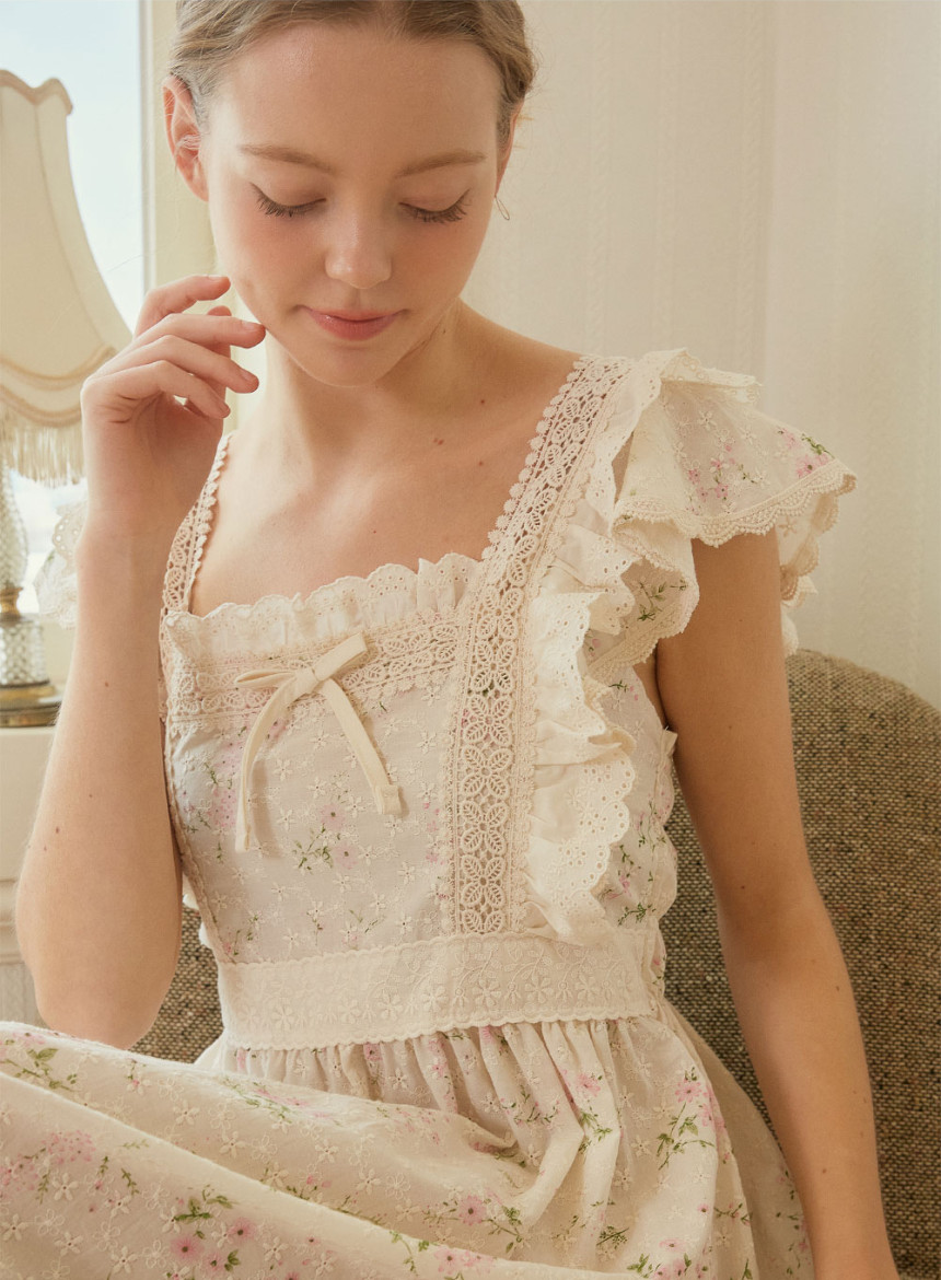 여성 부케자수 긴소매 민소매 원피스 투피스 잠옷