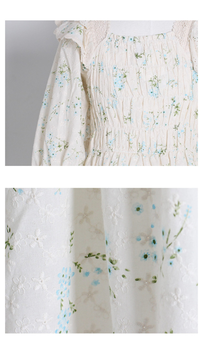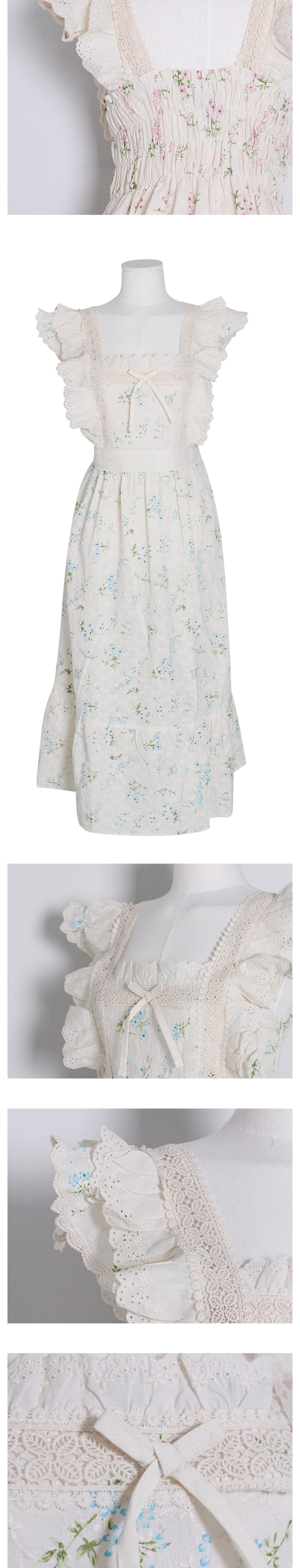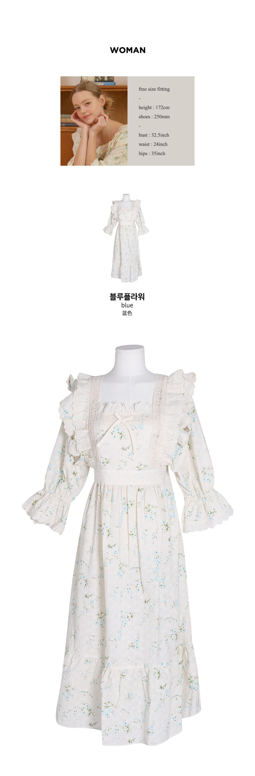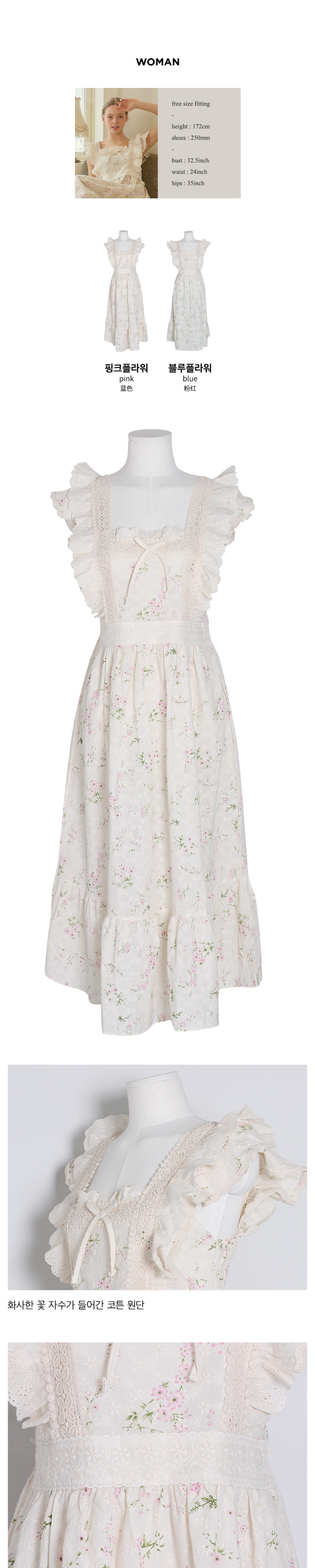 [여성] 부케자수 원피스 (민소매-블루플라워)
