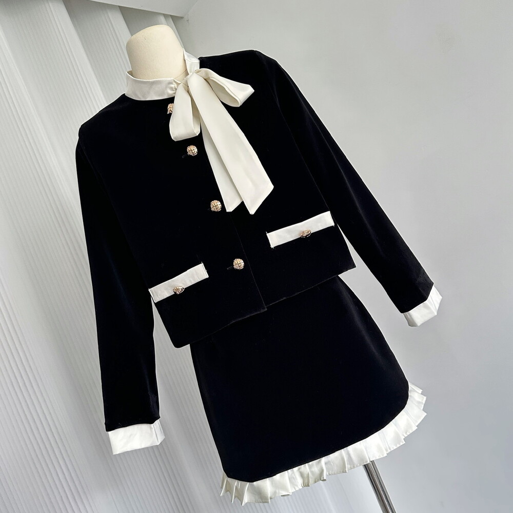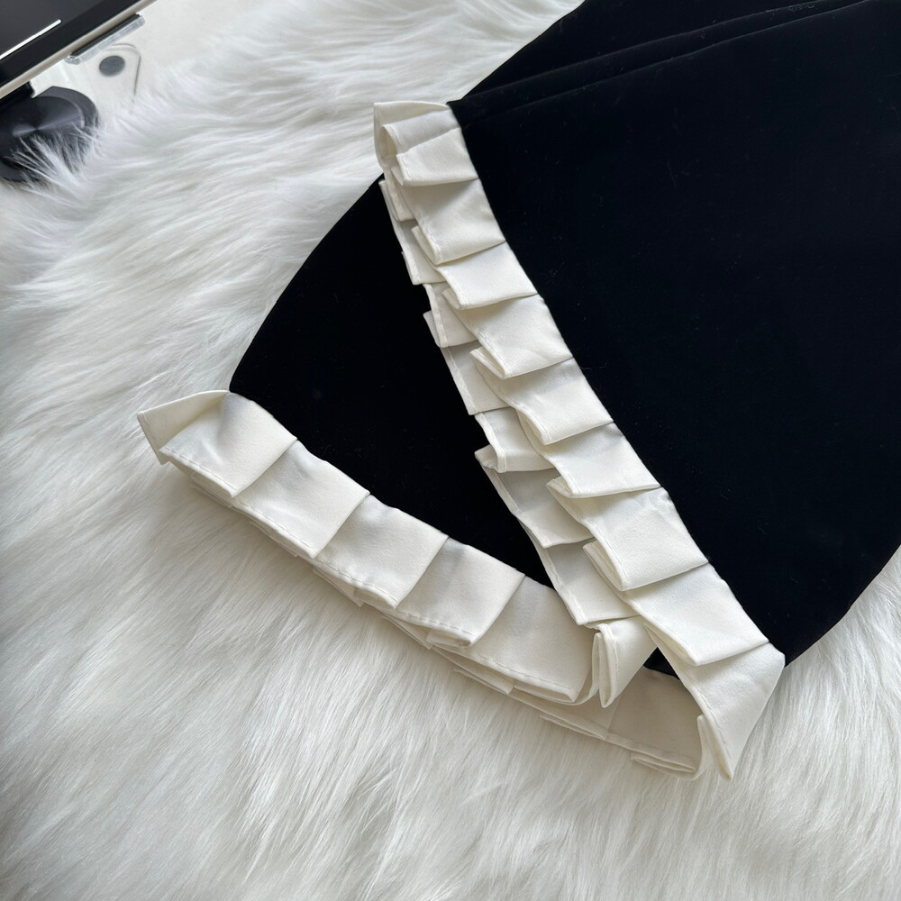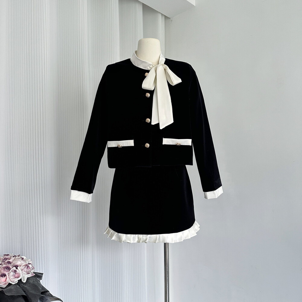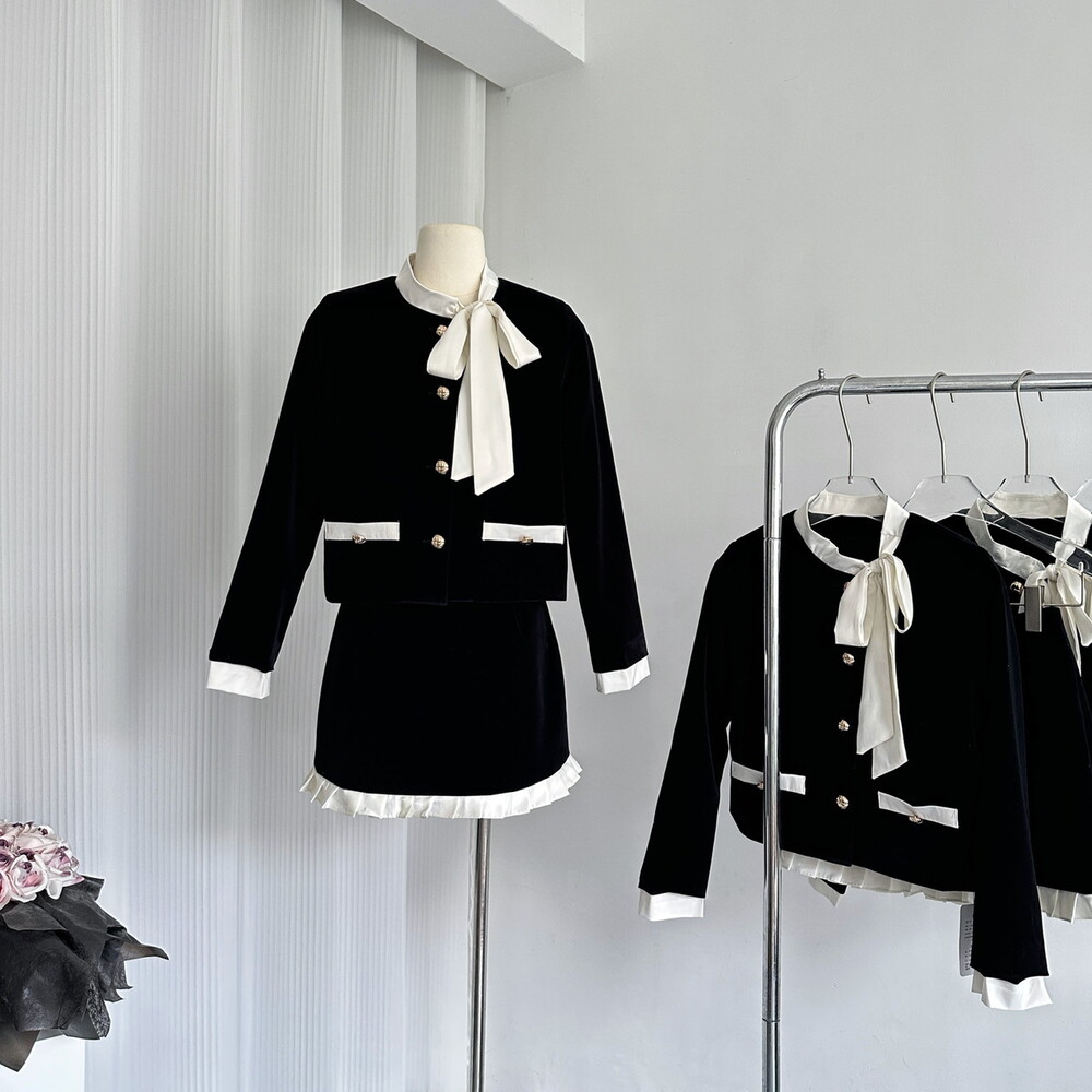벨벳소재와 프릴 디자인으로 귀엽고 고급스러운 투피스 소개드려요 : )