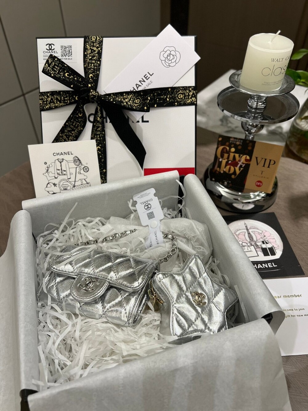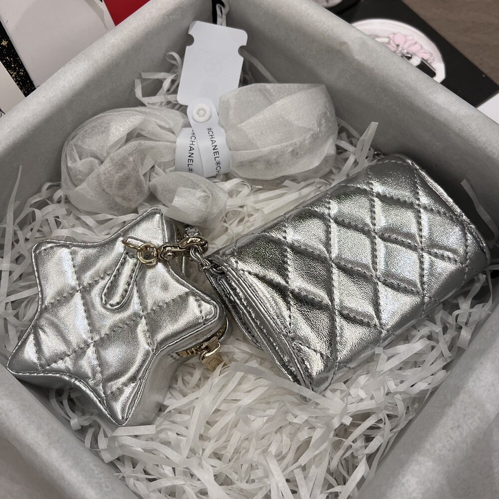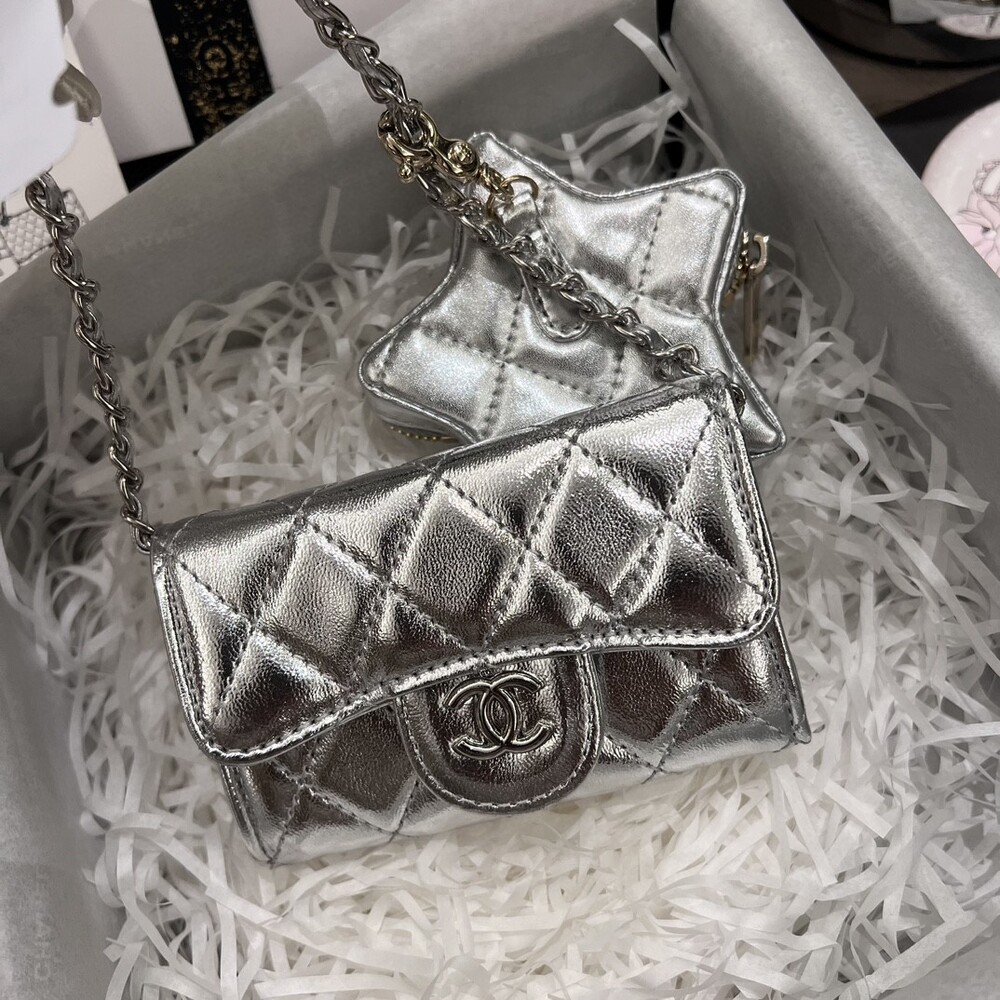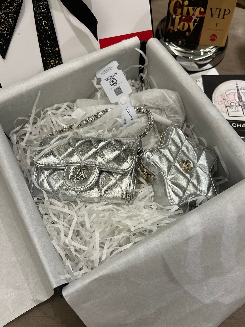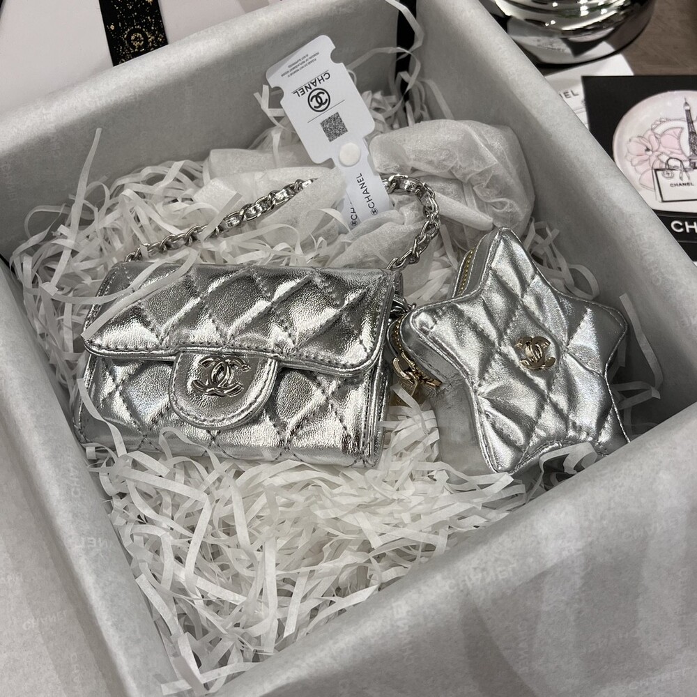 - Chanel mini Small stars (size: 9x3.5cm)Delicate and easy to use, all-around and cuteChanel mini wallet Full package Exclusive inner label:Not for sale ~It can be used as a waist bag and as a cross bag,This bag is really a big "scent."Super cute one Small capacity can only be loaded cute