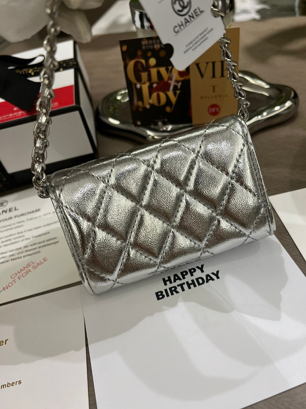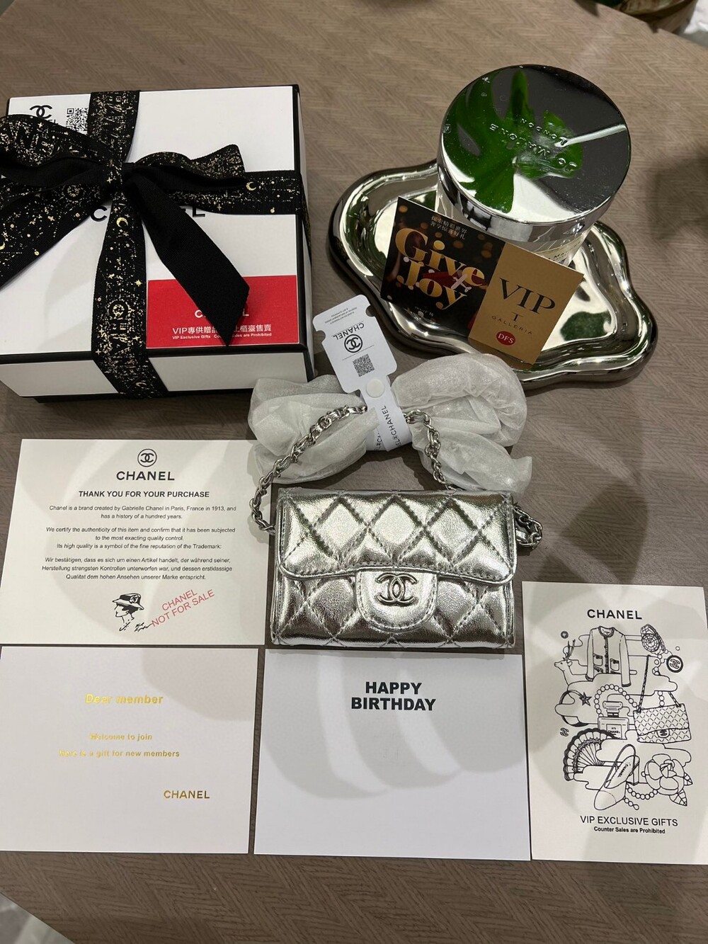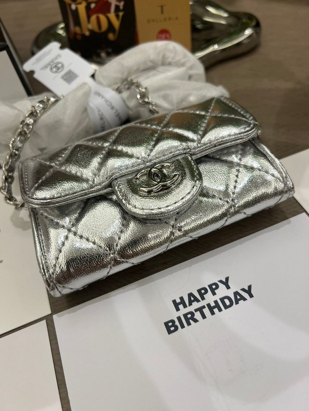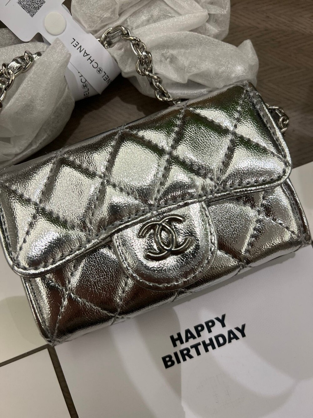 - Chanel mini Small stars (size: 9x3.5cm)Delicate and easy to use, all-around and cuteChanel mini wallet Full package Exclusive inner label:Not for sale ~It can be used as a waist bag and as a cross bag,This bag is really a big "scent."Super cute one Small capacity can only be loaded cute