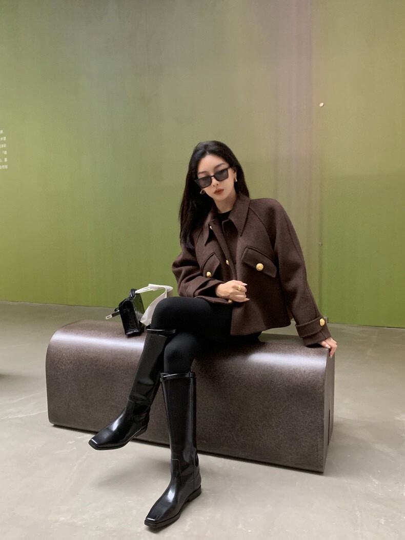 모델 착용컷처럼 올블랙에 레더 부츠 하시면 코디 이쁘구요 : )