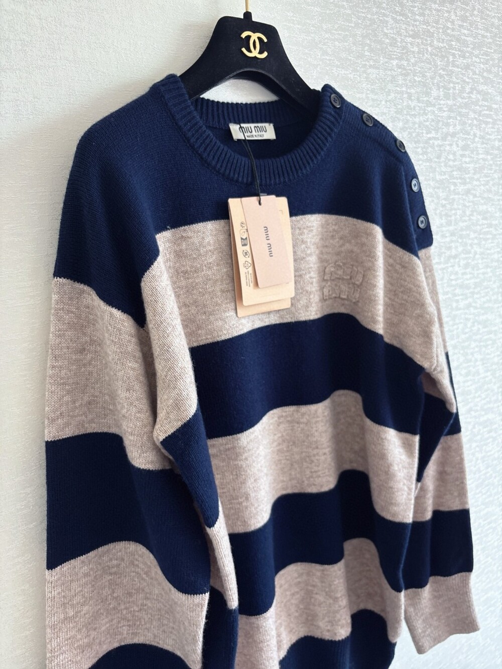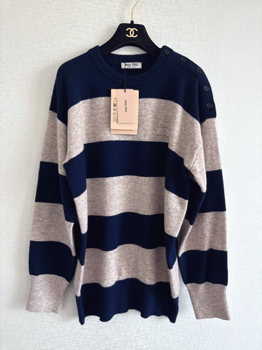 J. 뮤뮤 25fw 버튼 배색 니트
