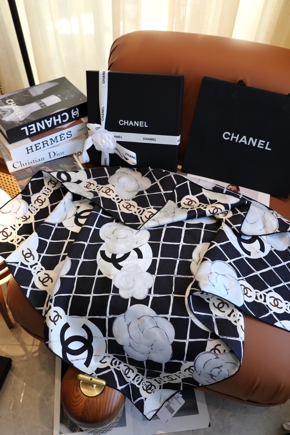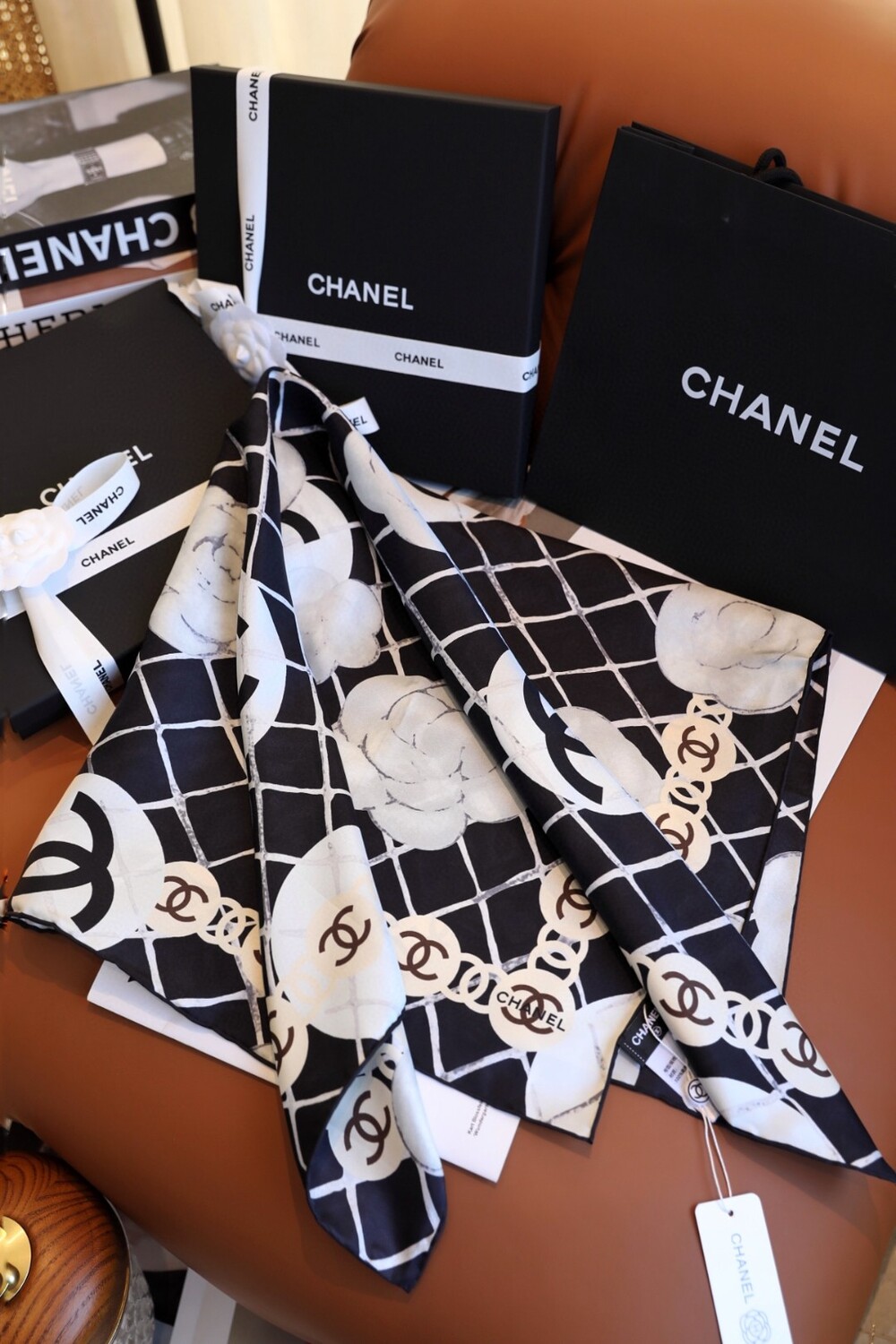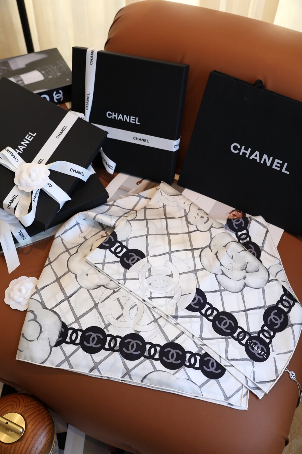Set includes: Scarf + CHANEL full packaging (branded box included)