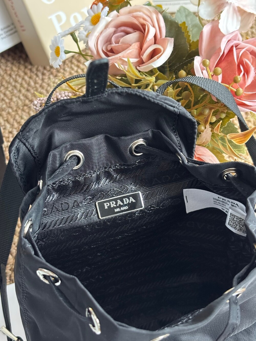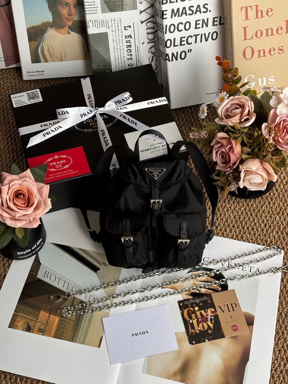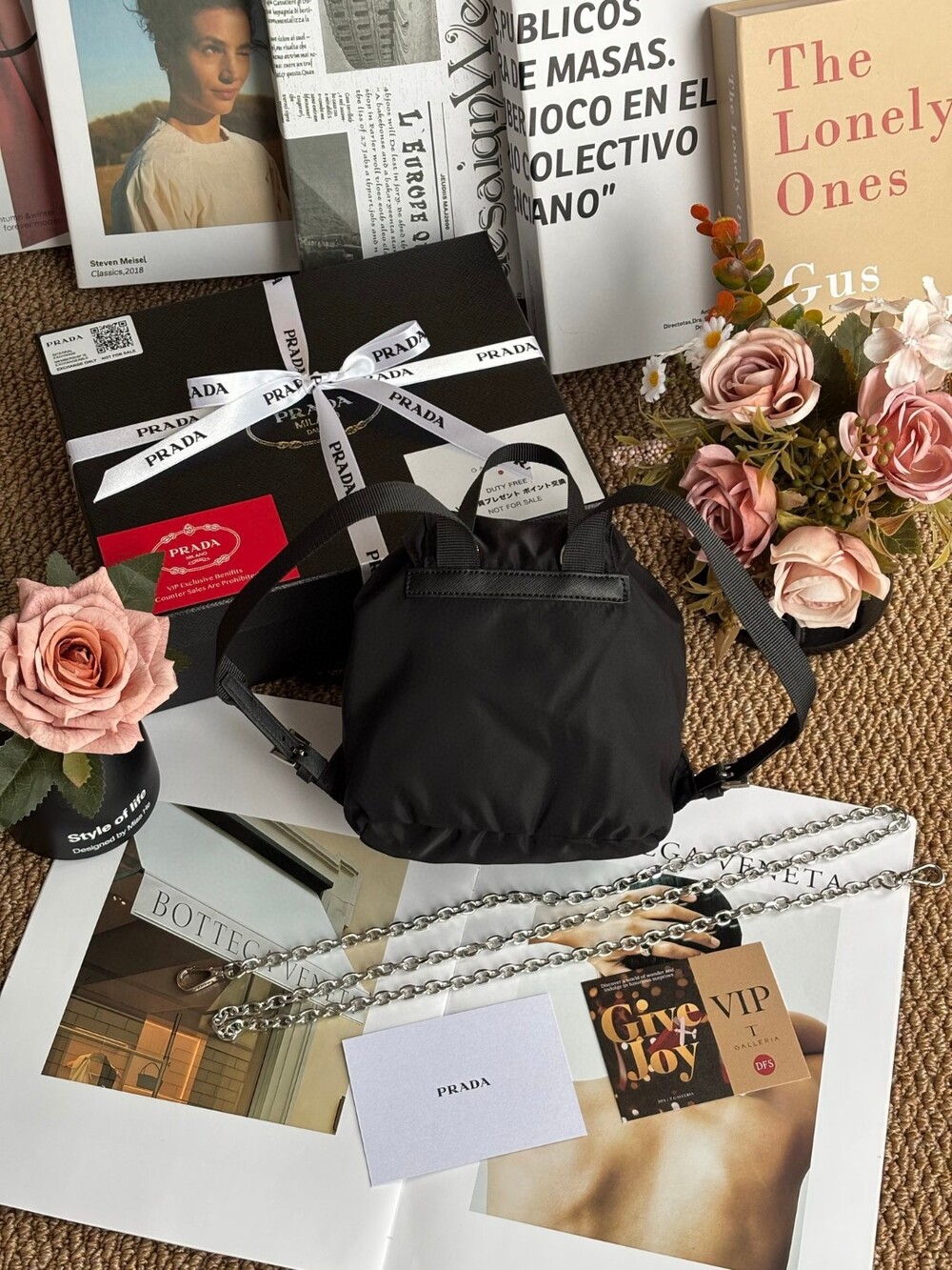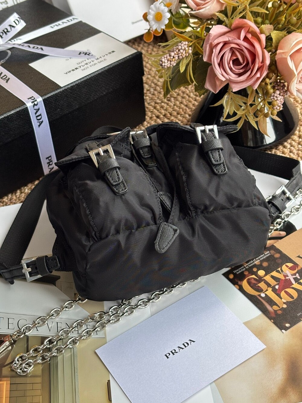 A compact yet iconic Prada Mini Nylon Chain Backpack