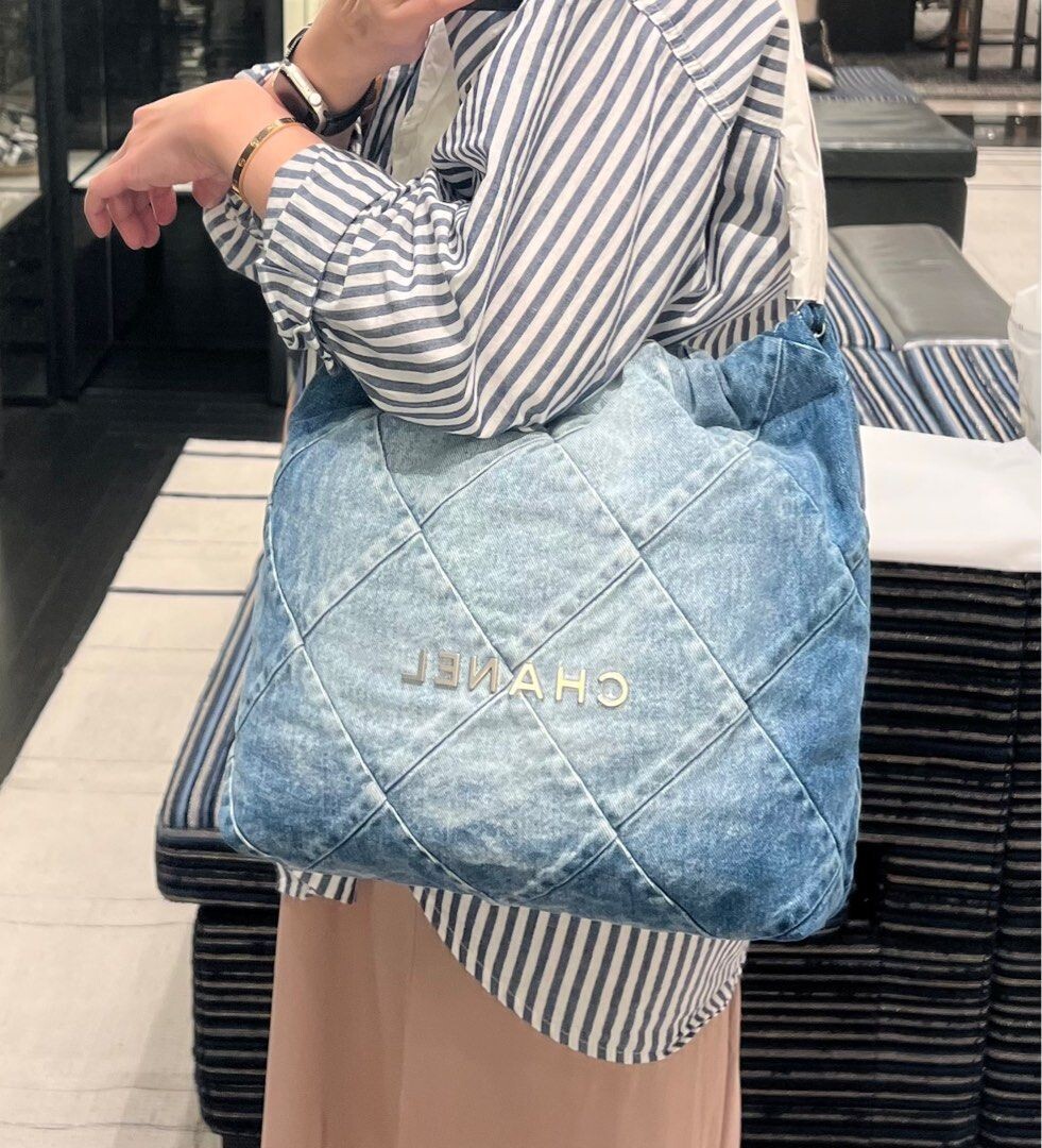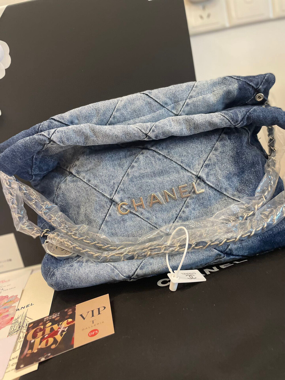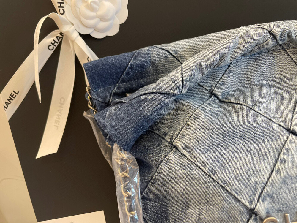 Chanel denim garbage bag 🎒 Classic denim with old style, look good texture. A look at like, casual feeling is Chanel garbage bag characteristics Size: 30 x 31 cm