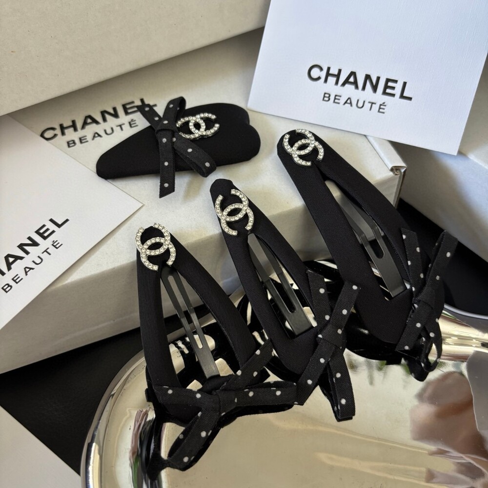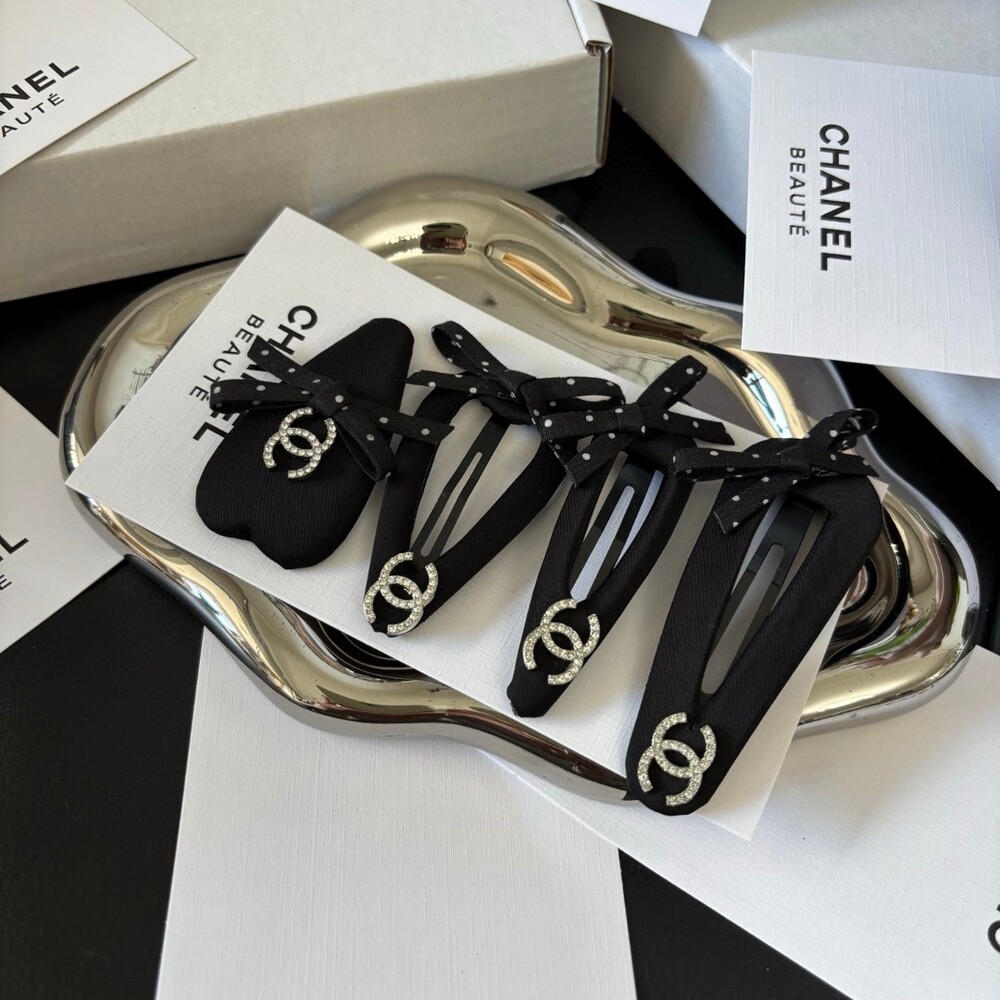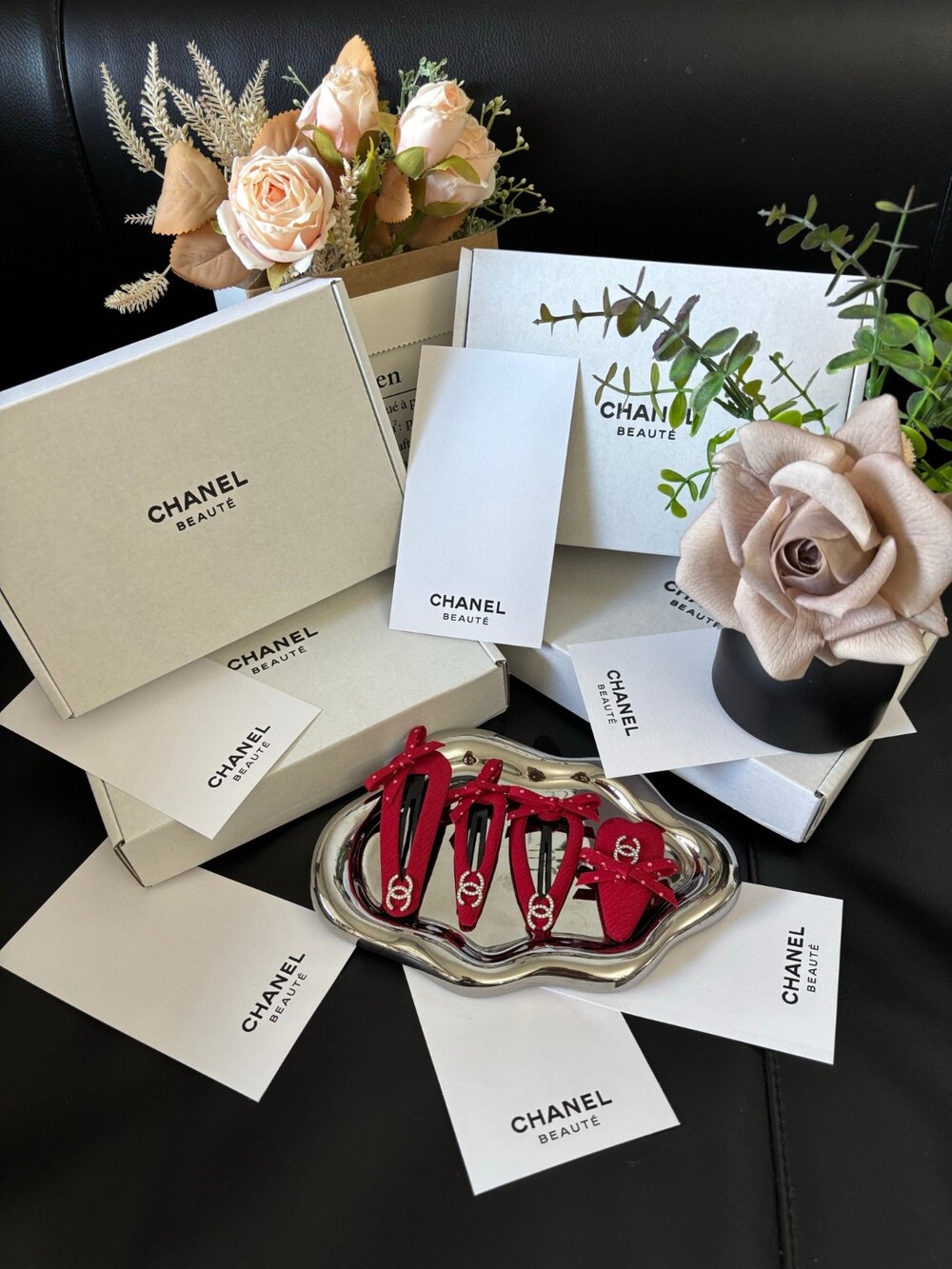 A 4-piece ribbon hair clip set inspired by the limited CHANEL Beauté gift.