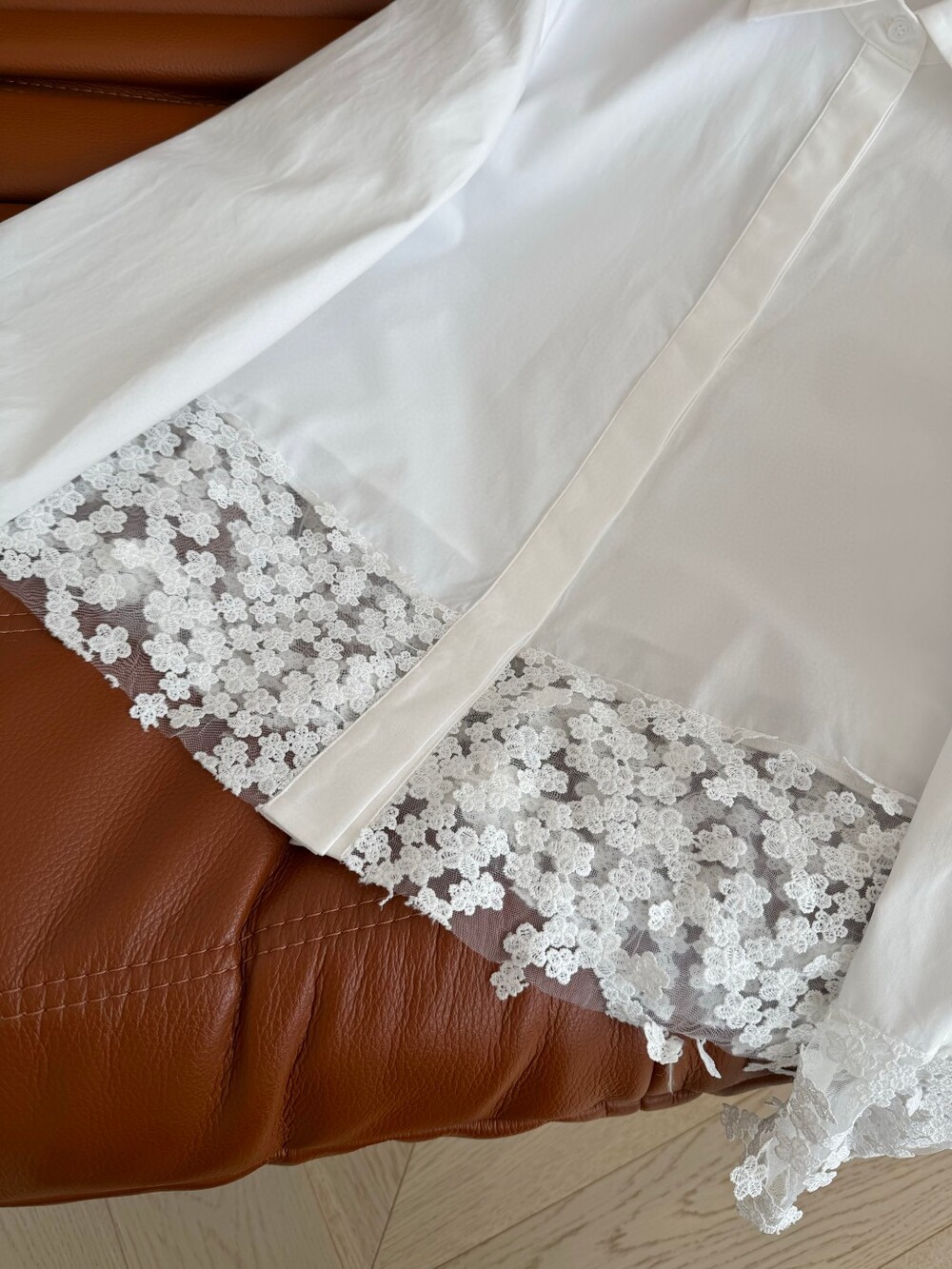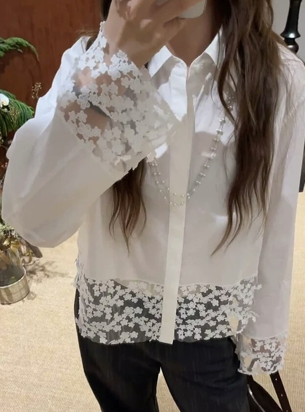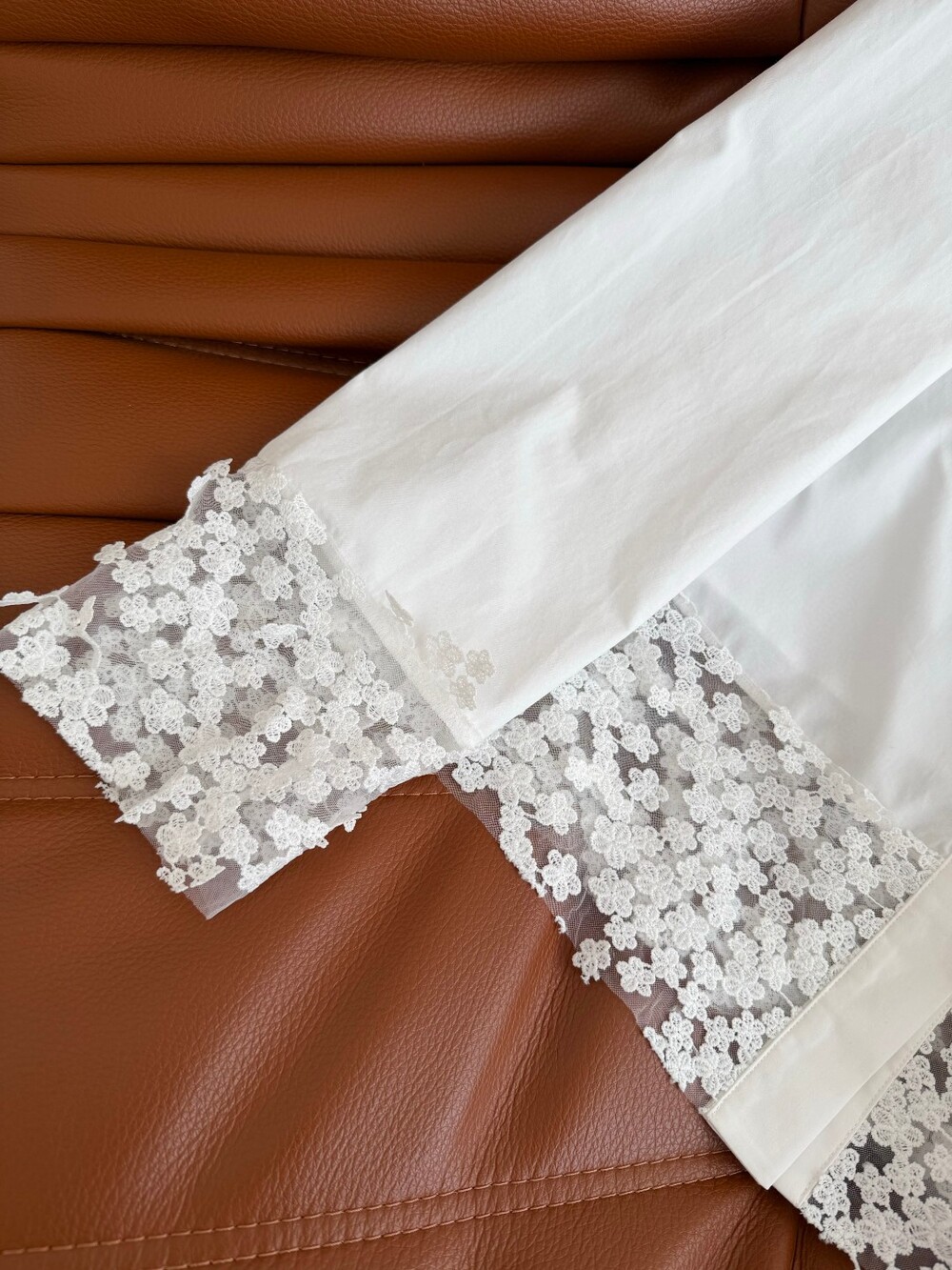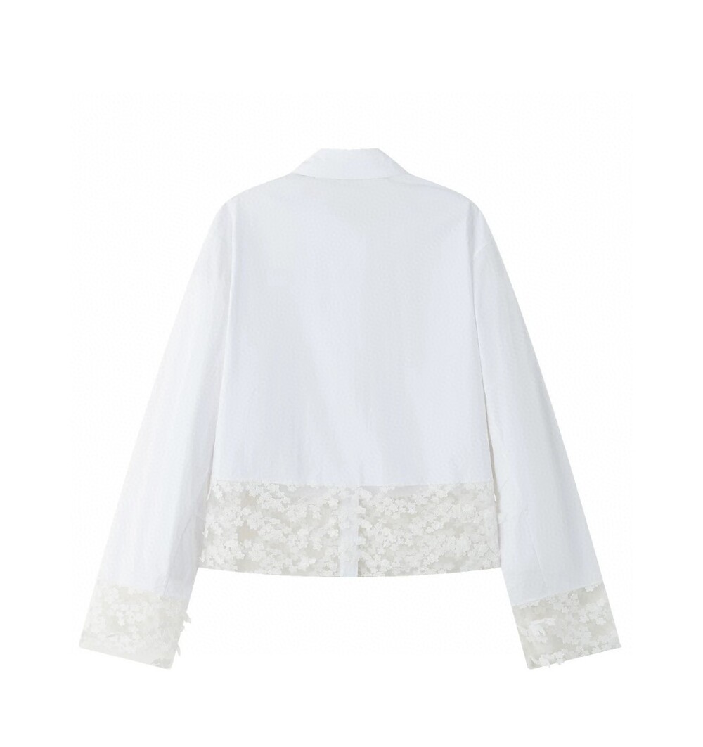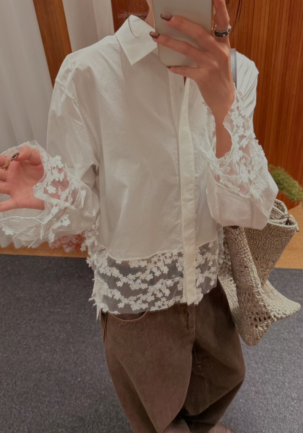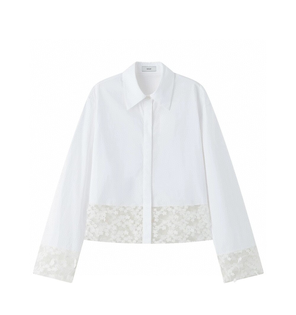 소매 끝과 밑단에 입체적인 플라워 레이스를 덧대어