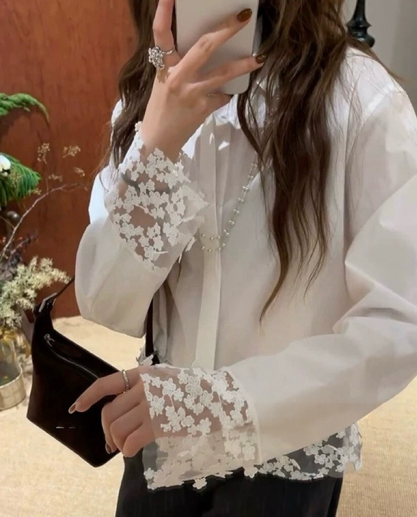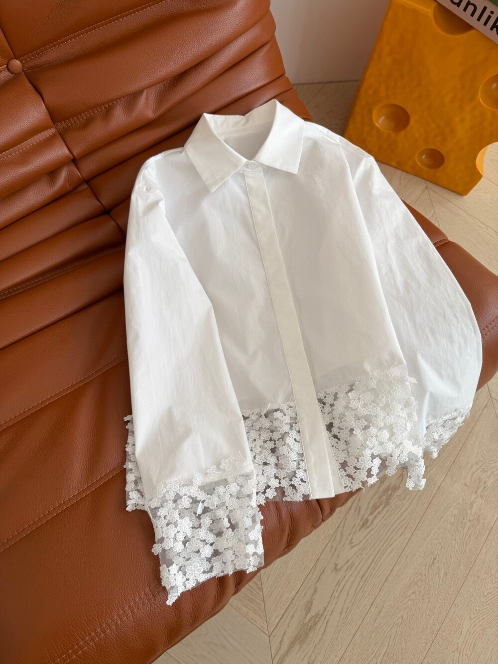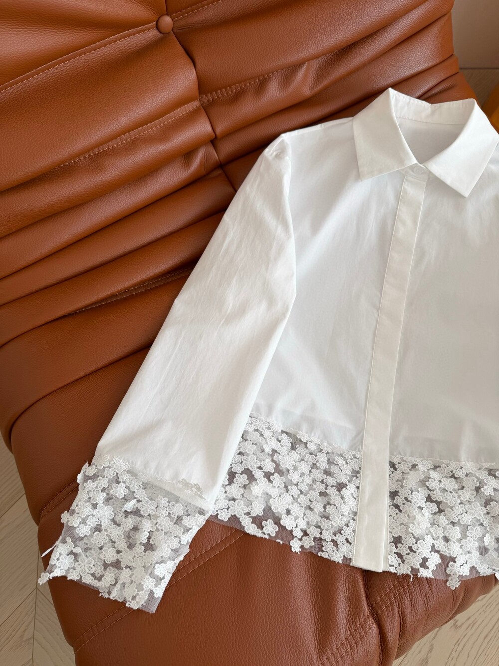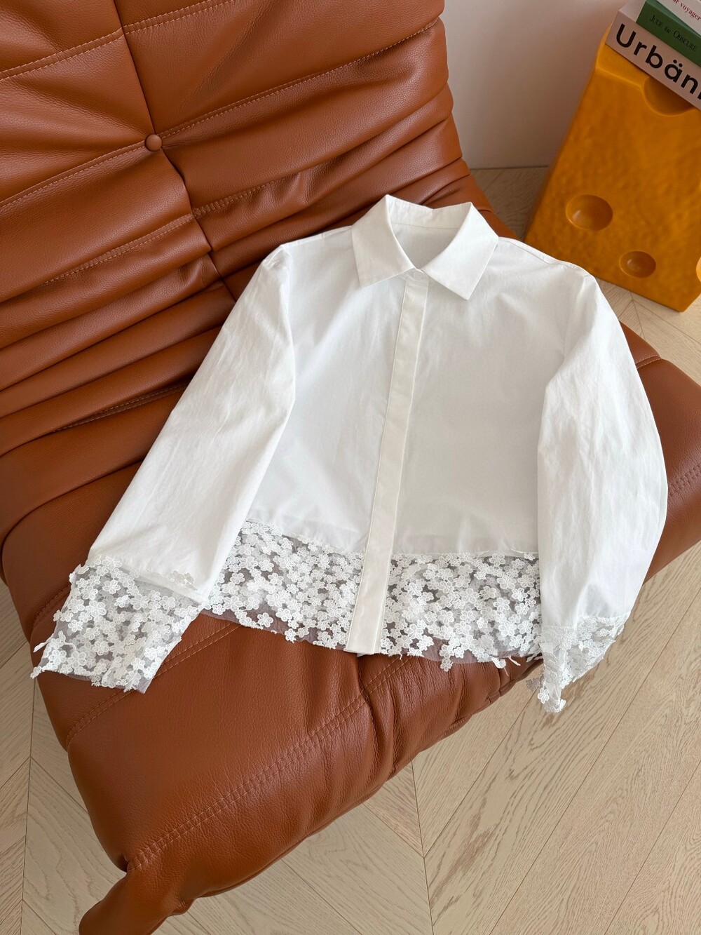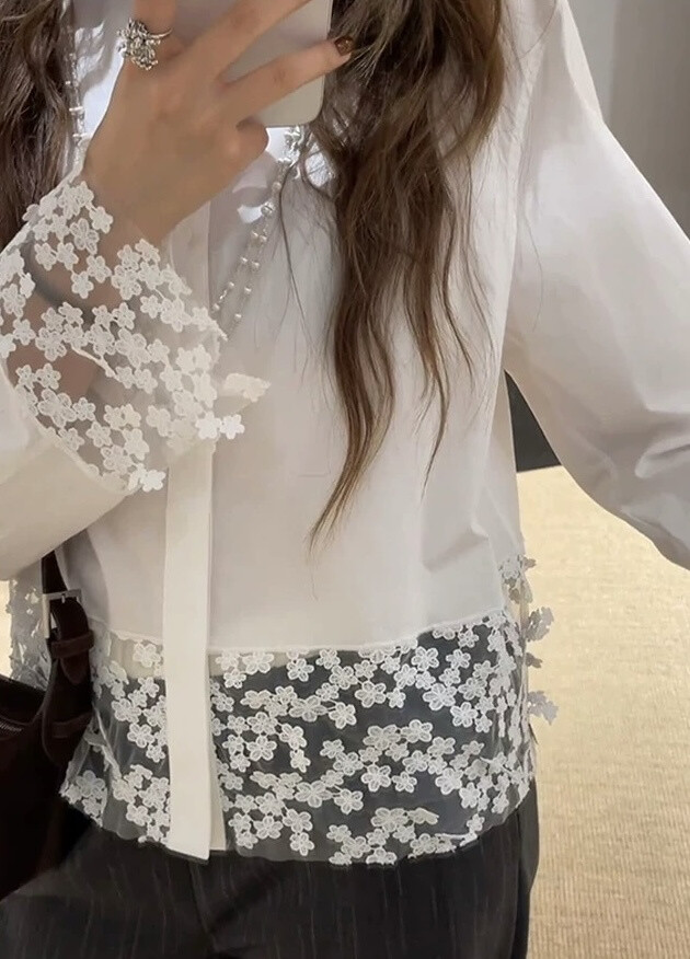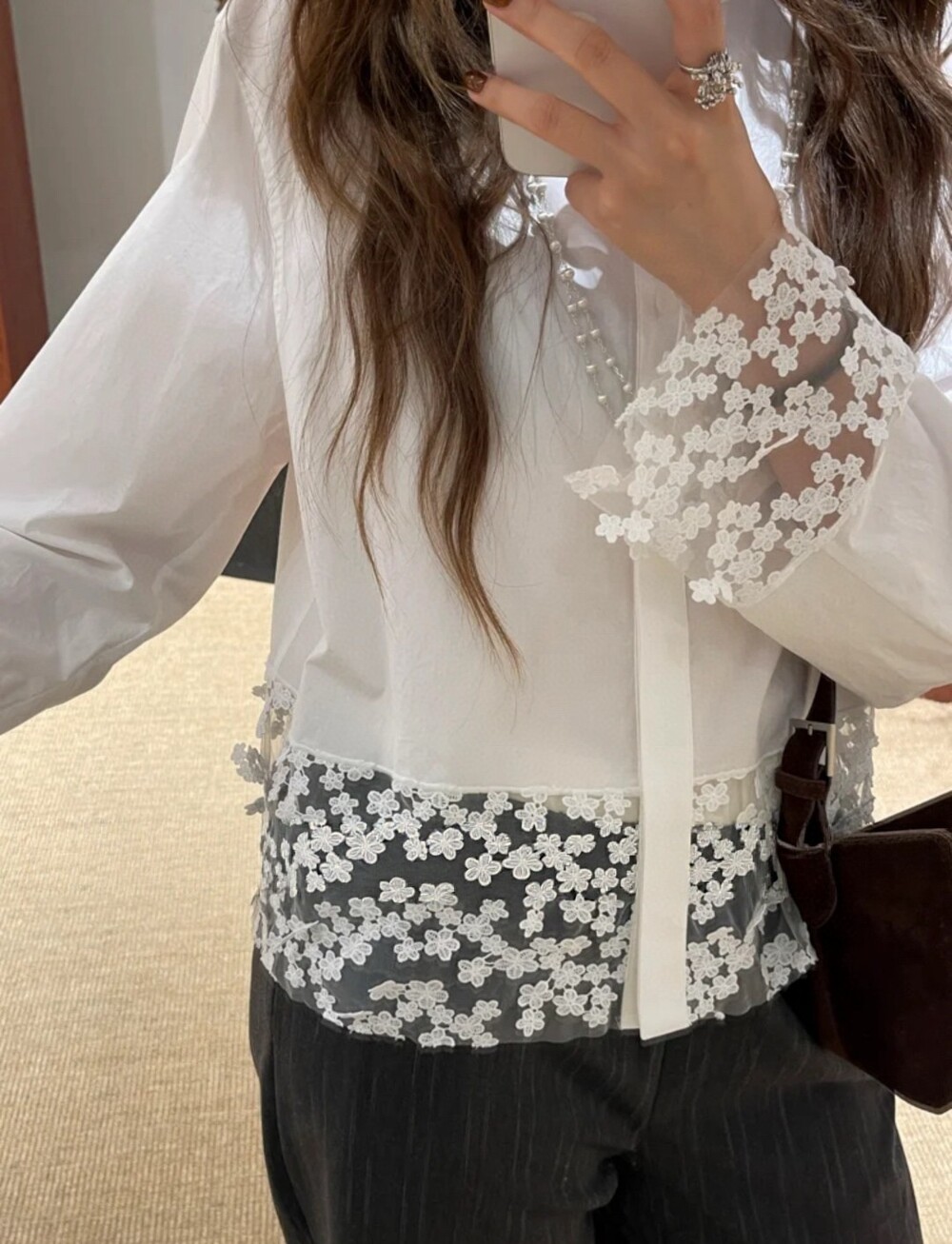 소매 끝과 밑단에 입체적인 플라워 레이스를 덧대어