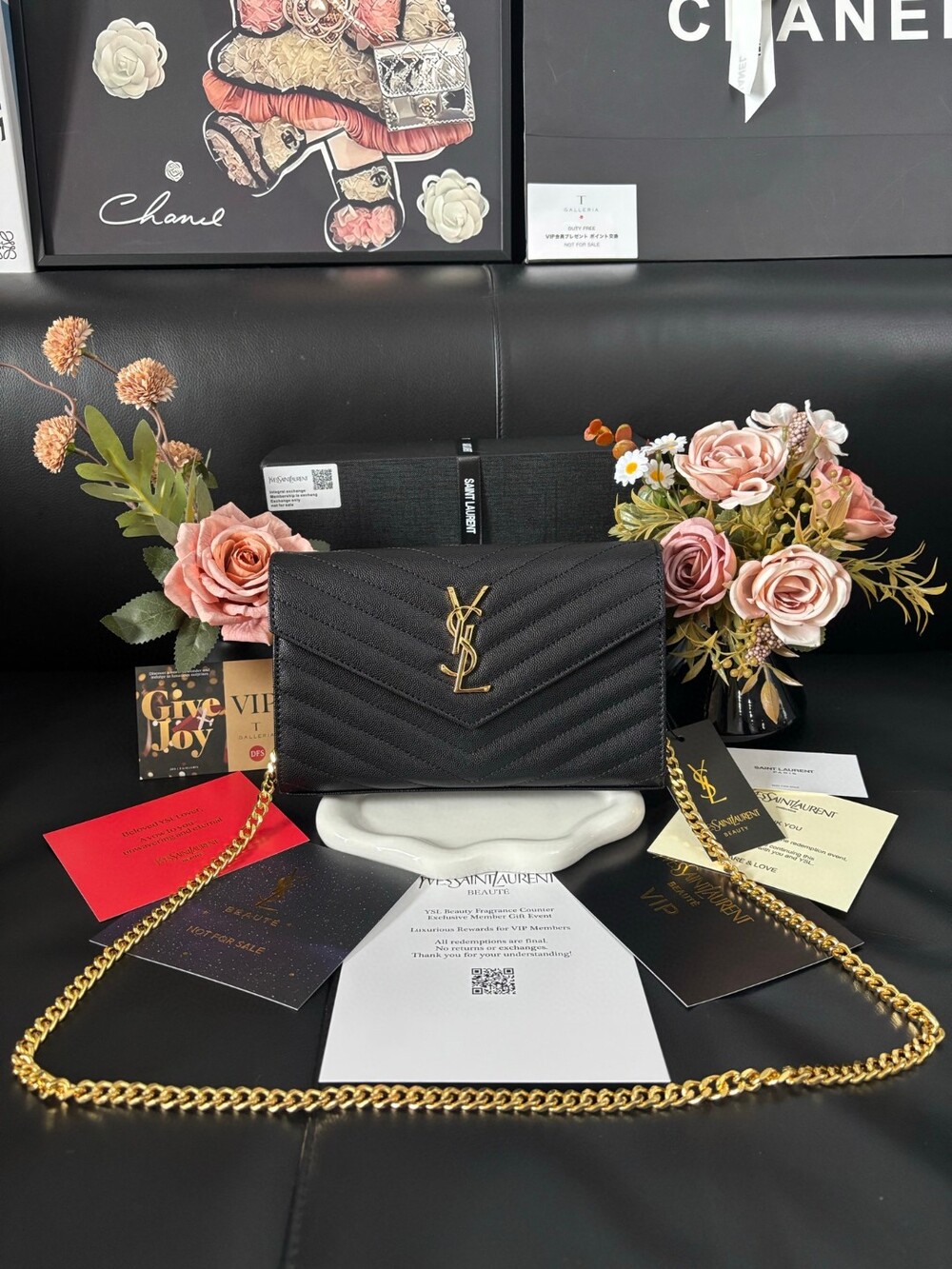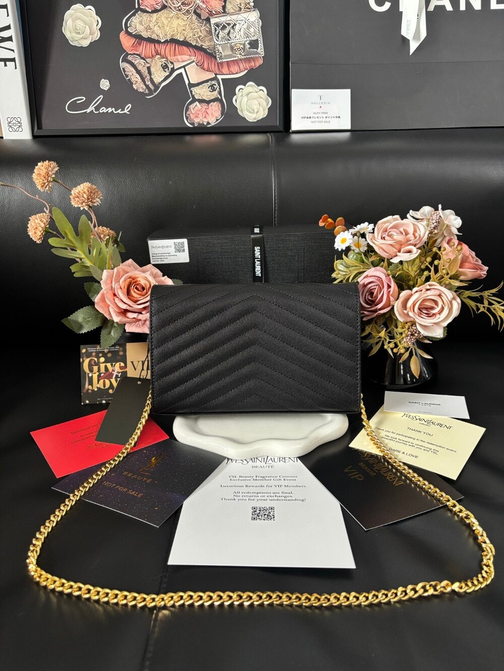 Double Eleven Special!YSL WOC Black Chain Bag Envelope Bag ysI's well-deserved entry classic It's one of my favorites. The texture of cowhide has a texture that is not afraid of scratching. I prefer chains to gold chains very durableChain bag can be perfect as a handbag I can't believe I'm earning a package As an oversized card case, it's not very easy to be sure Don't go out with too much stuff.Bring a few cards with a lipstick powder is fine Size: 23x13cm
