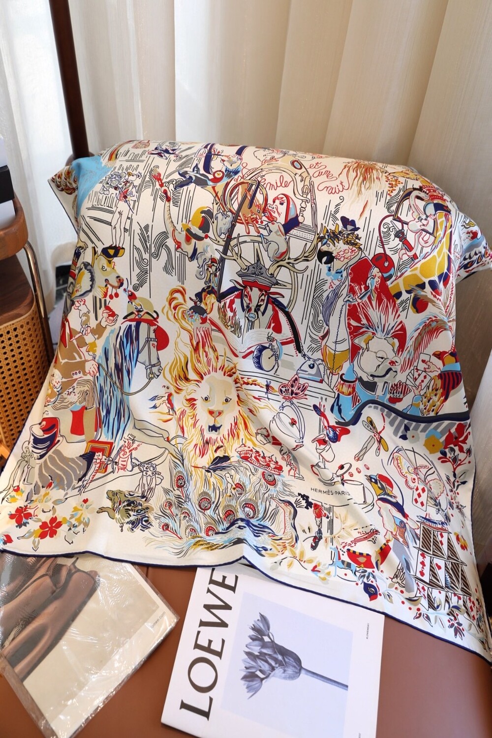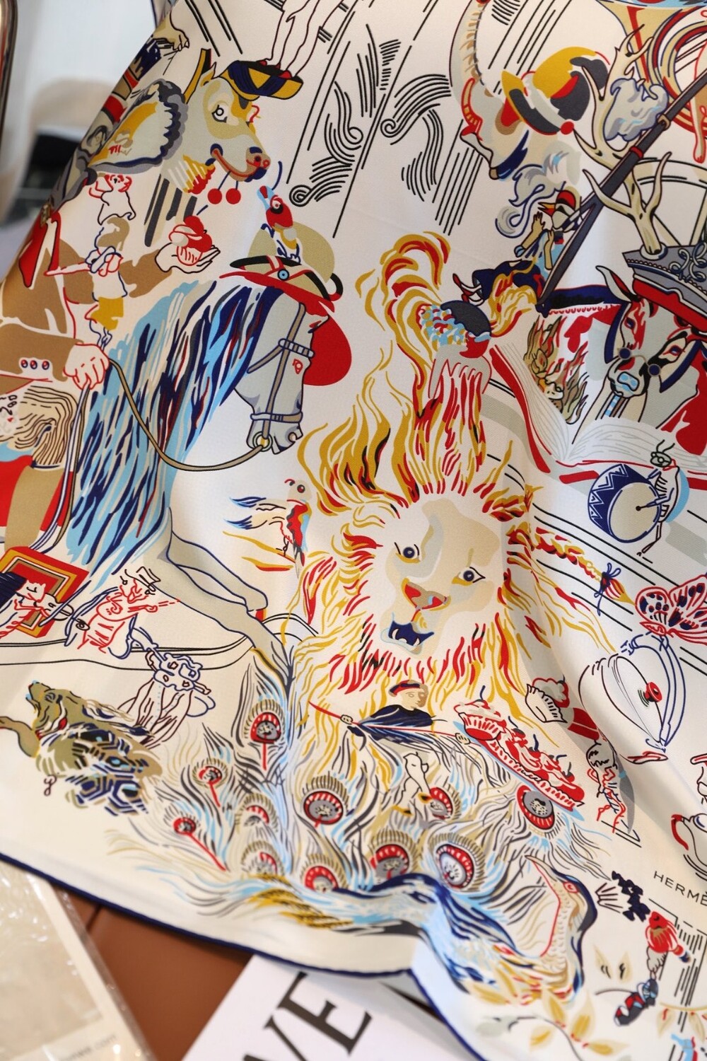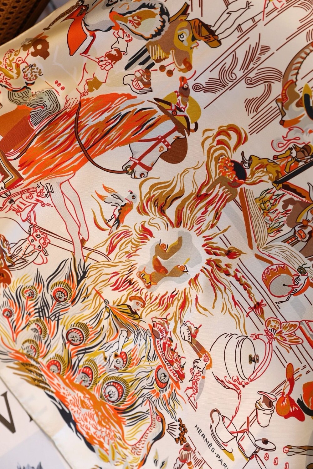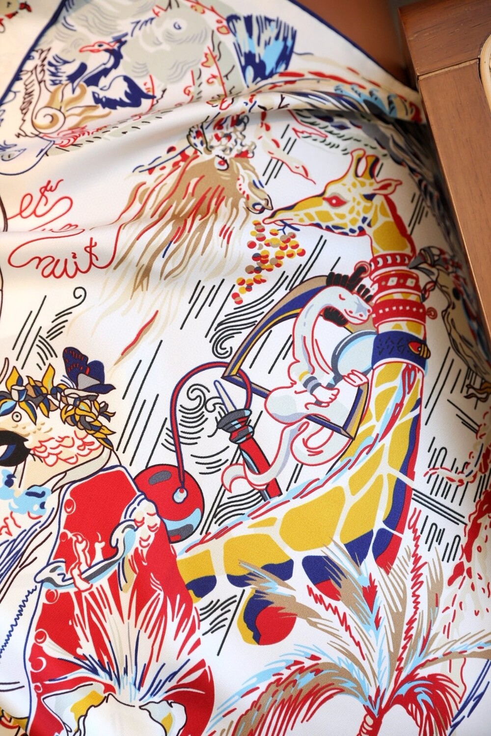 Hermès iconic Émile’s Enchanted Night 90 silk scarf designed by Virginie Jamin.