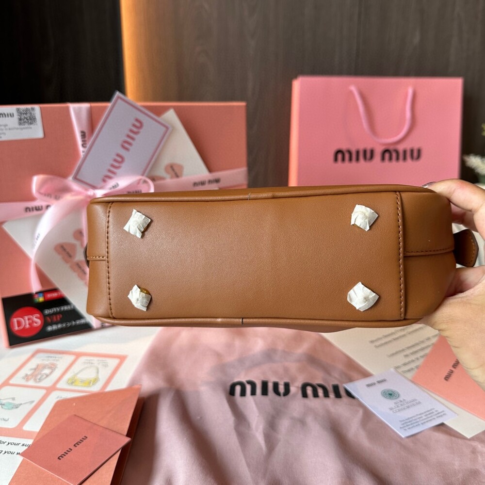 Crafted from smooth, supple calfskin leather with subtle MIU MIU logo embossing.
